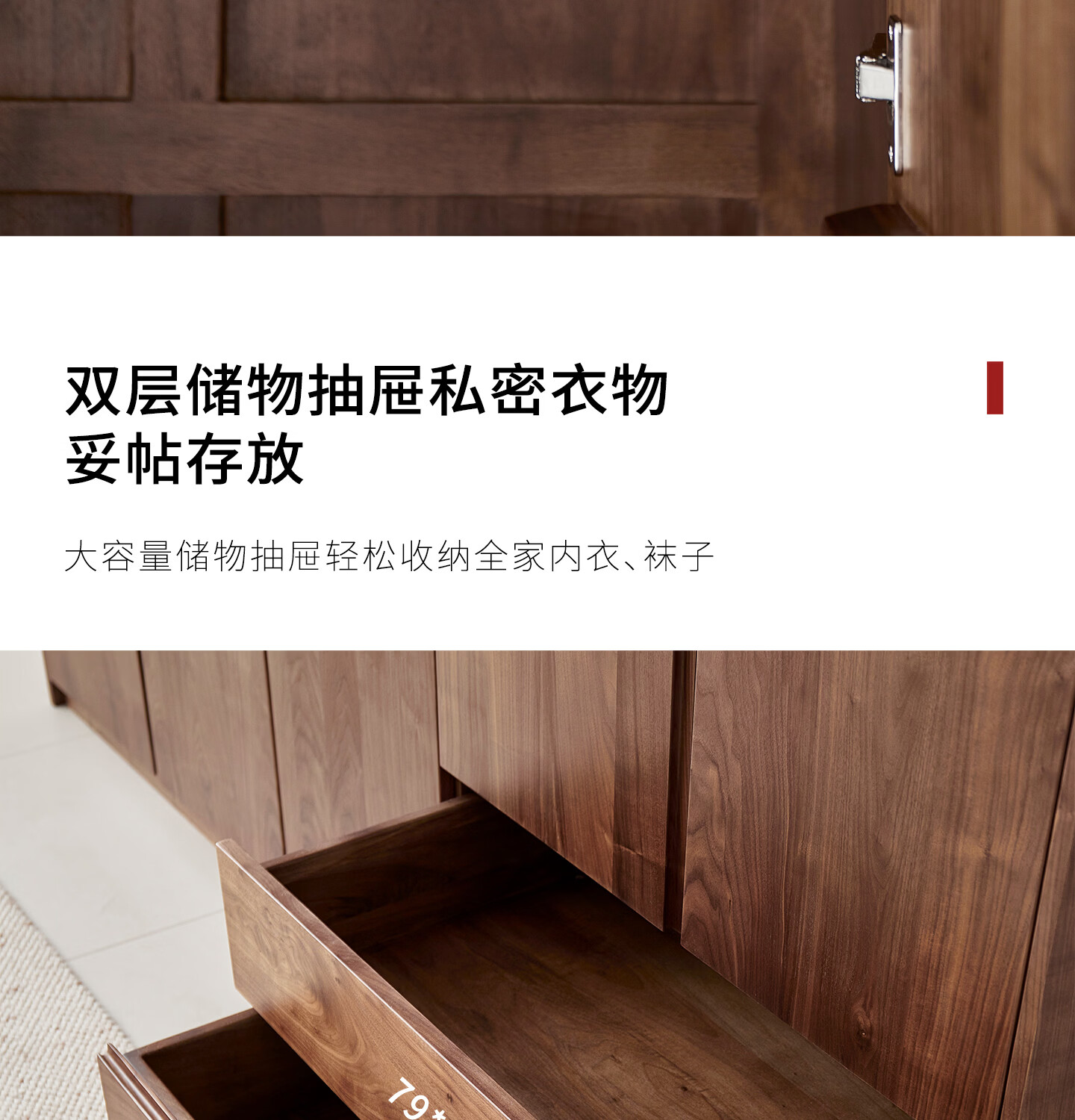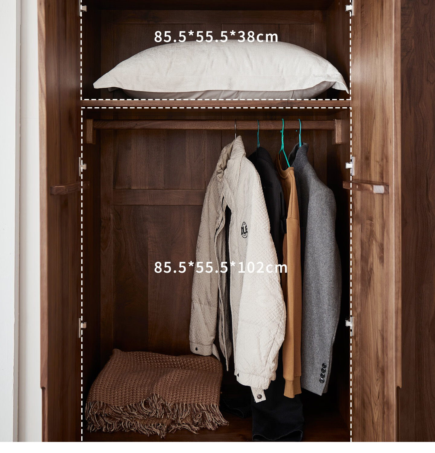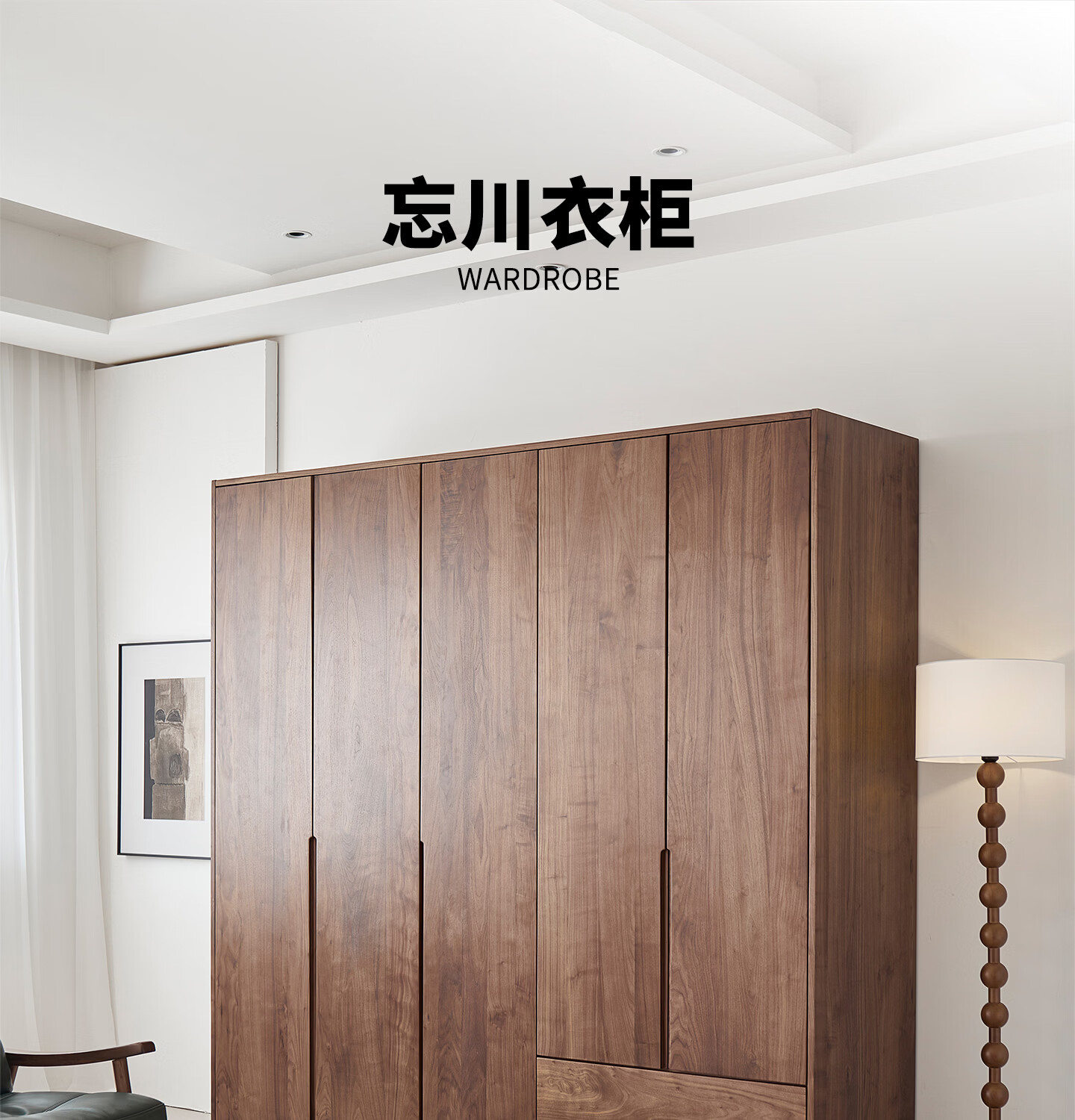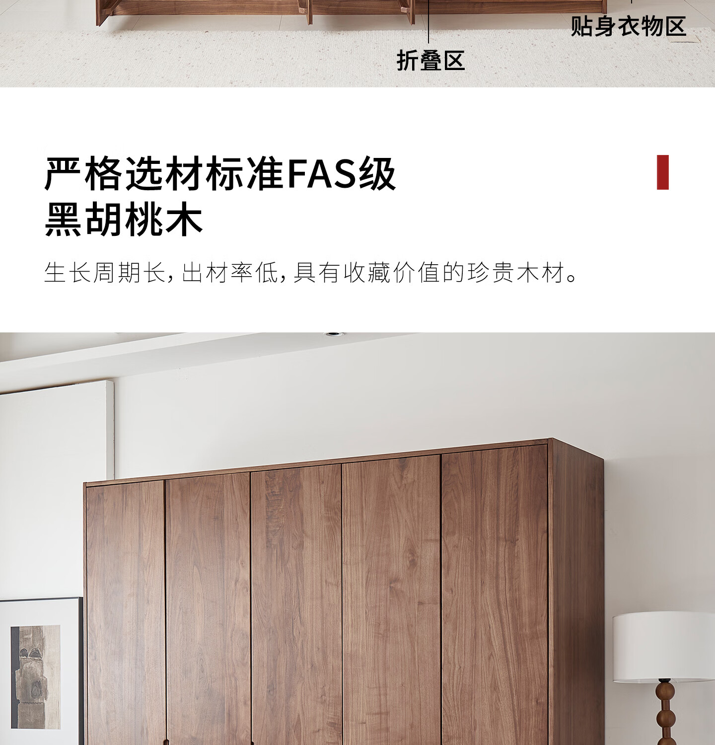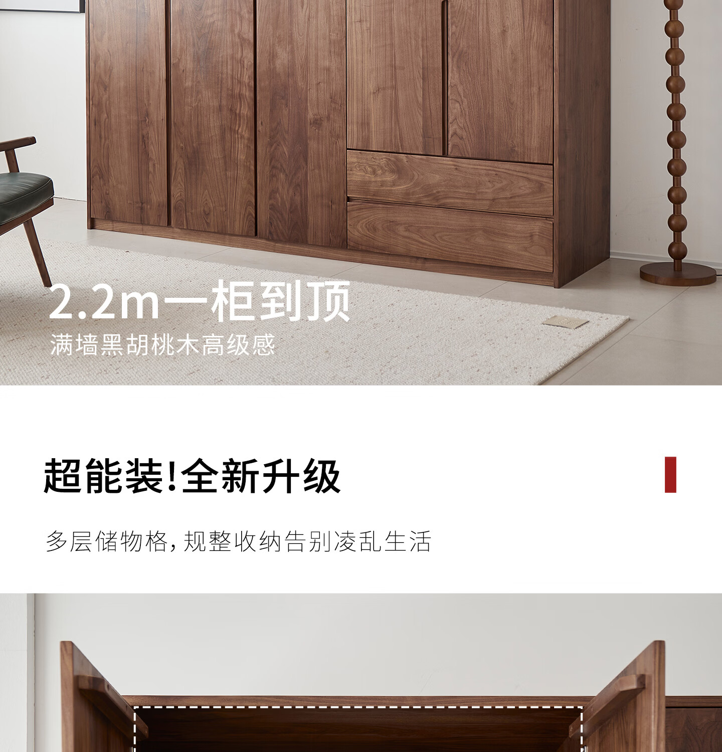 梵而全实木衣柜北美黑胡桃卧室家用柜子收纳柜一体靠墙组合简易平开门 忘川衣柜·2.2m