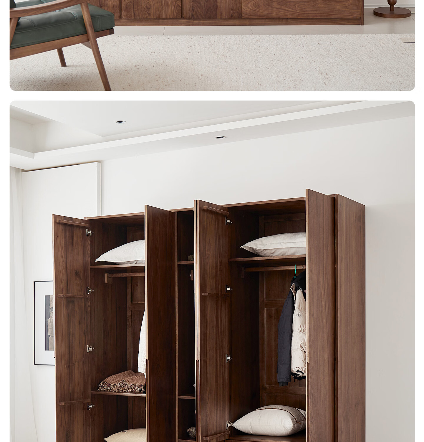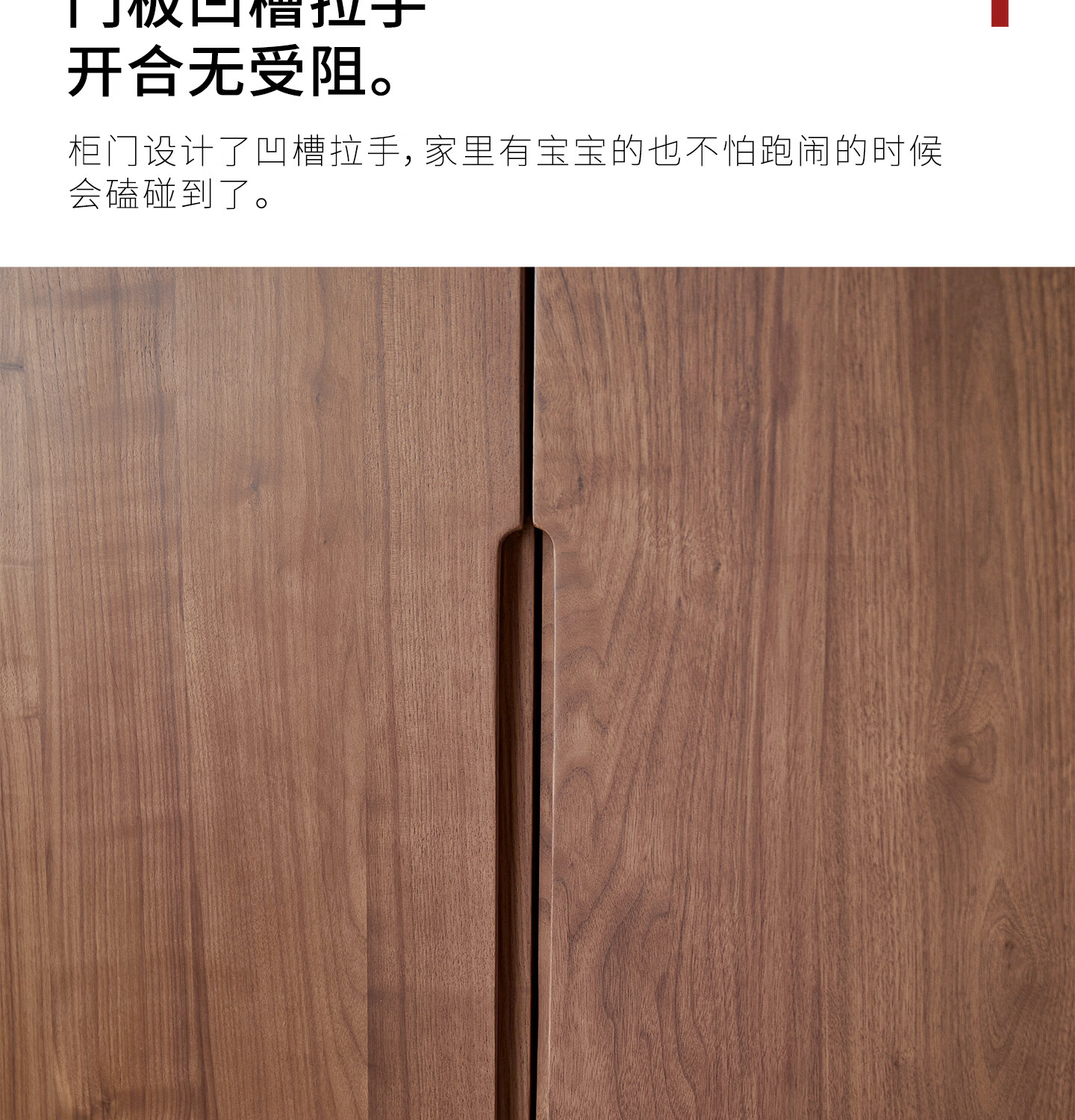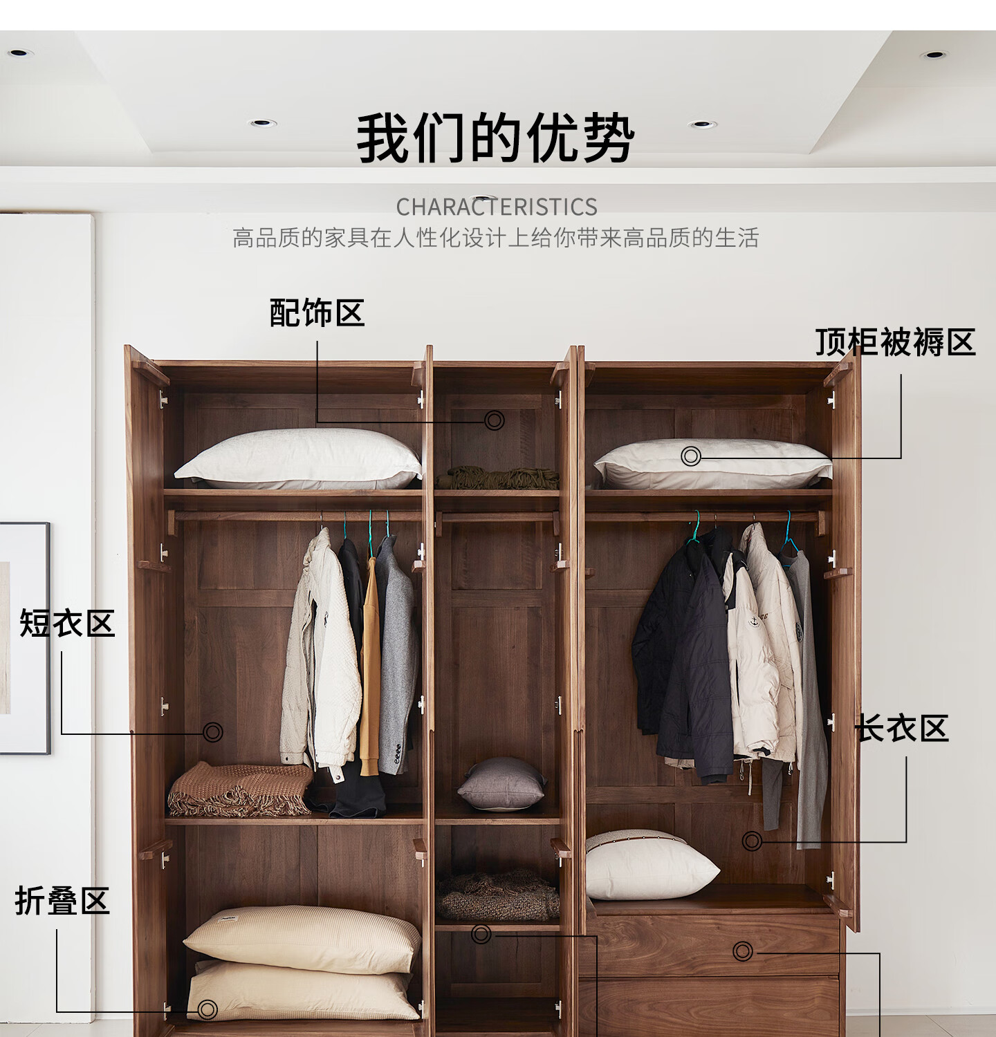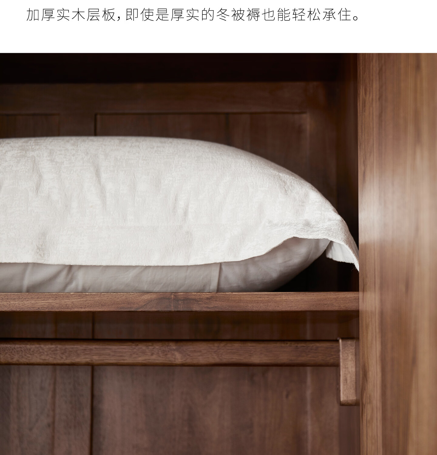 梵而全实木衣柜北美黑胡桃卧室家用柜子收纳柜一体靠墙组合简易平开门 忘川衣柜·2.2m