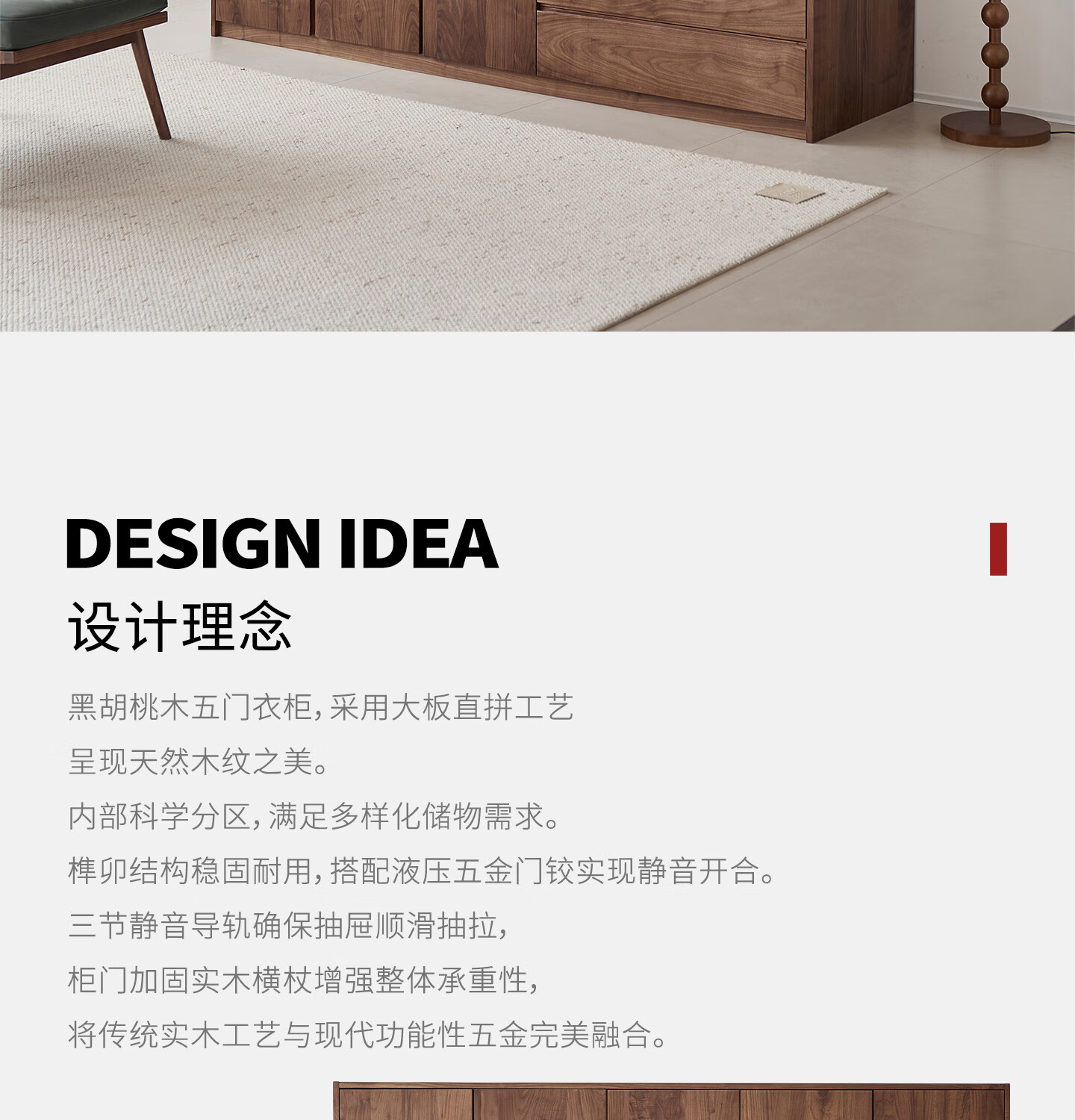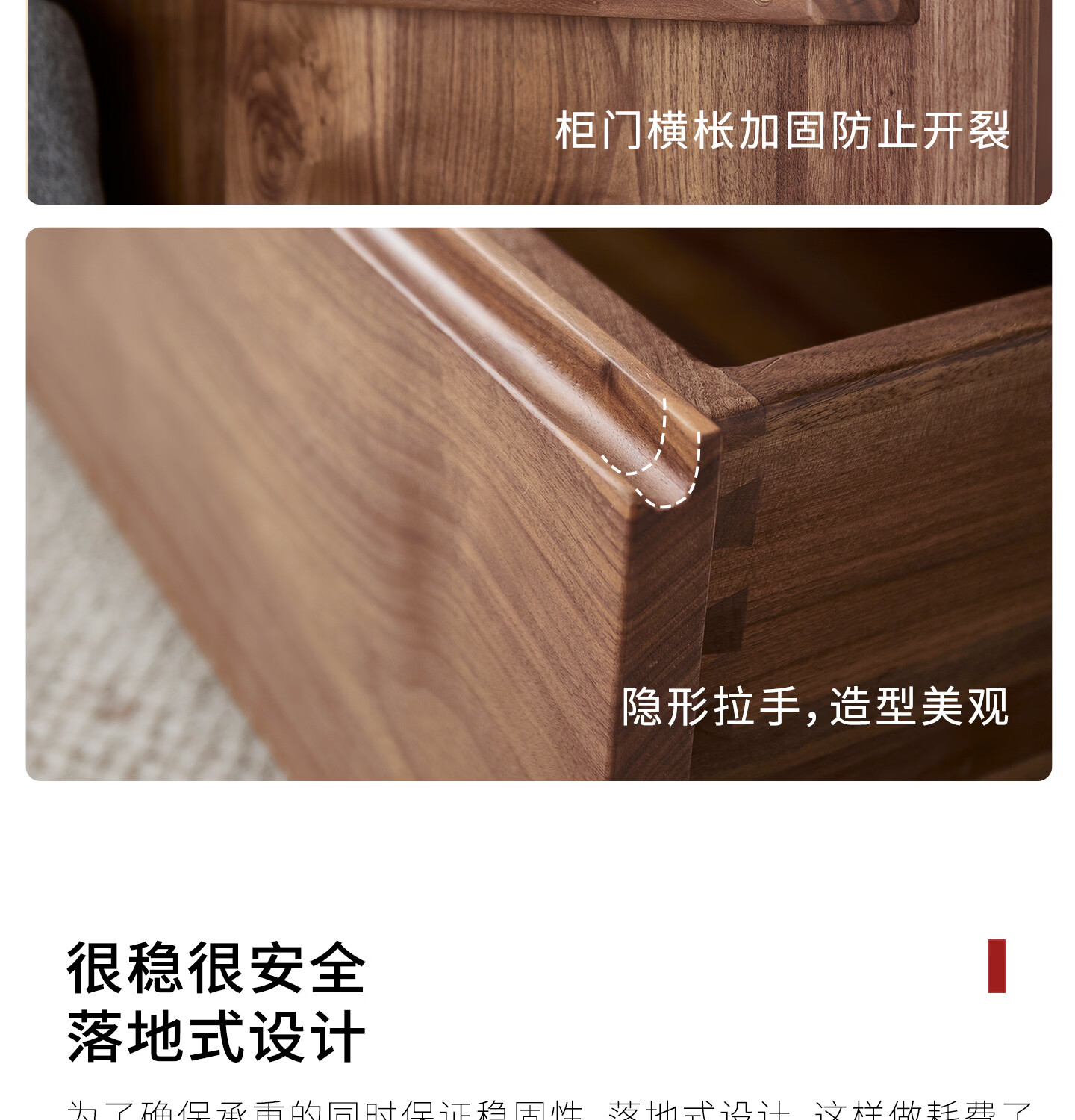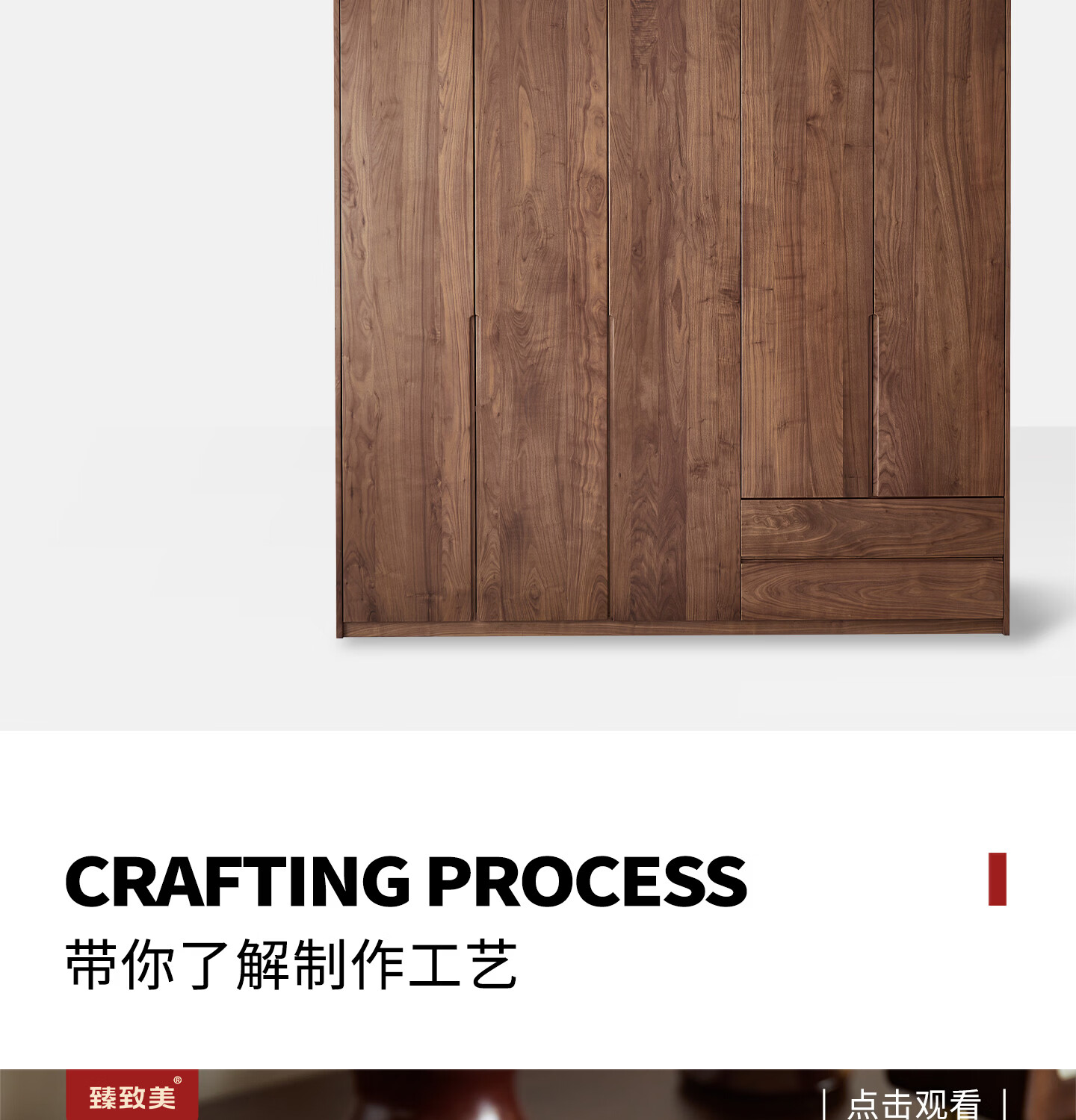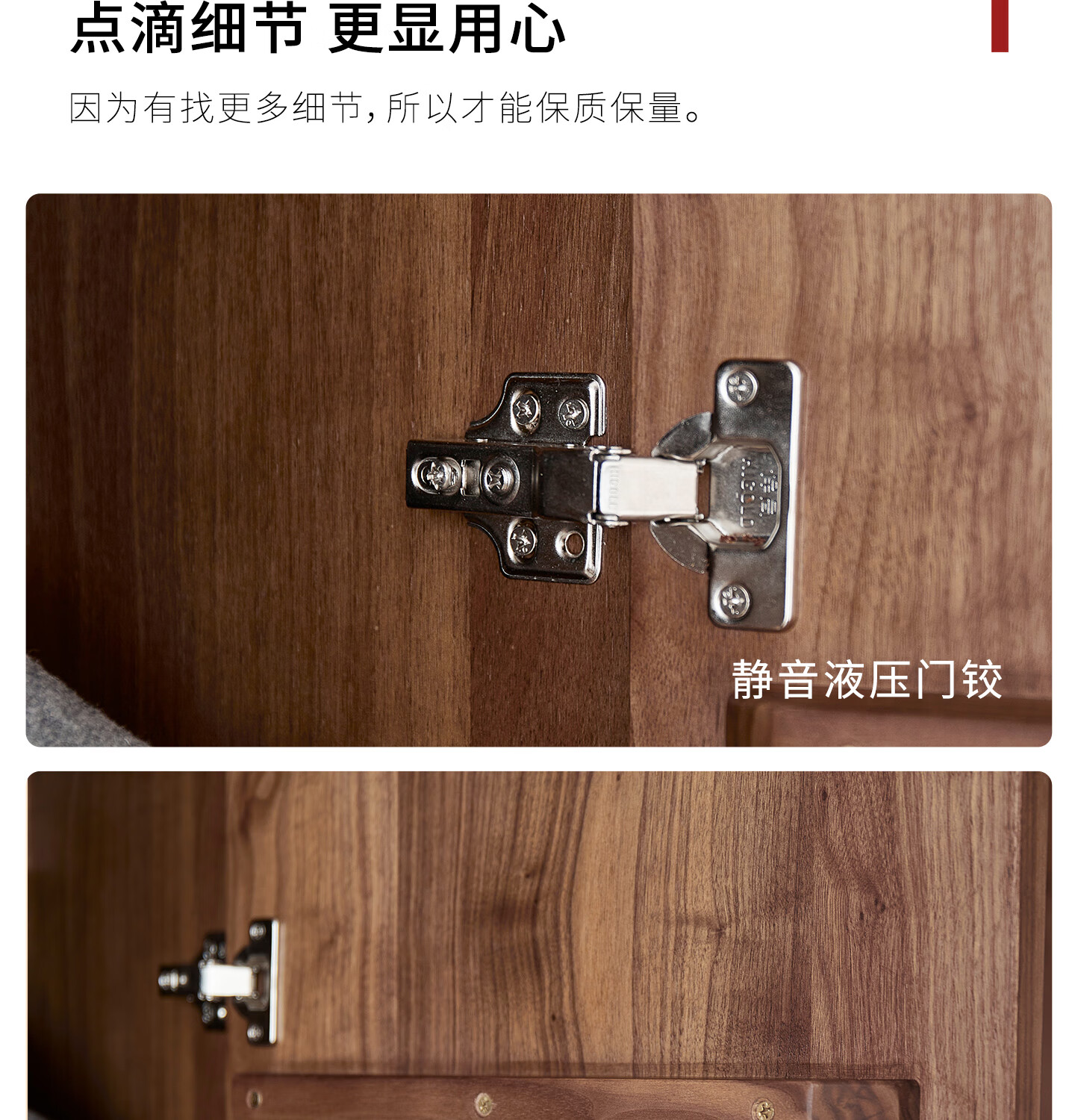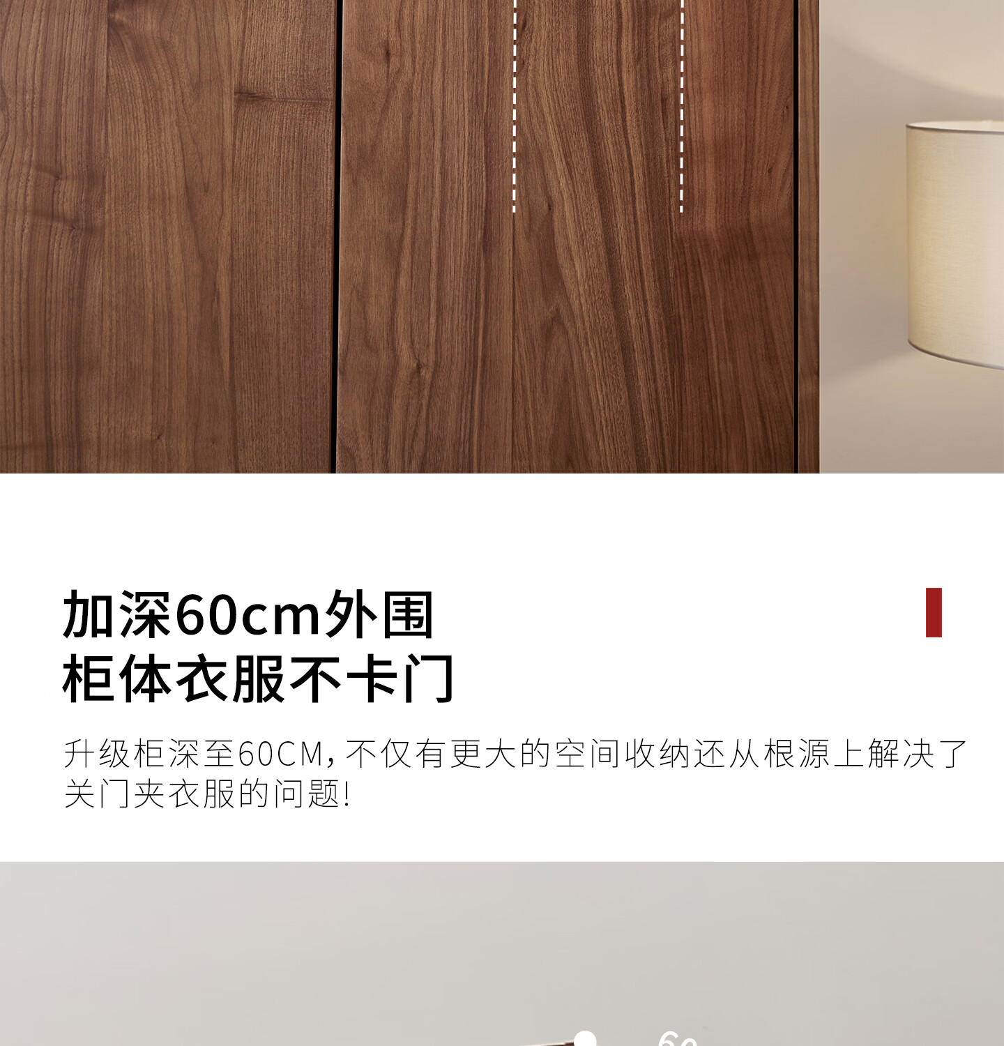 梵而全实木衣柜北美黑胡桃卧室家用柜子收纳柜一体靠墙组合简易平开门 忘川衣柜·2.2m