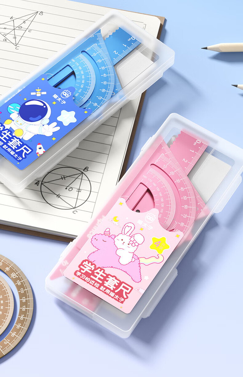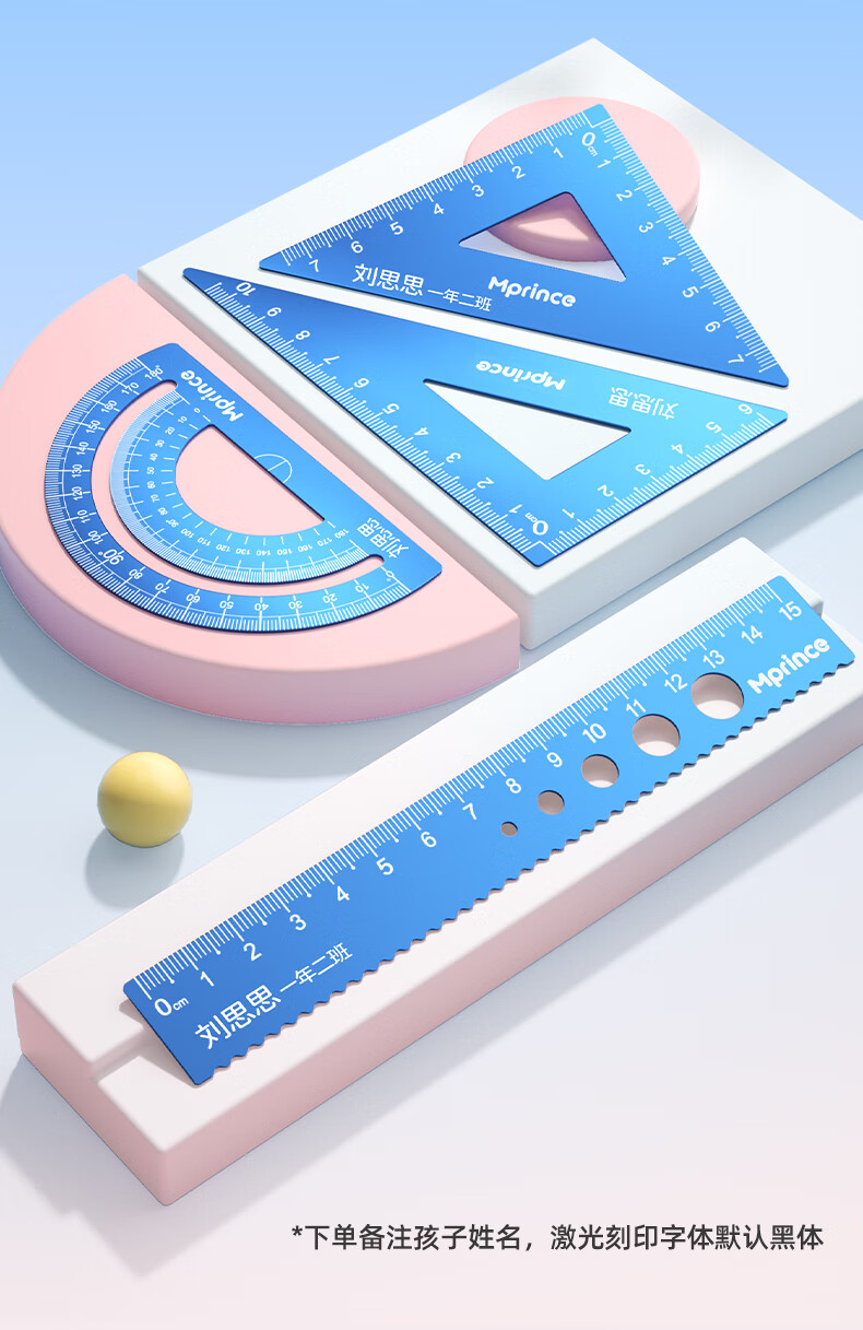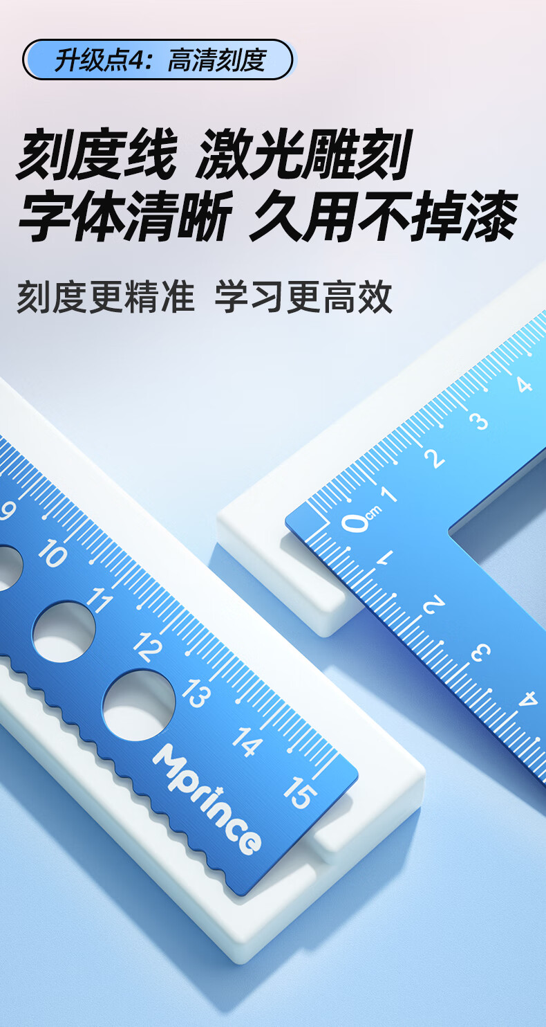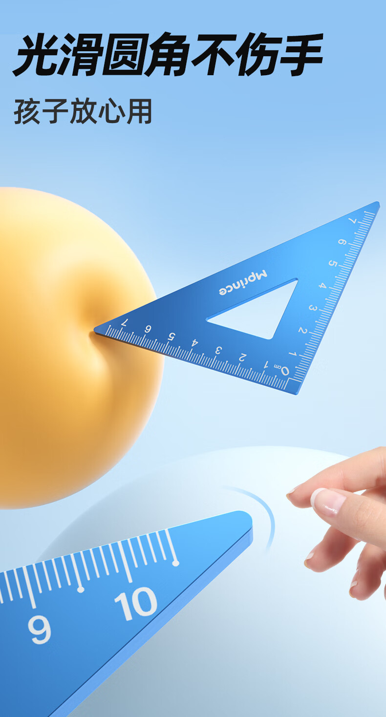 猫太子金属学生考试绘图套尺20cm波浪边直尺/三角尺/量角器儿童尺子学习文具套装 四件套 铝合金套尺(4件套)15CM 雅典蓝