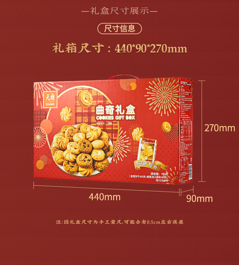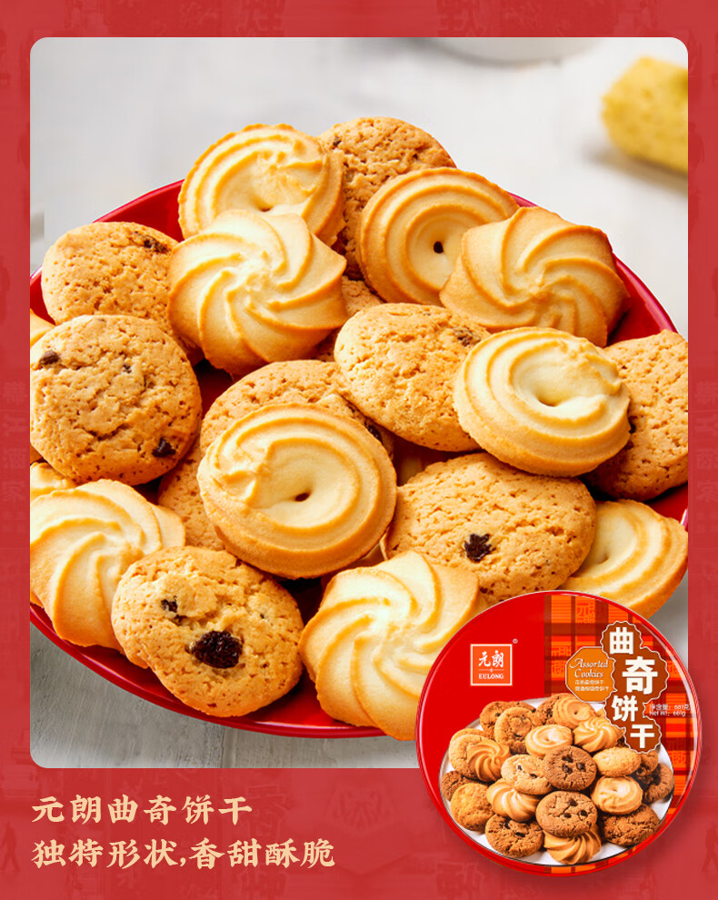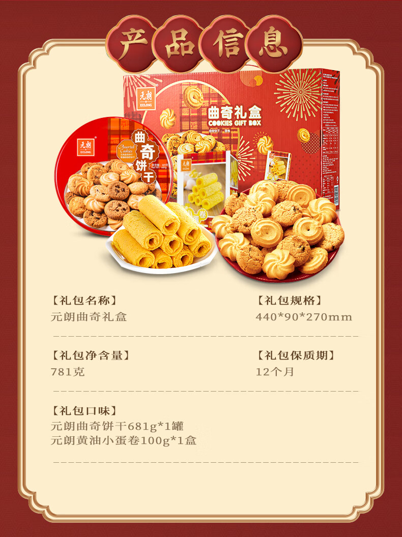 元朗曲奇饼干年货礼盒 糕点零食品蛋卷 过新年春节送礼广东老字号801g