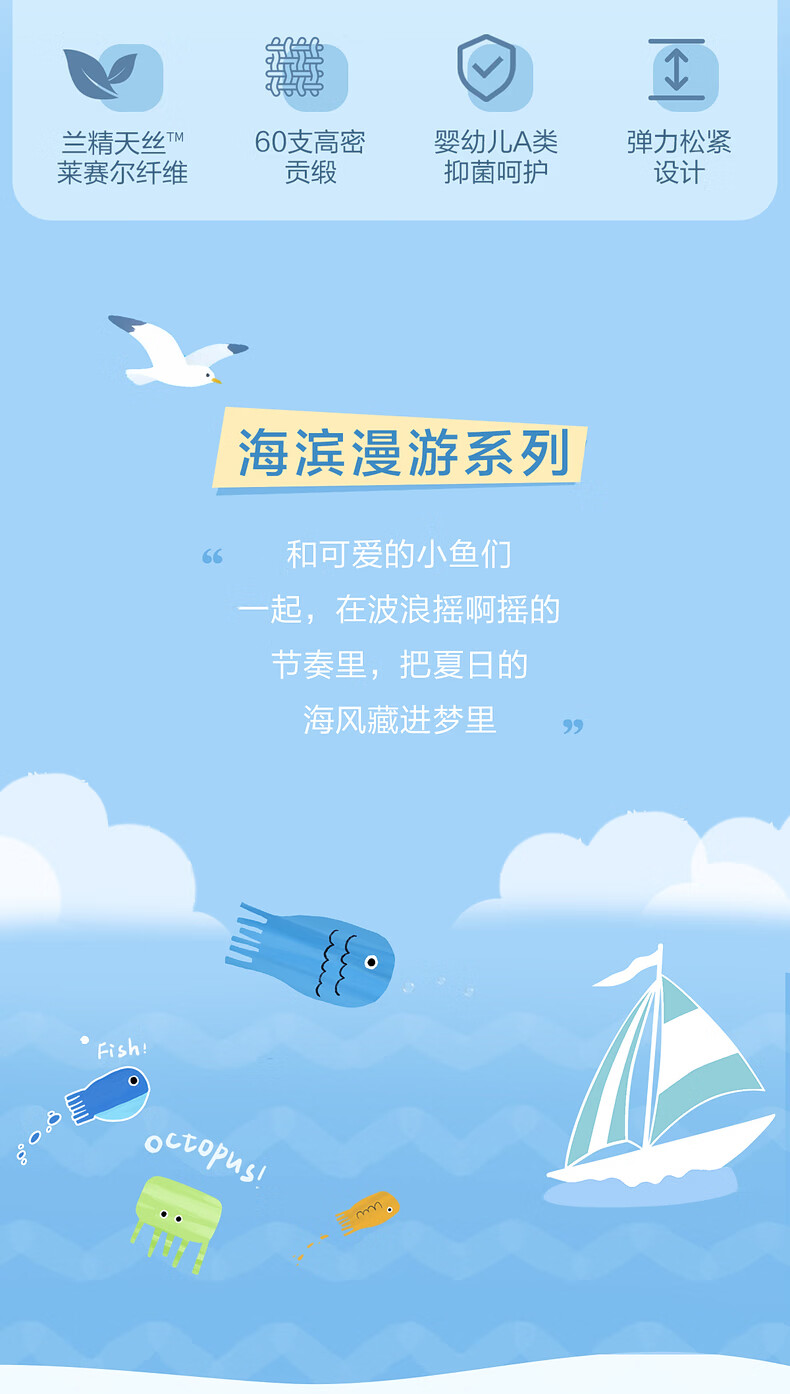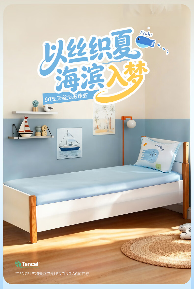 水星家纺海滨跳跳鱼日记天丝素色床笠 海滨跳跳鱼日记天丝素色床笠 120cm*195cm