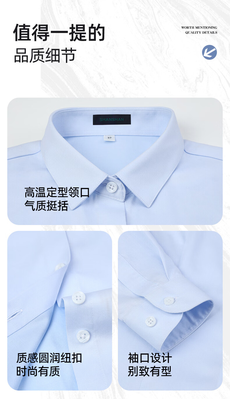 SHANSHAN杉杉【200DP免烫】衬衫男长袖春季高端舒适纯棉正装打底上衣 白色 38