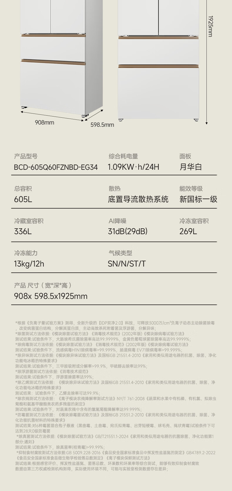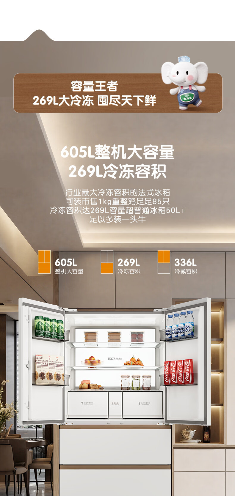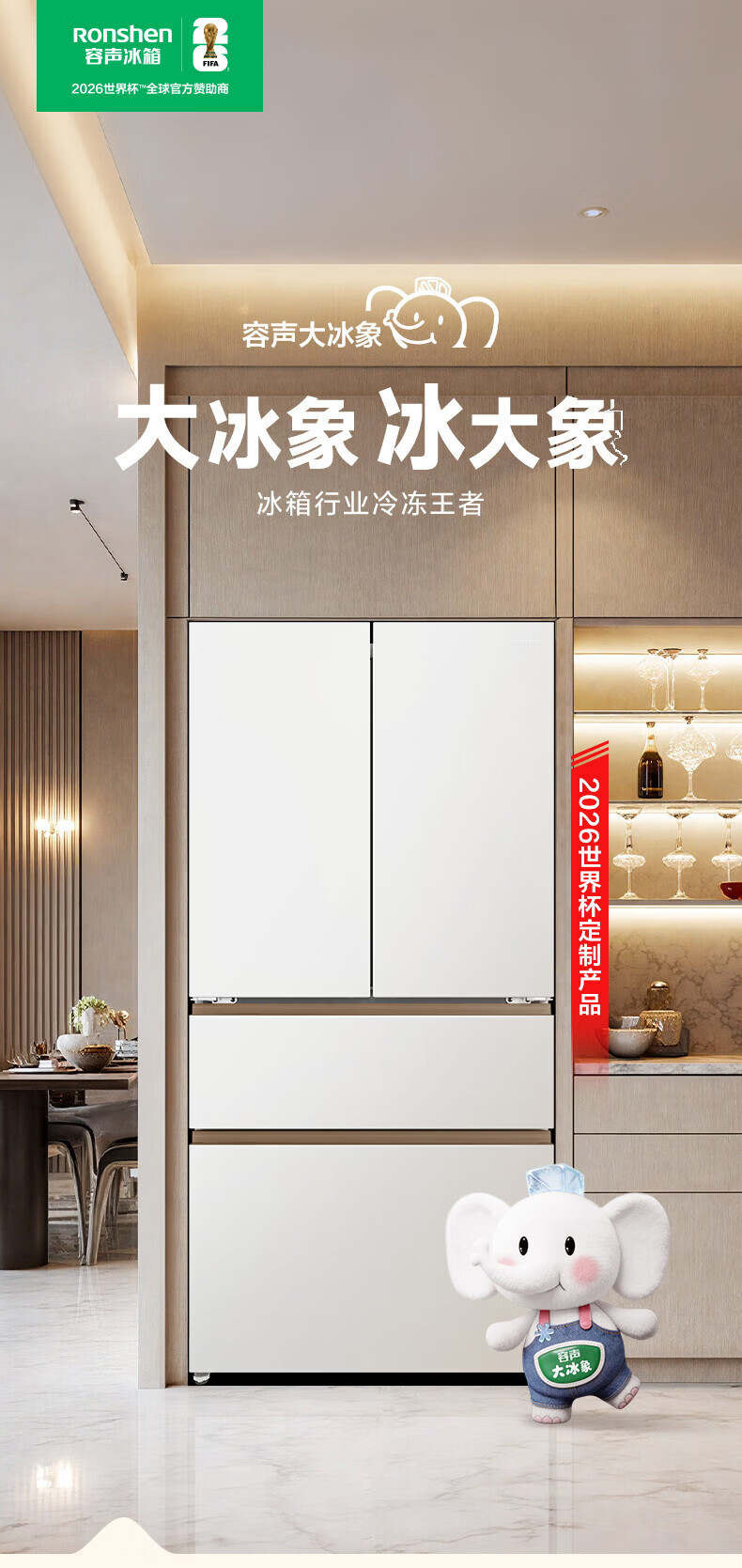 容声世界杯定制大冰象机皇605L法式四开门冰箱双系统超薄嵌入式一级能效制冰 国家补贴 BCD-605Q60FZNBD-EG34