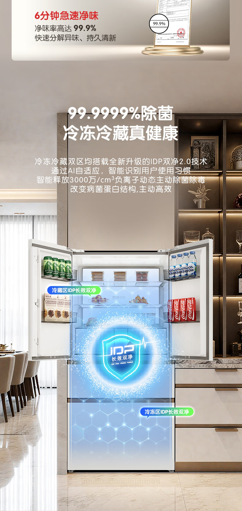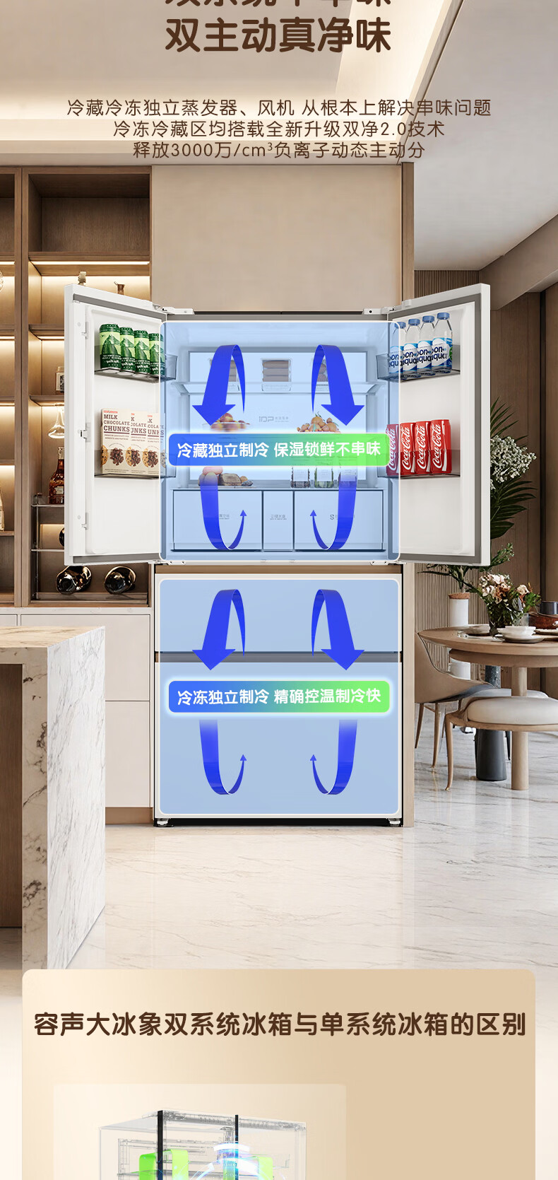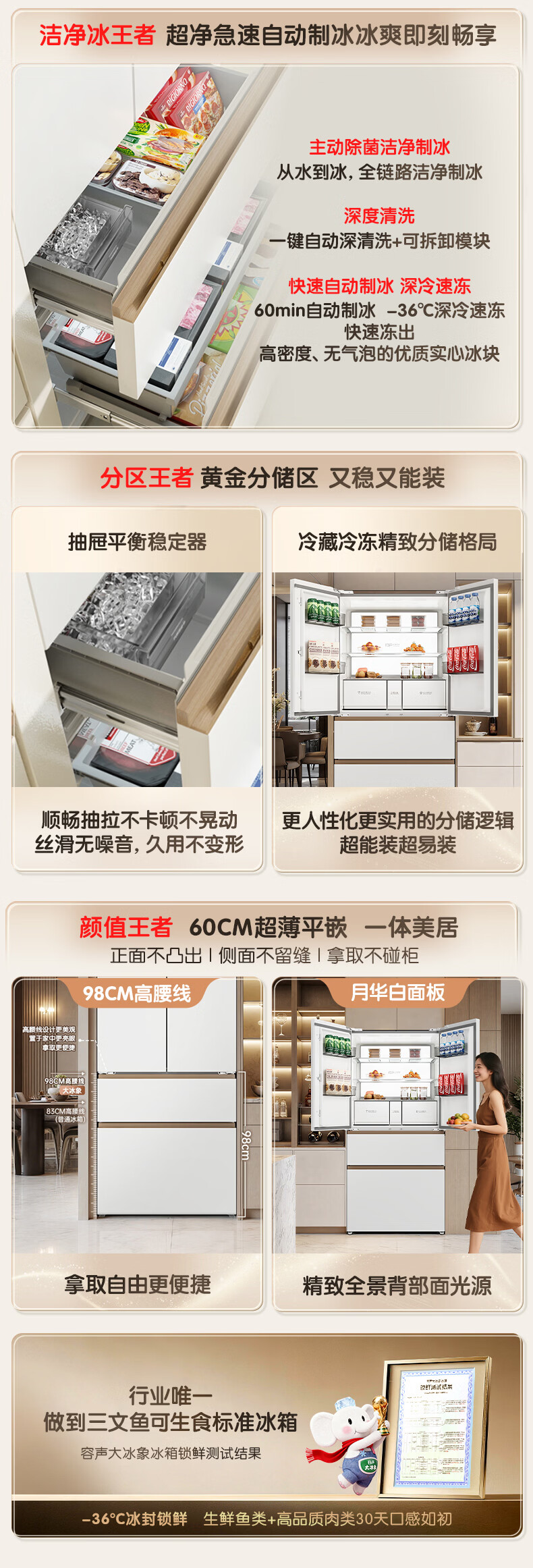 容声世界杯定制大冰象机皇605L法式四开门冰箱双系统超薄嵌入式一级能效制冰 国家补贴 BCD-605Q60FZNBD-EG34