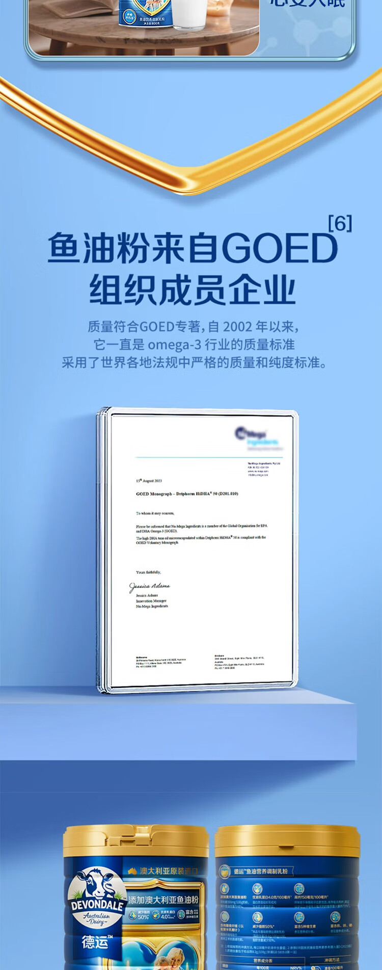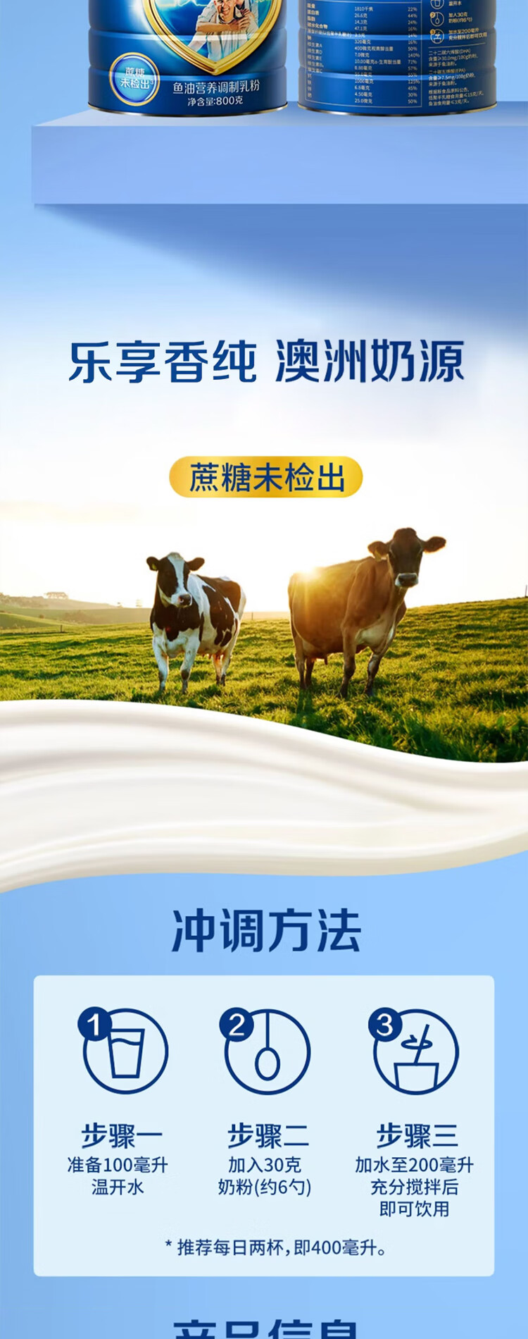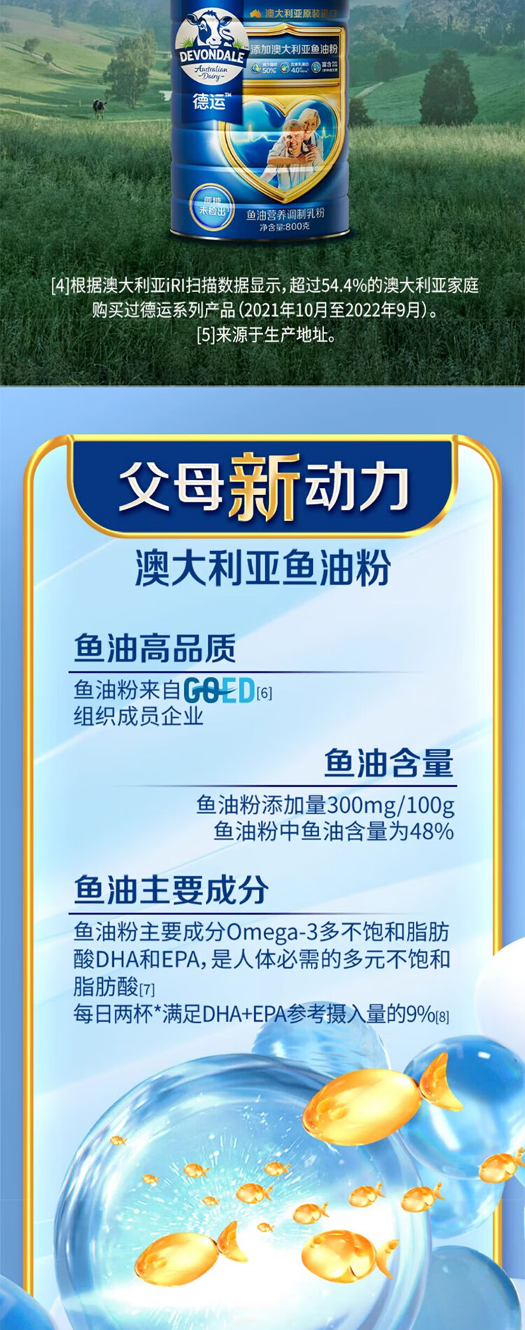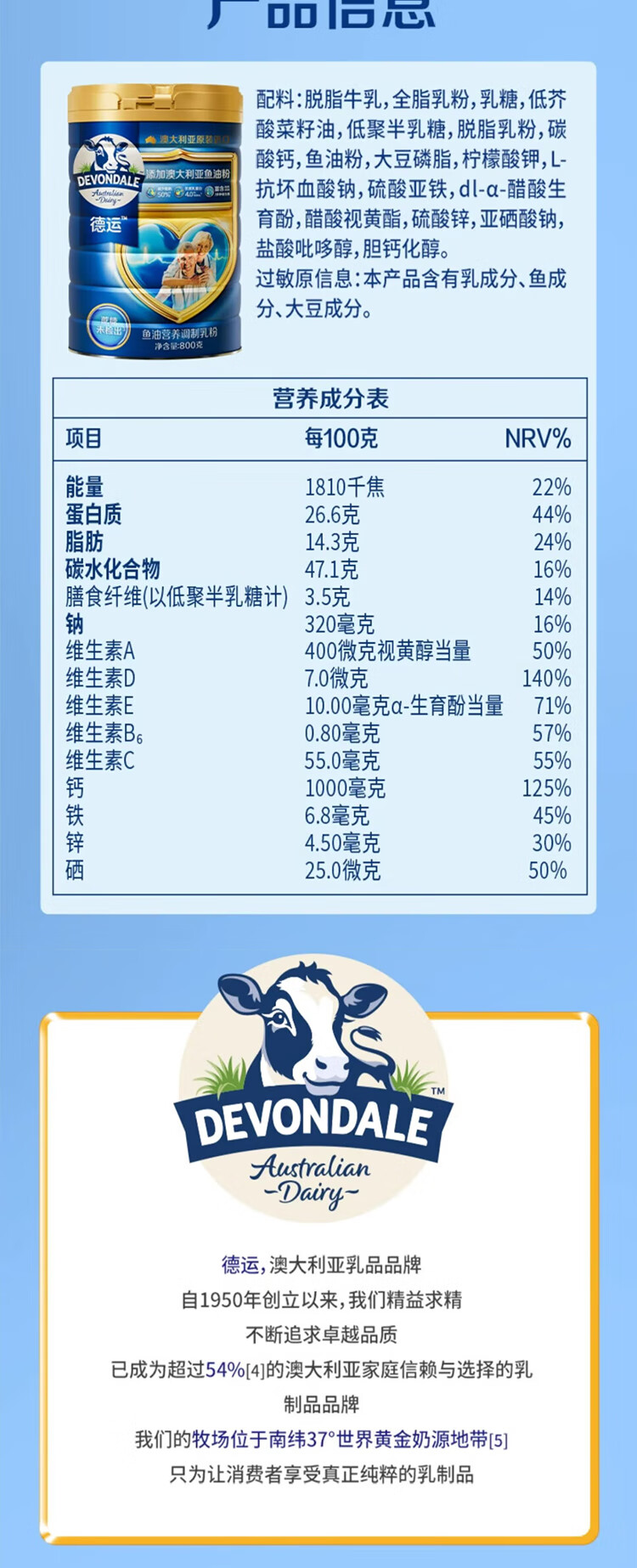 德运鱼油营养调制乳粉800g澳大利亚进口罐装高钙送长辈【临期清仓】