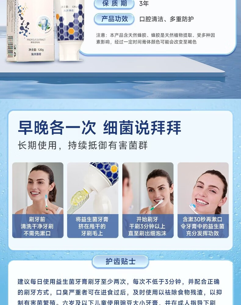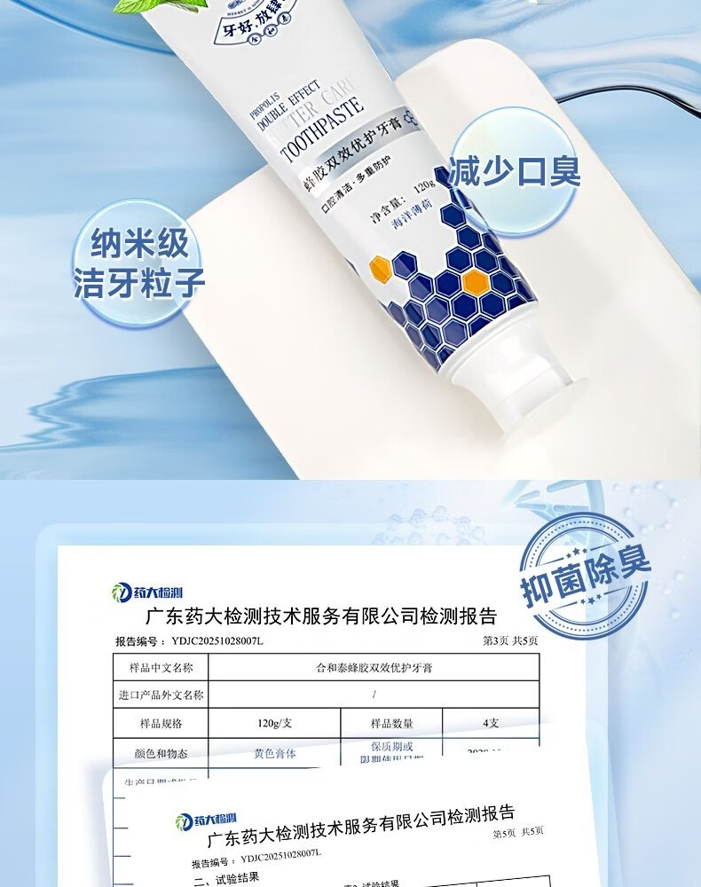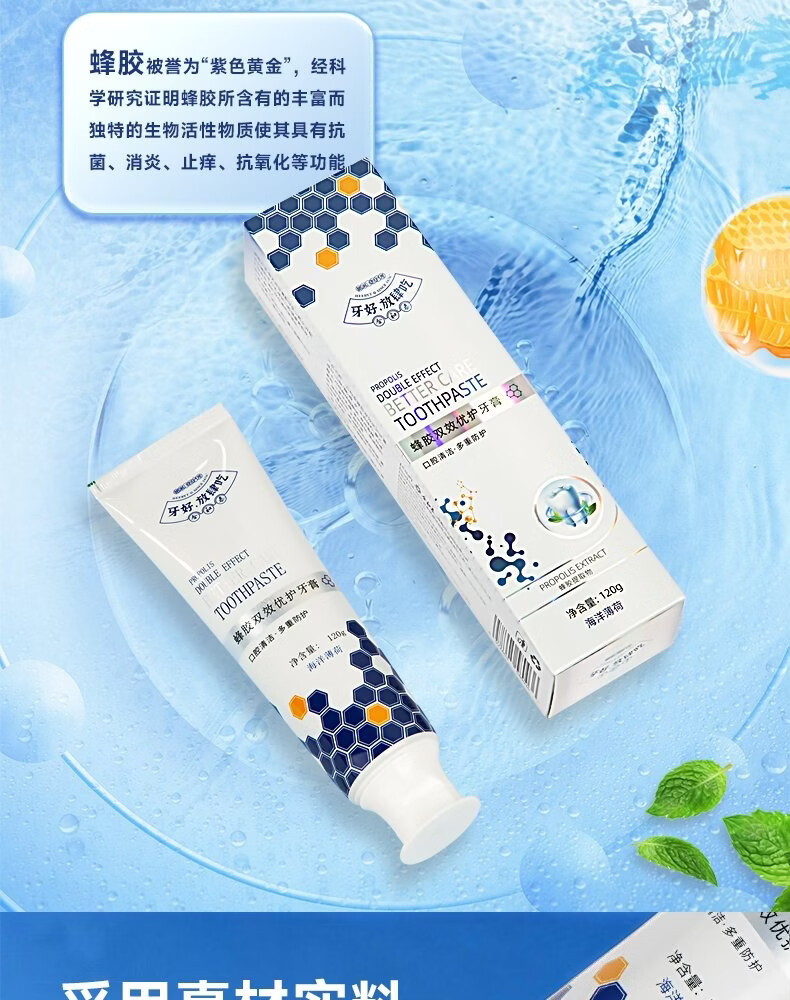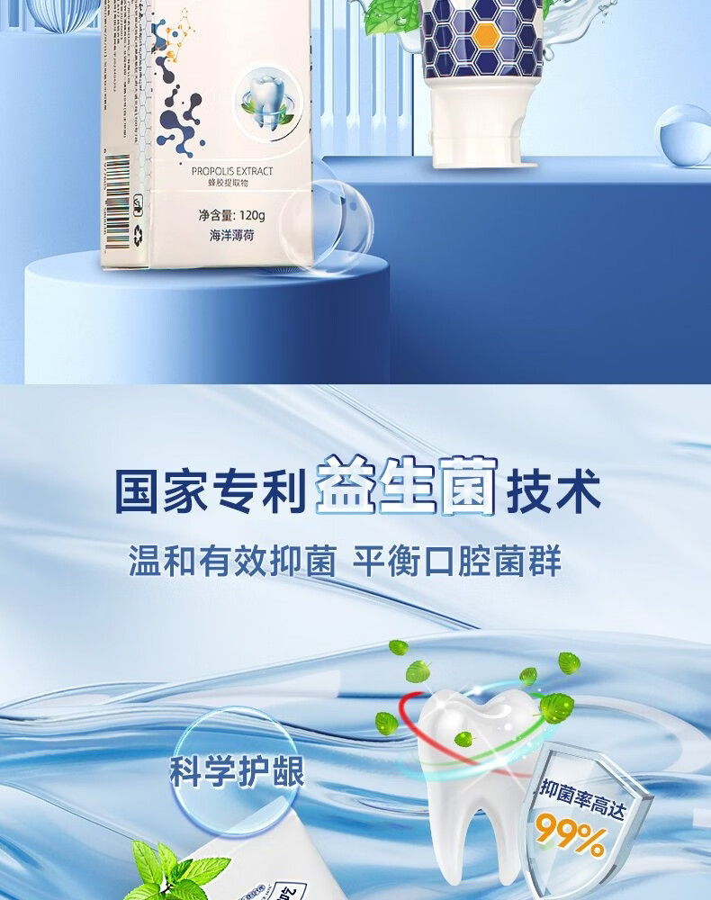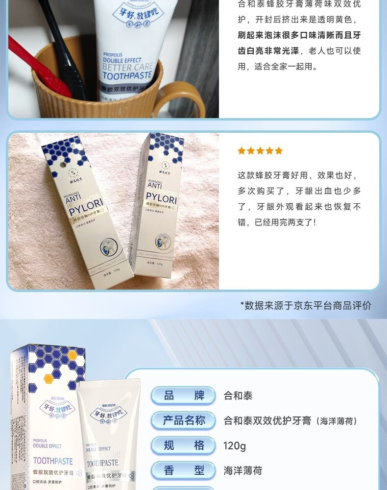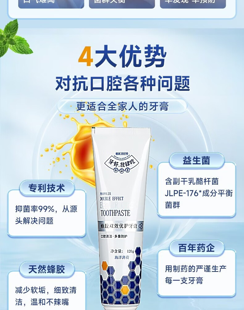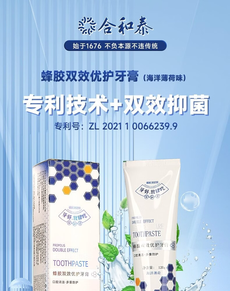 合和泰蜂胶牙膏 双效优护牙膏 专利益生菌牙膏 抑菌清新口气 120g*5支