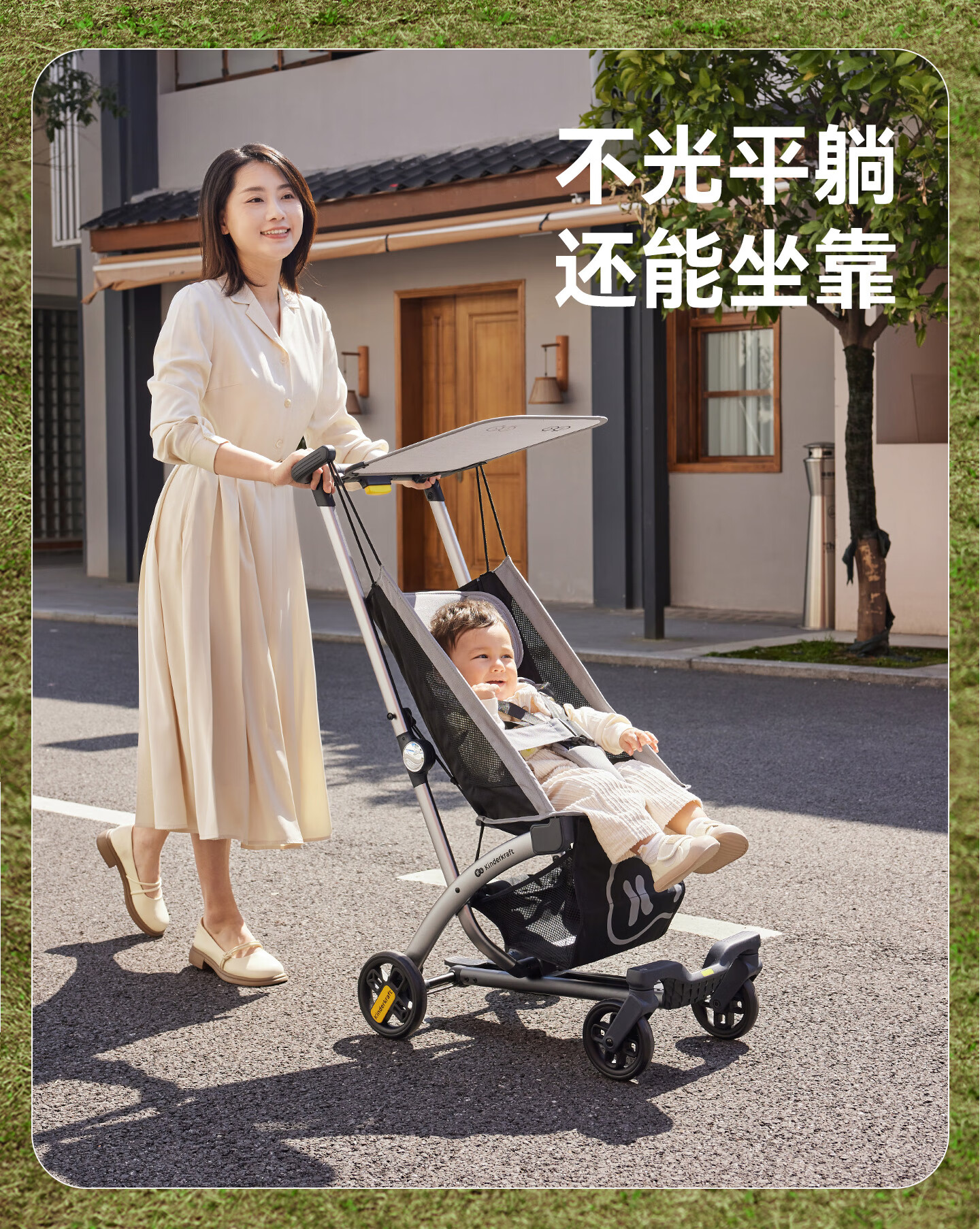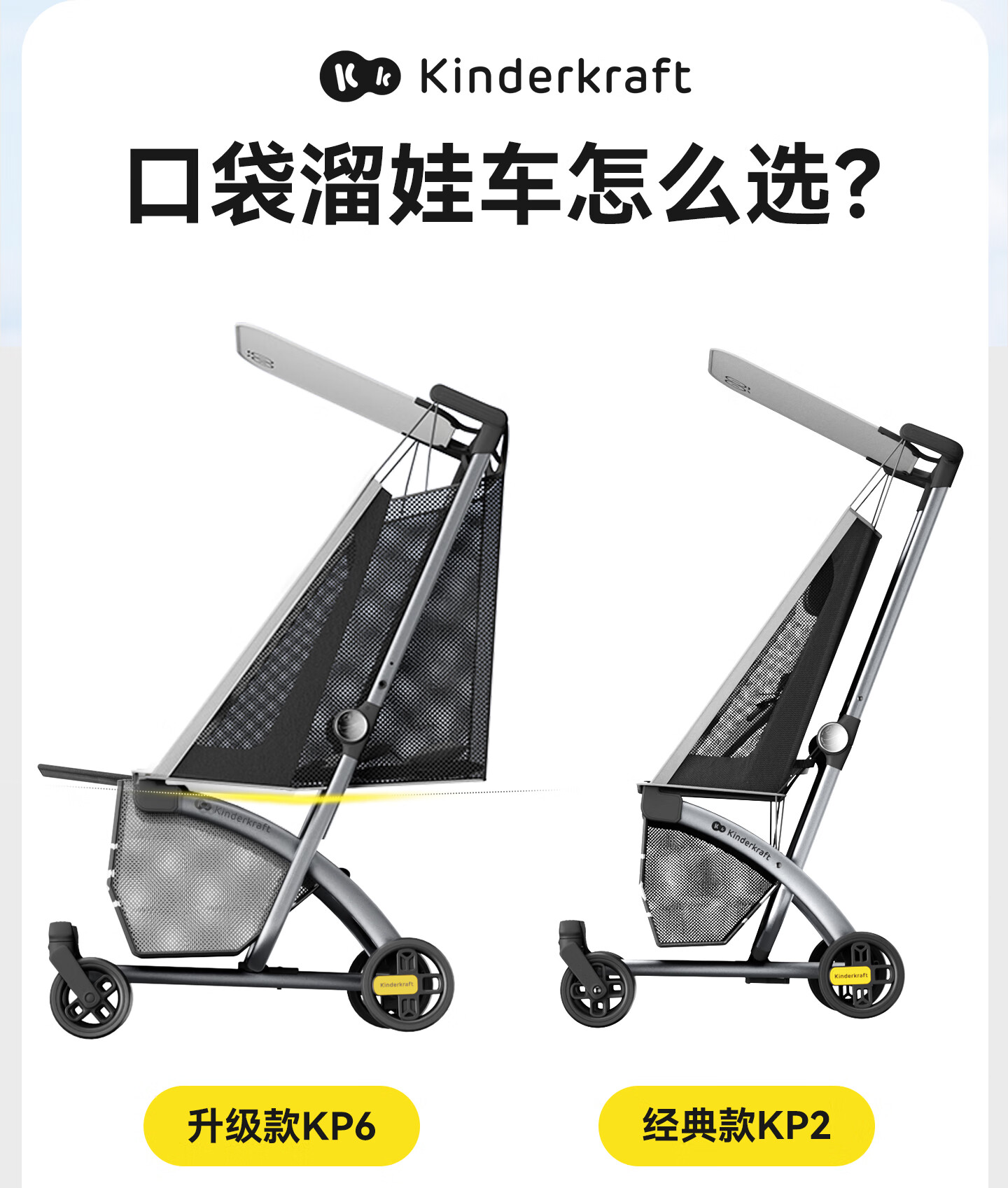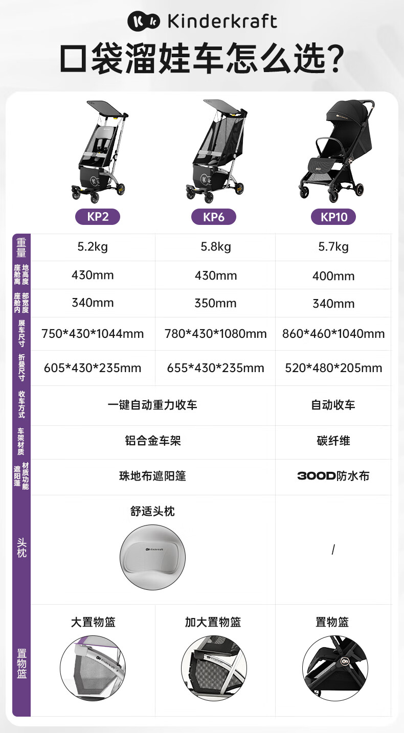 KinderKraftKK口袋推车可坐可躺一键收车0-3岁遛娃神器婴儿车轻便折叠海屿青