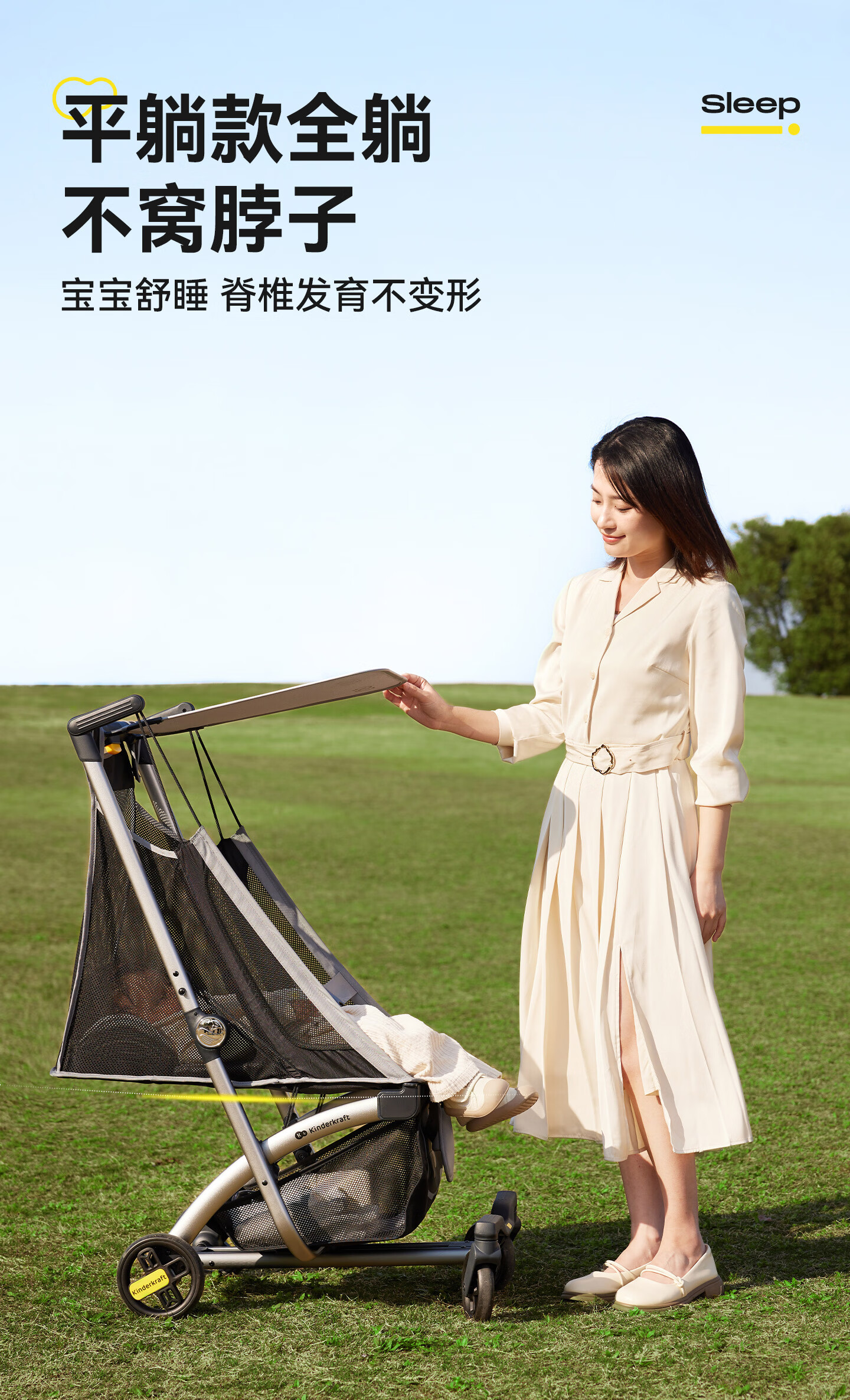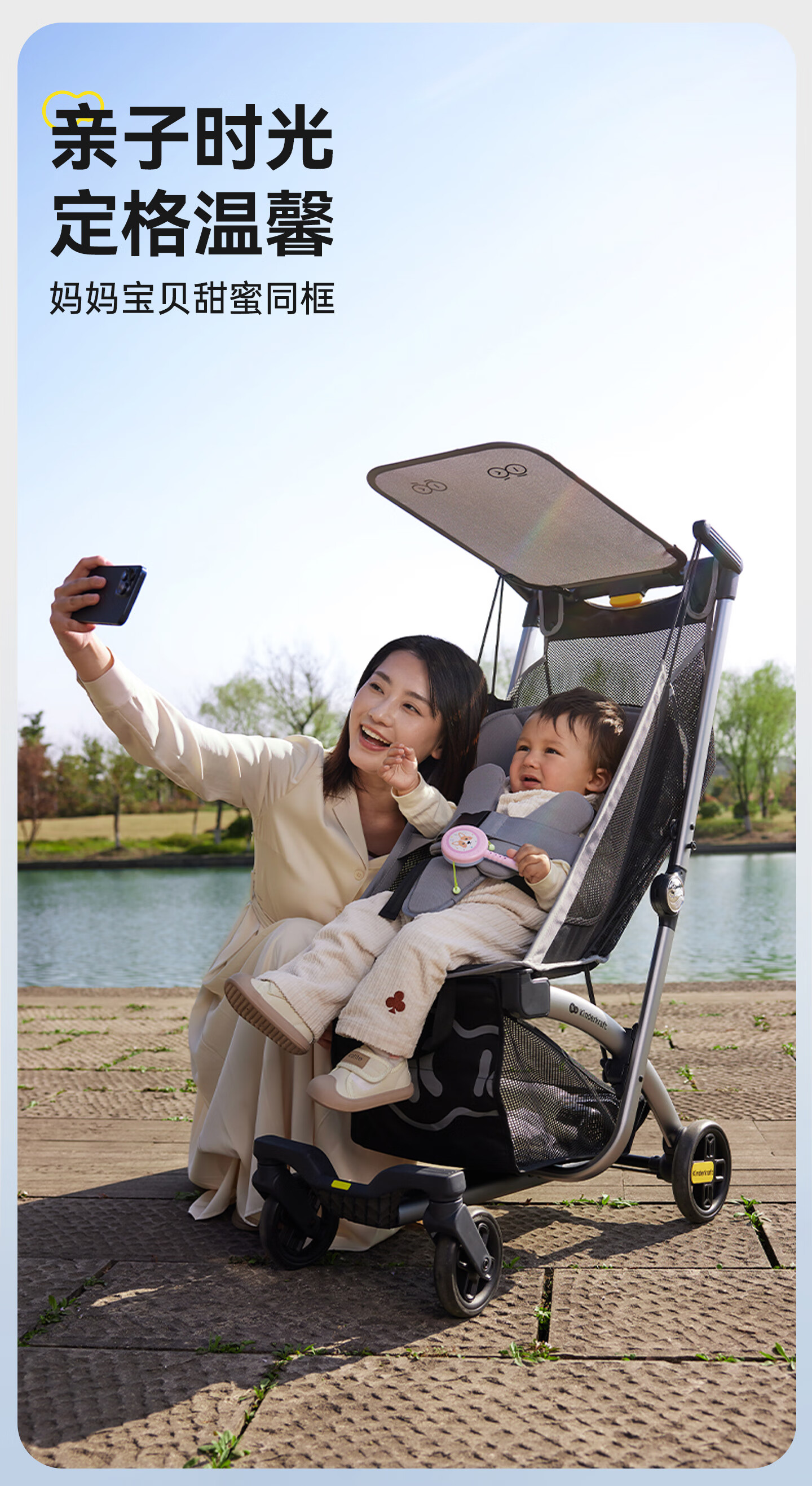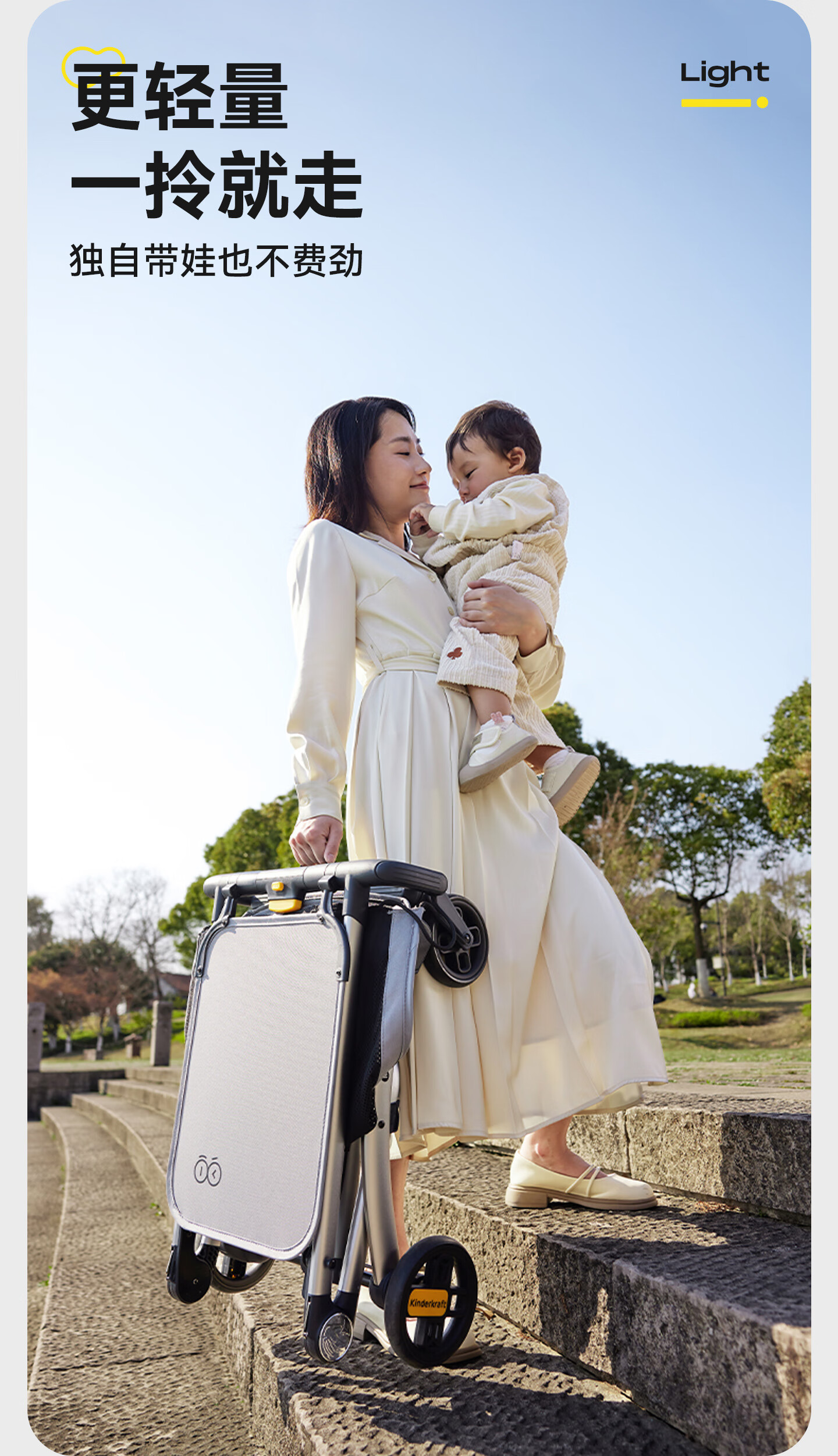 KinderKraftKK口袋推车可坐可躺一键收车0-3岁遛娃神器婴儿车轻便折叠海屿青