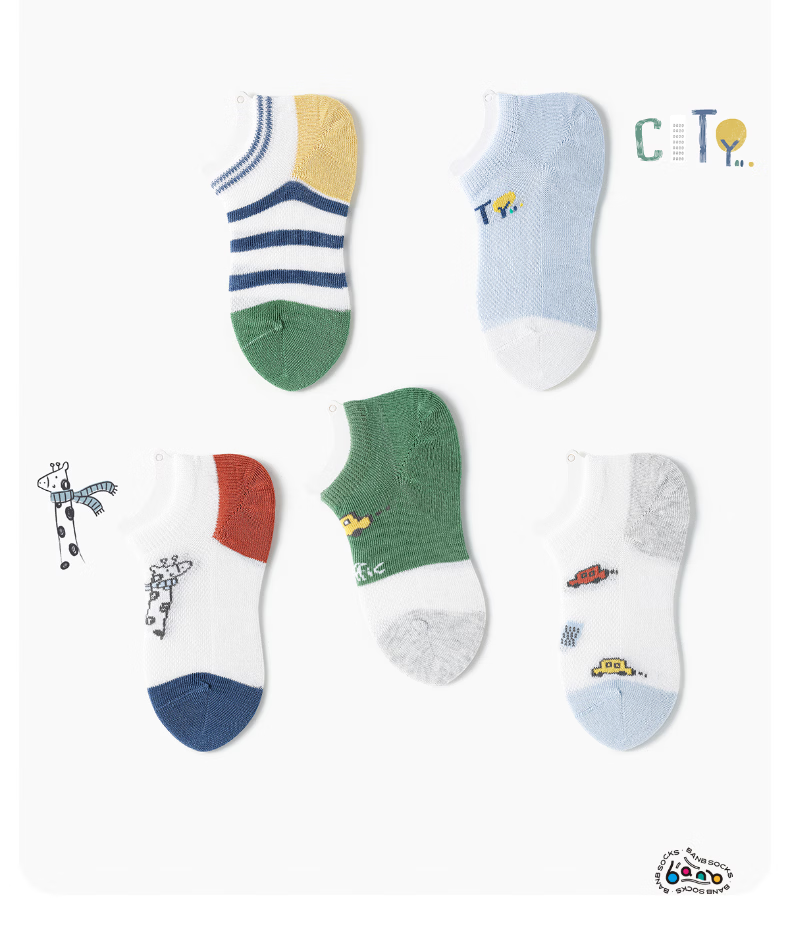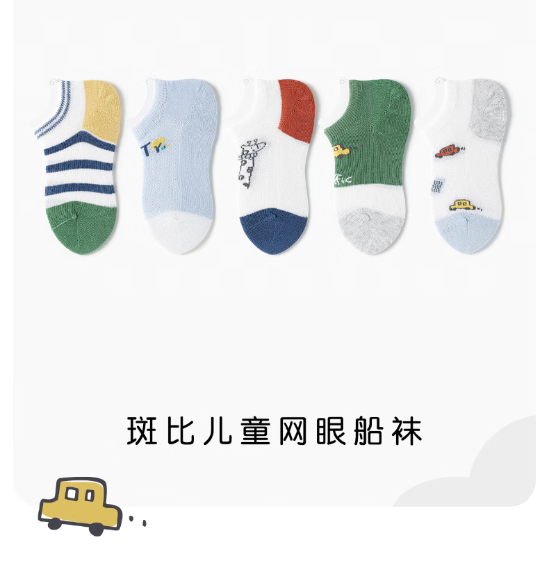 斑比童袜儿童船袜夏季薄款棉袜男中大童宝宝网眼透气短袜子 BB2331 儿童夏季网眼船袜 5双 6-8岁 建议脚码27-32码【18-20】