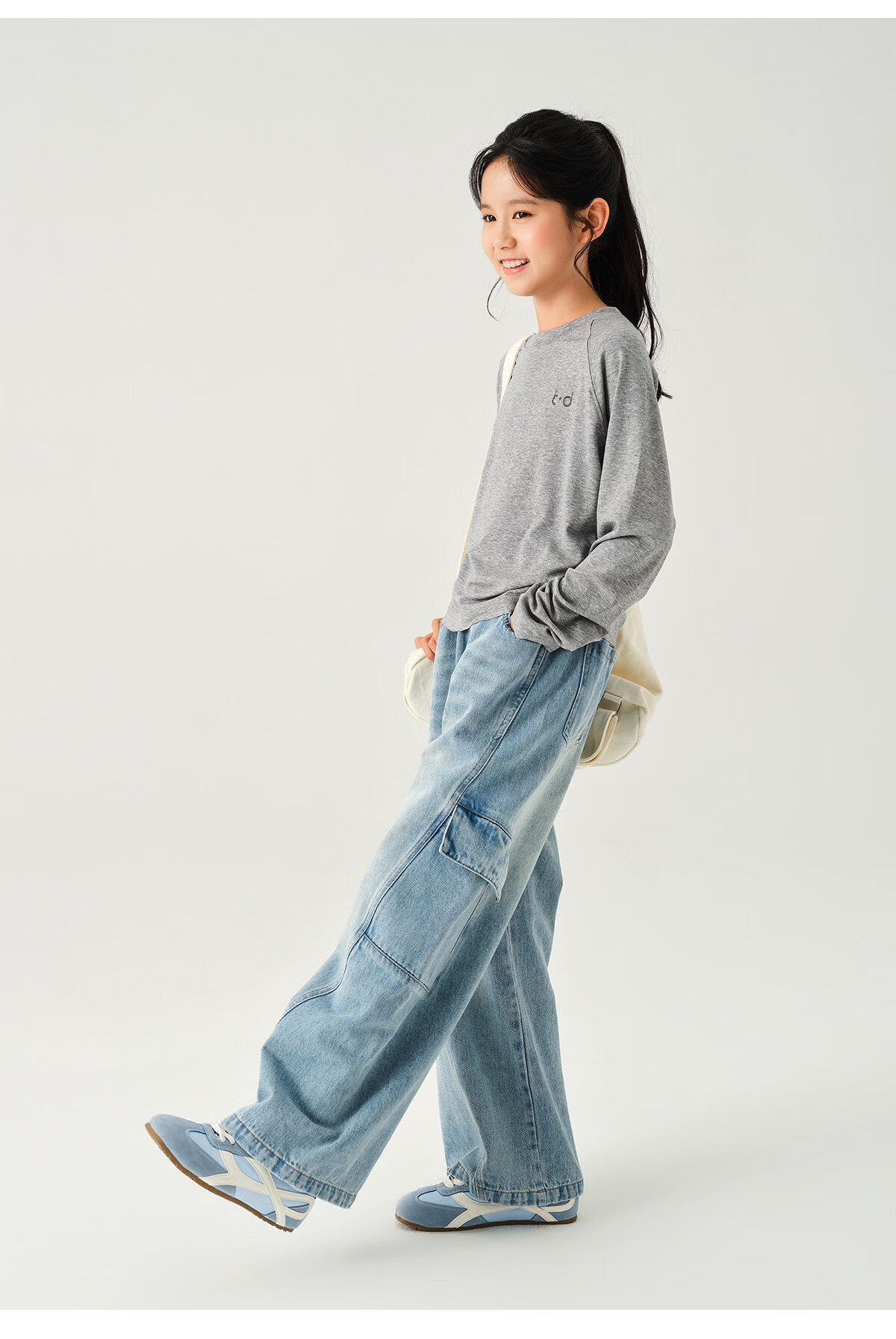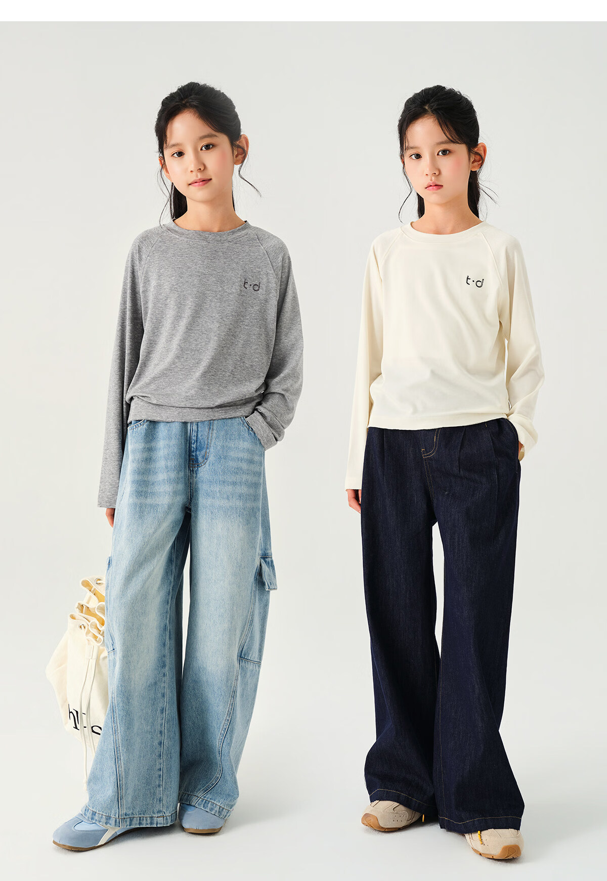 媛媛公主【经典百搭高棉牛仔裤】儿童长裤秋冬款女童加绒柔软阔腿裤直筒裤 牛仔蓝(加绒加厚款) 140