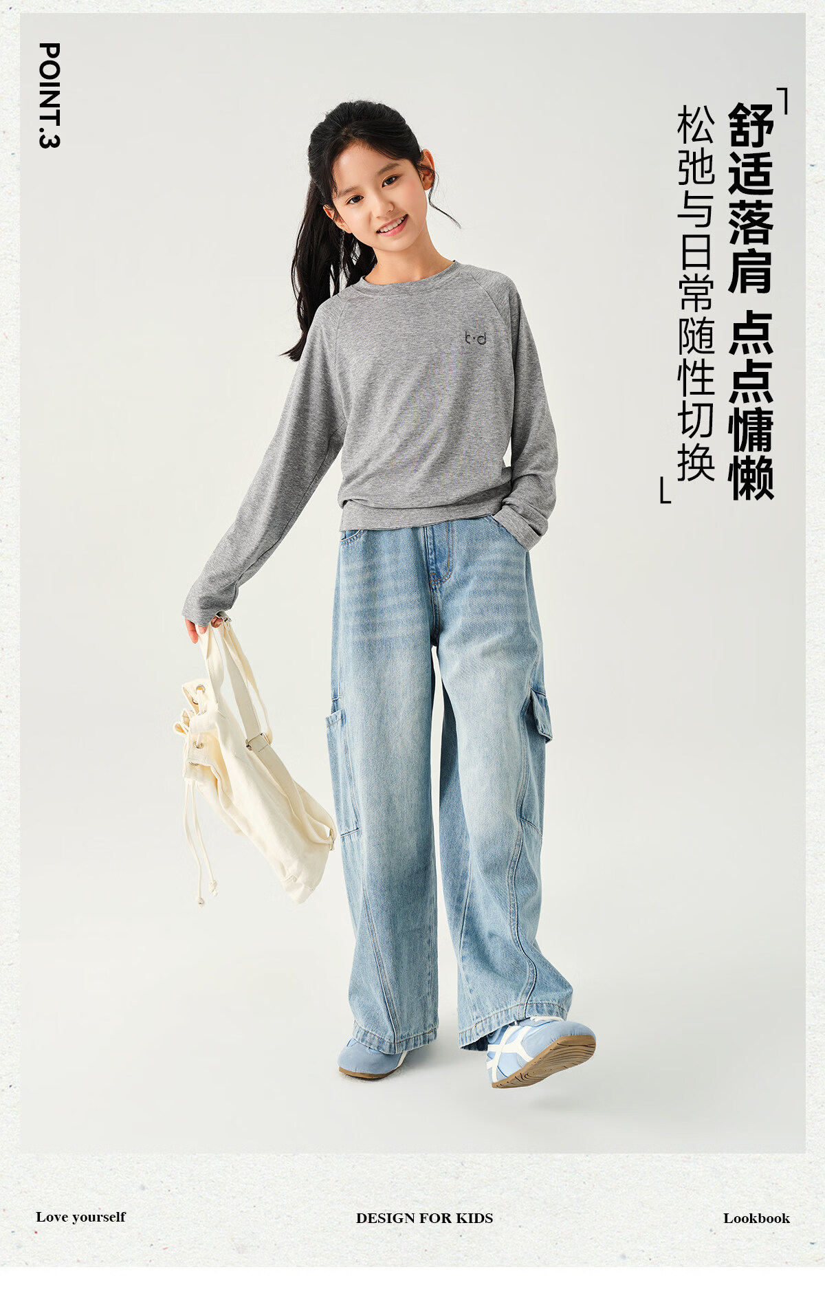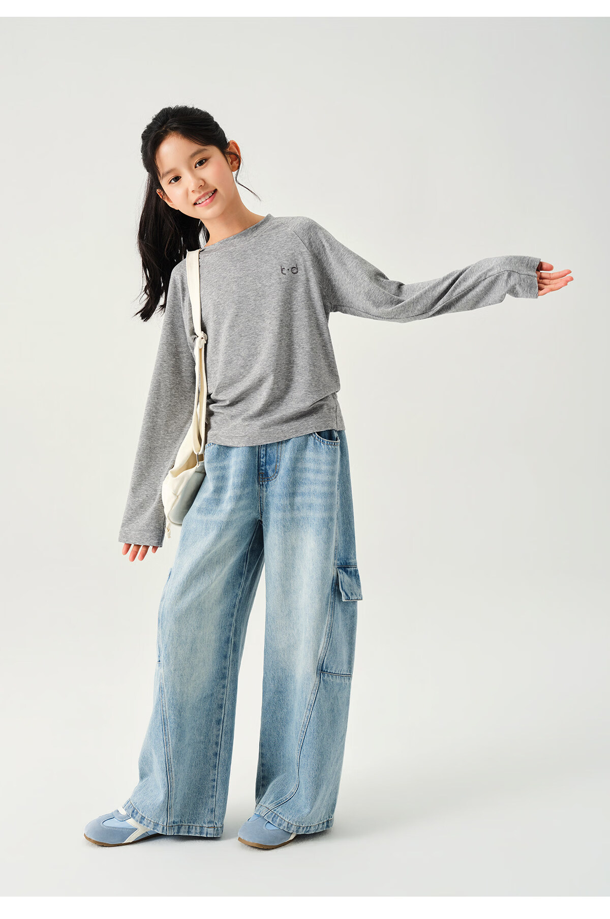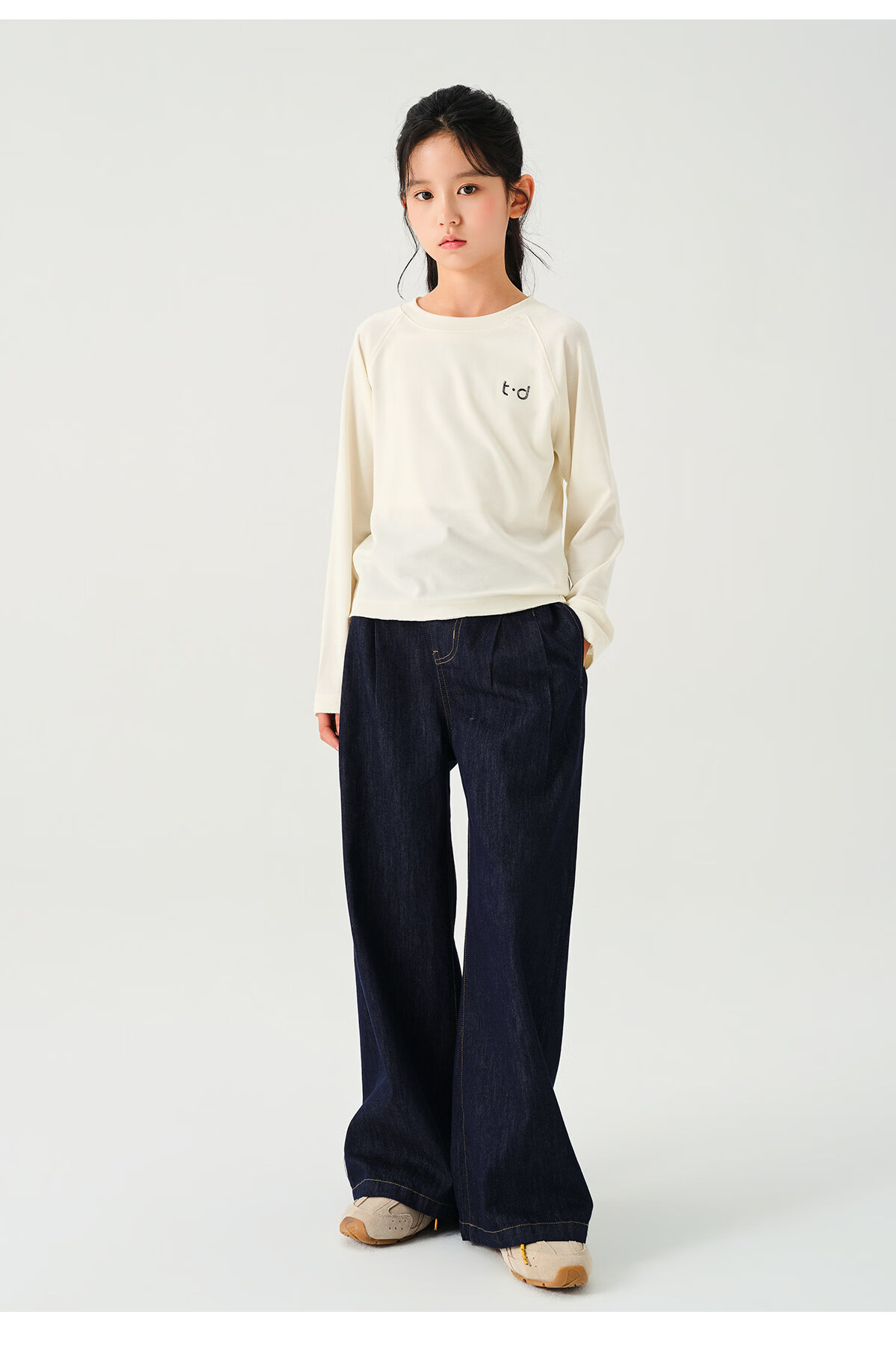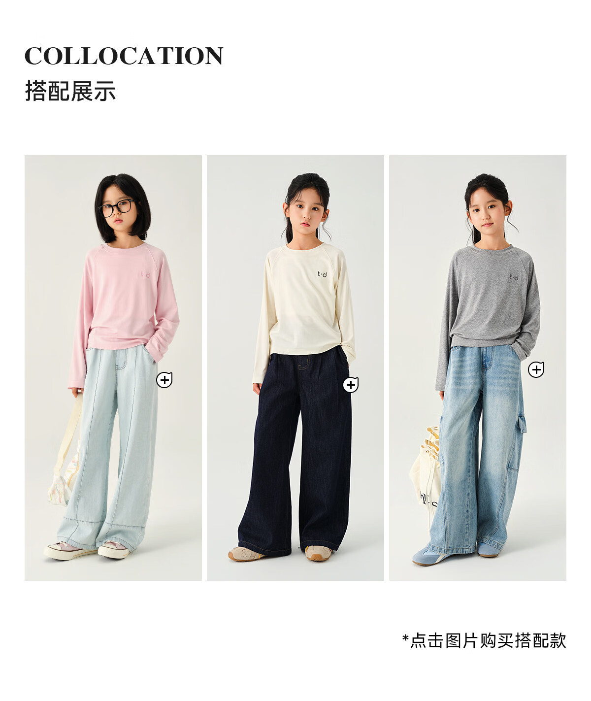 媛媛公主【经典百搭高棉牛仔裤】儿童长裤秋冬款女童加绒柔软阔腿裤直筒裤 牛仔蓝(加绒加厚款) 150