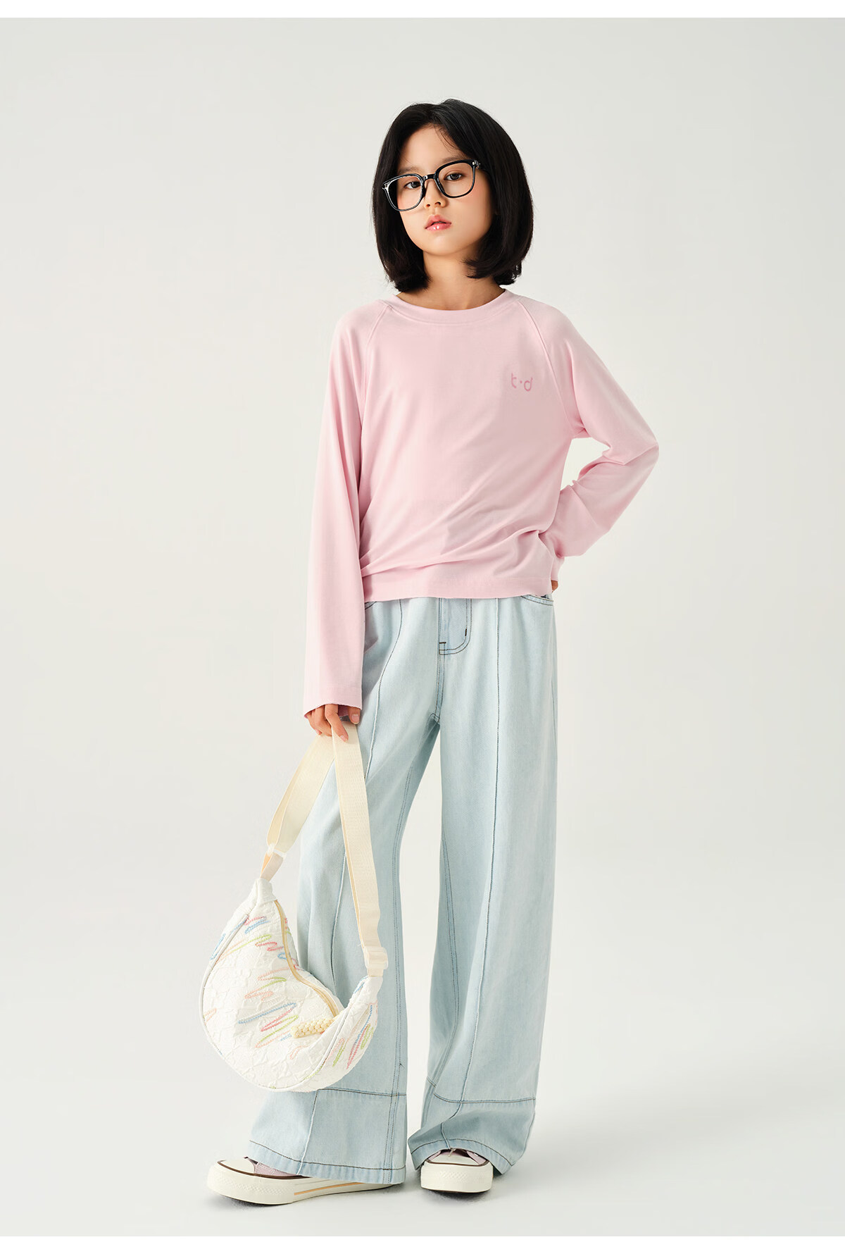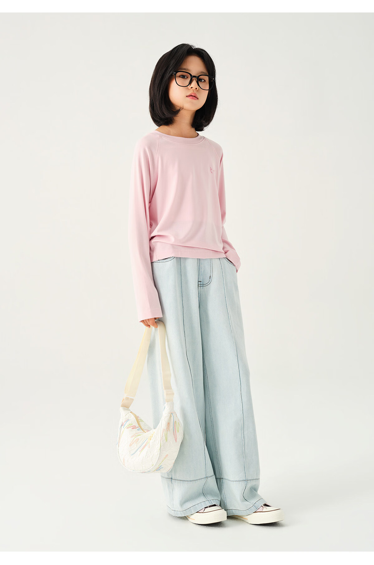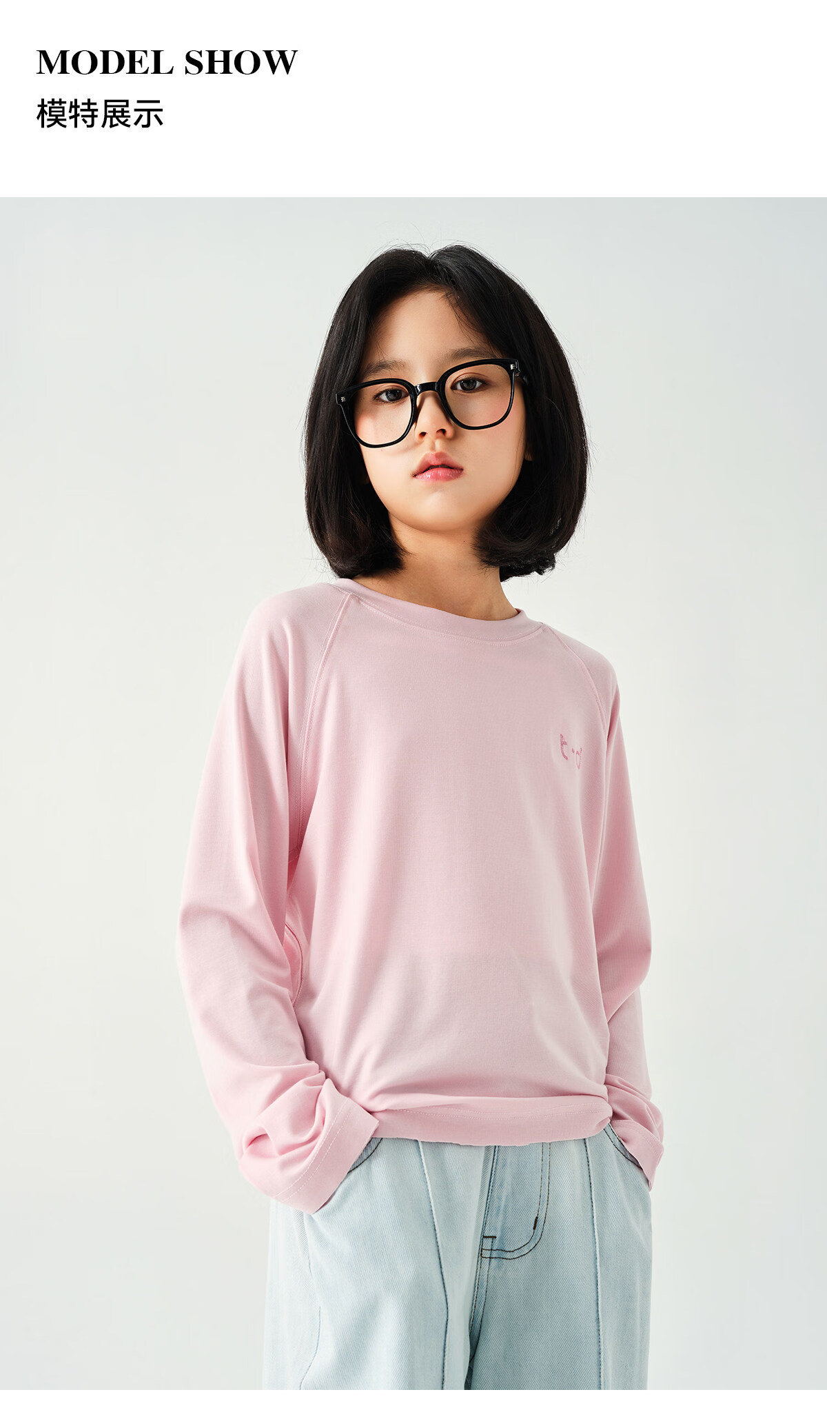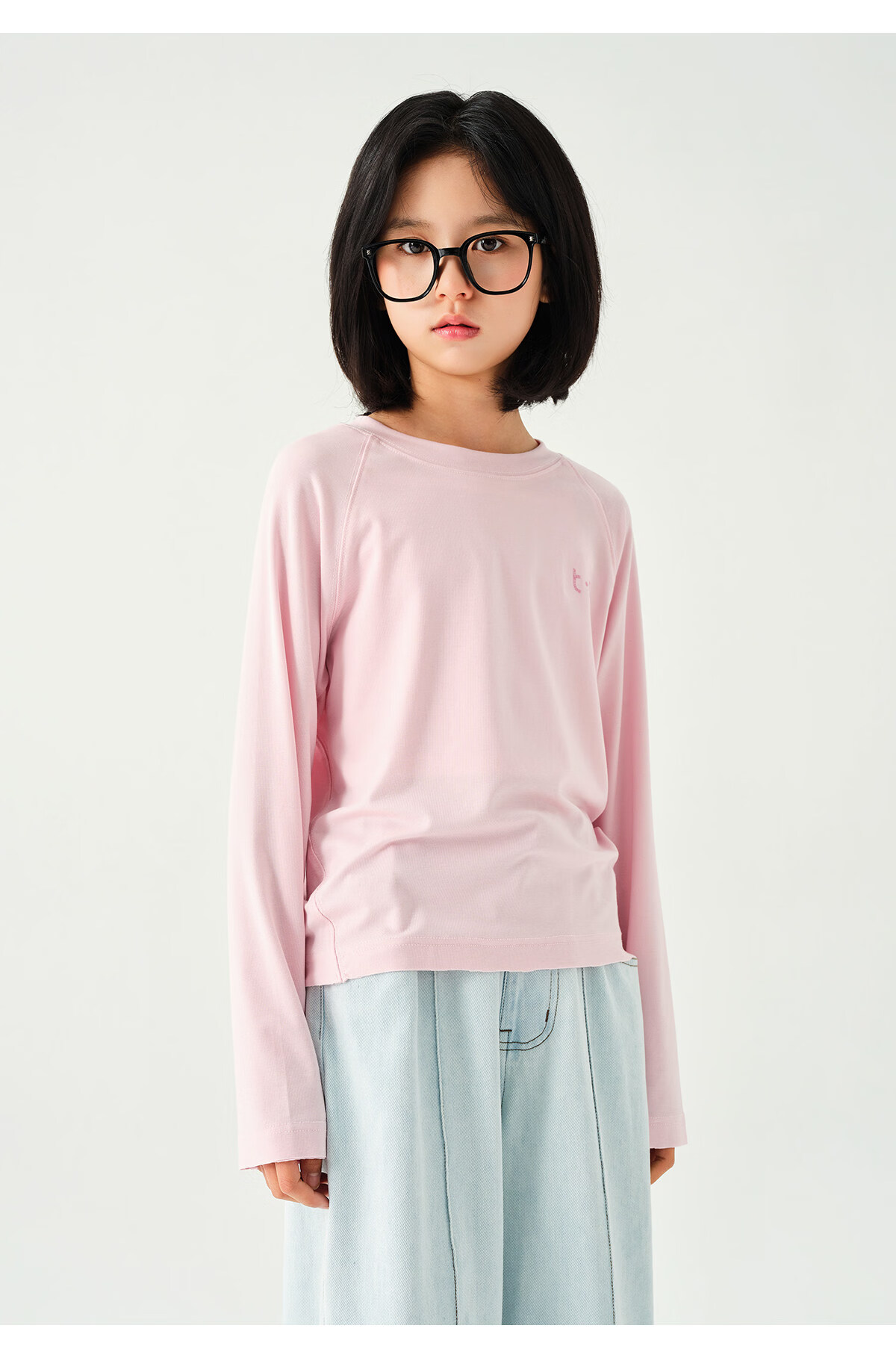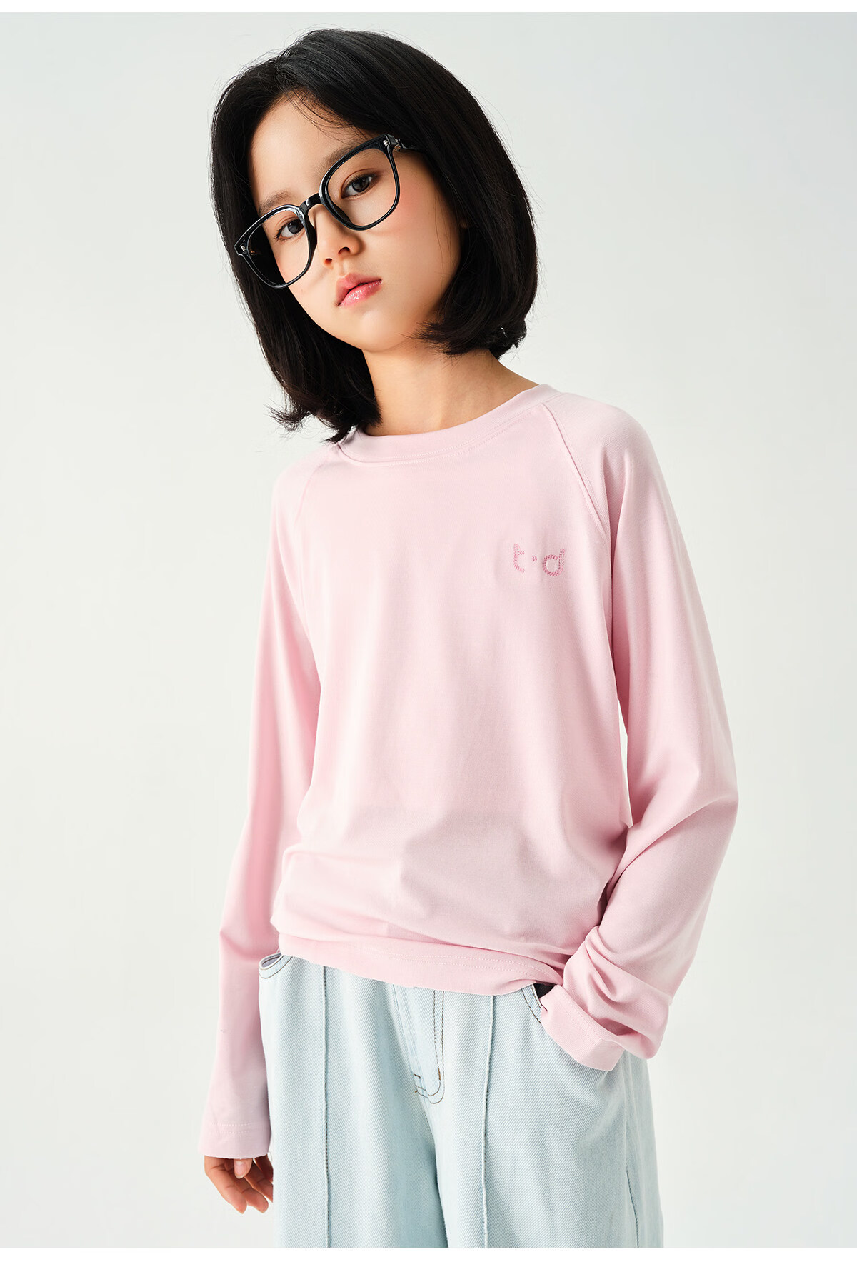淘町女童T恤春季新款莱赛尔亲肤纯色打底长袖儿童休闲洋气上衣女 粉色 160 /M|80-105斤