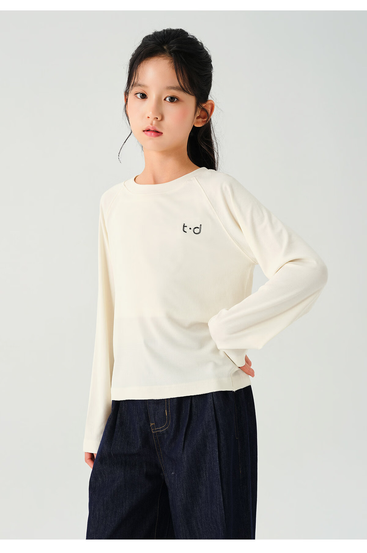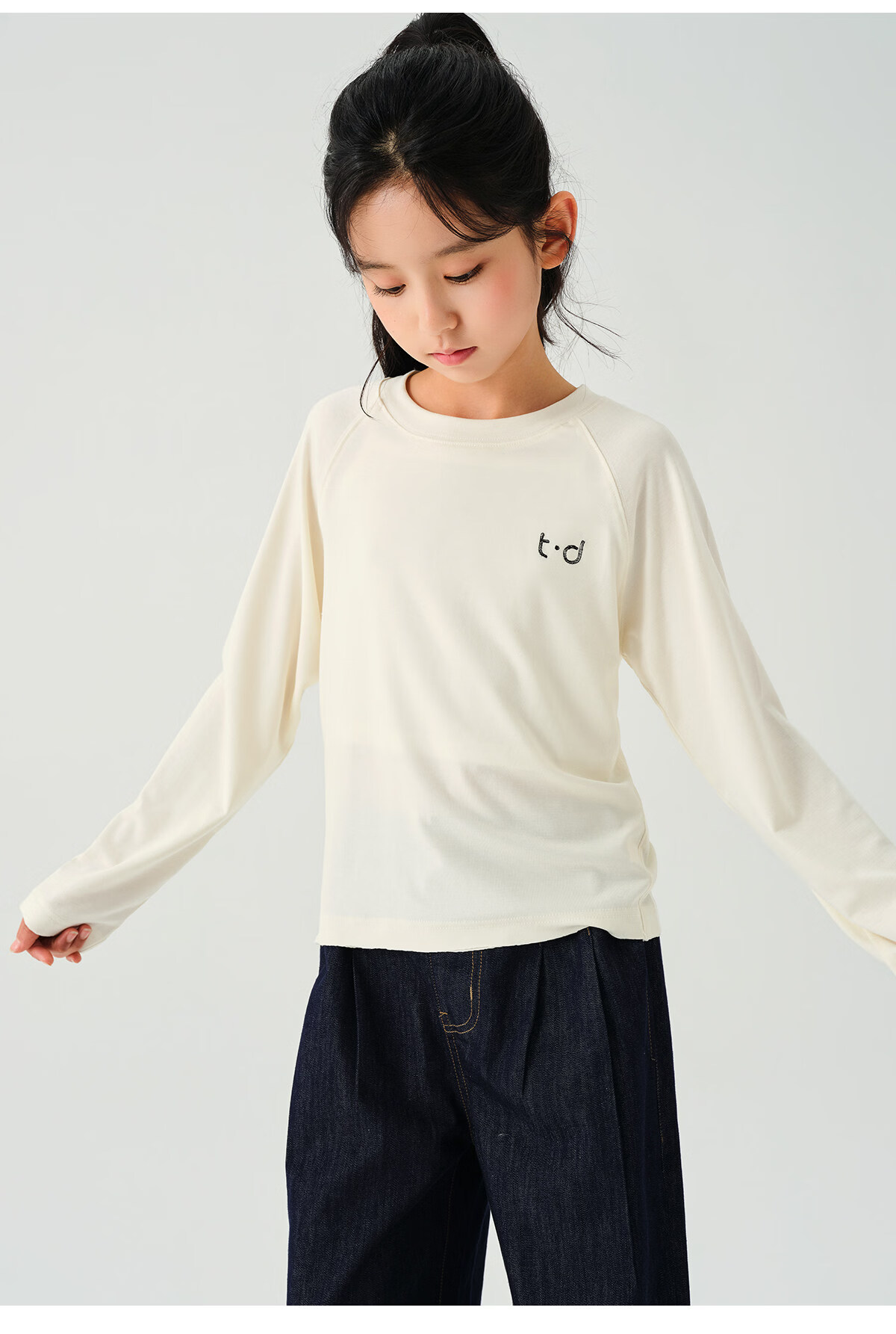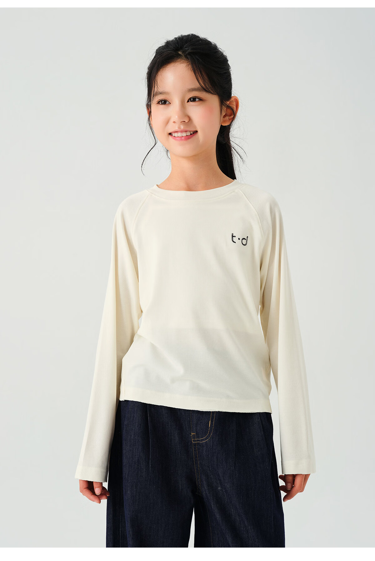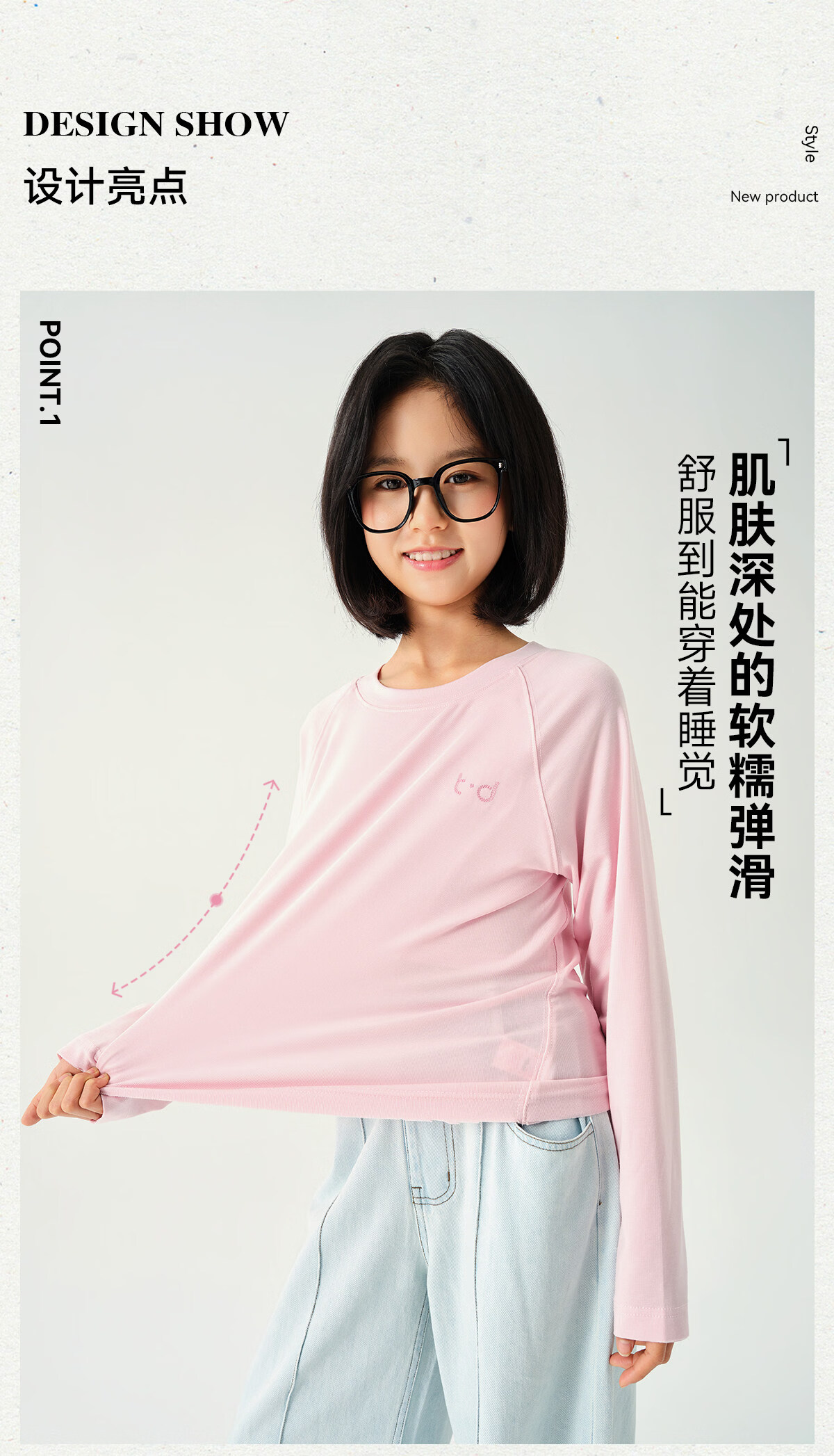 淘町女童T恤春季新款莱赛尔亲肤纯色打底长袖儿童休闲洋气上衣女 粉色 160 /M|80-105斤