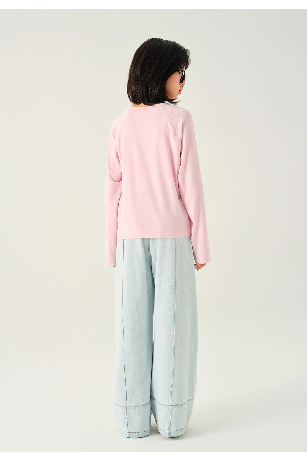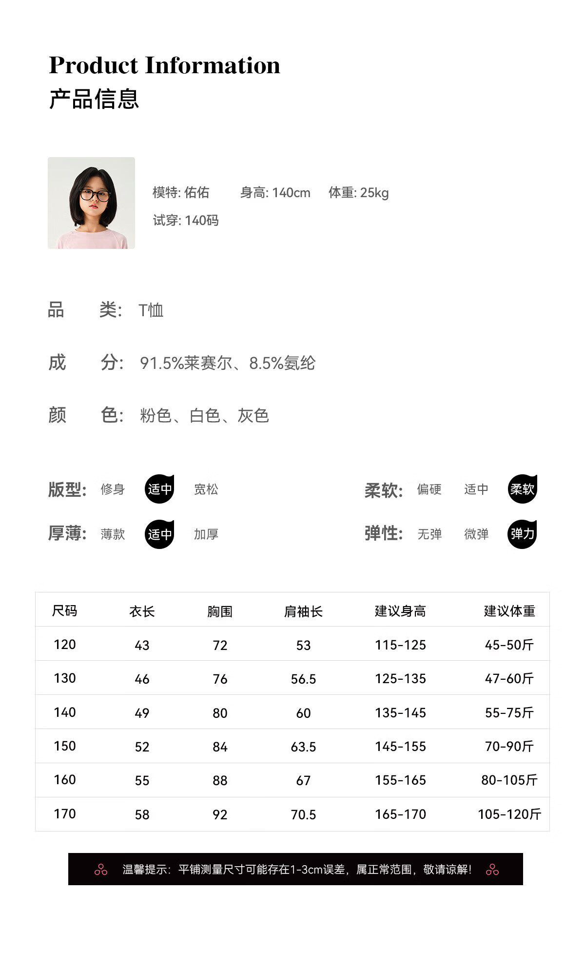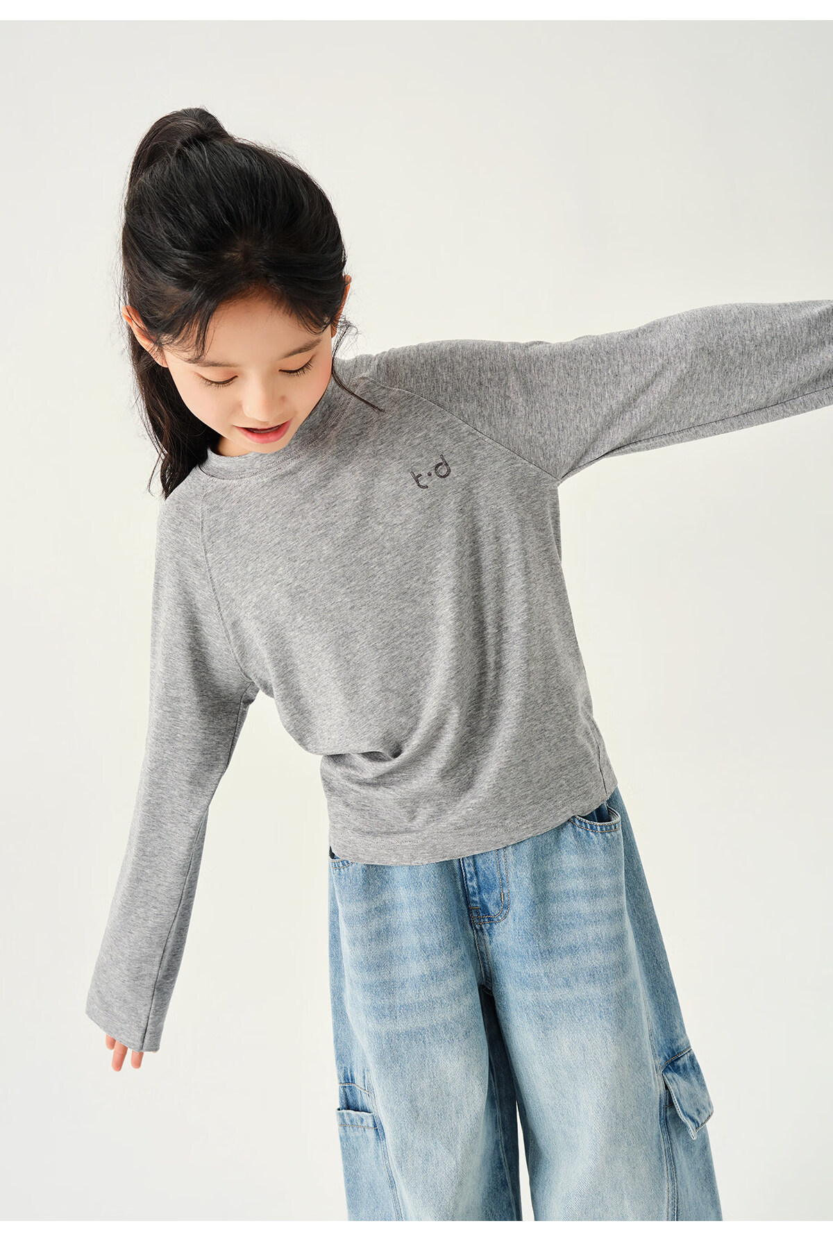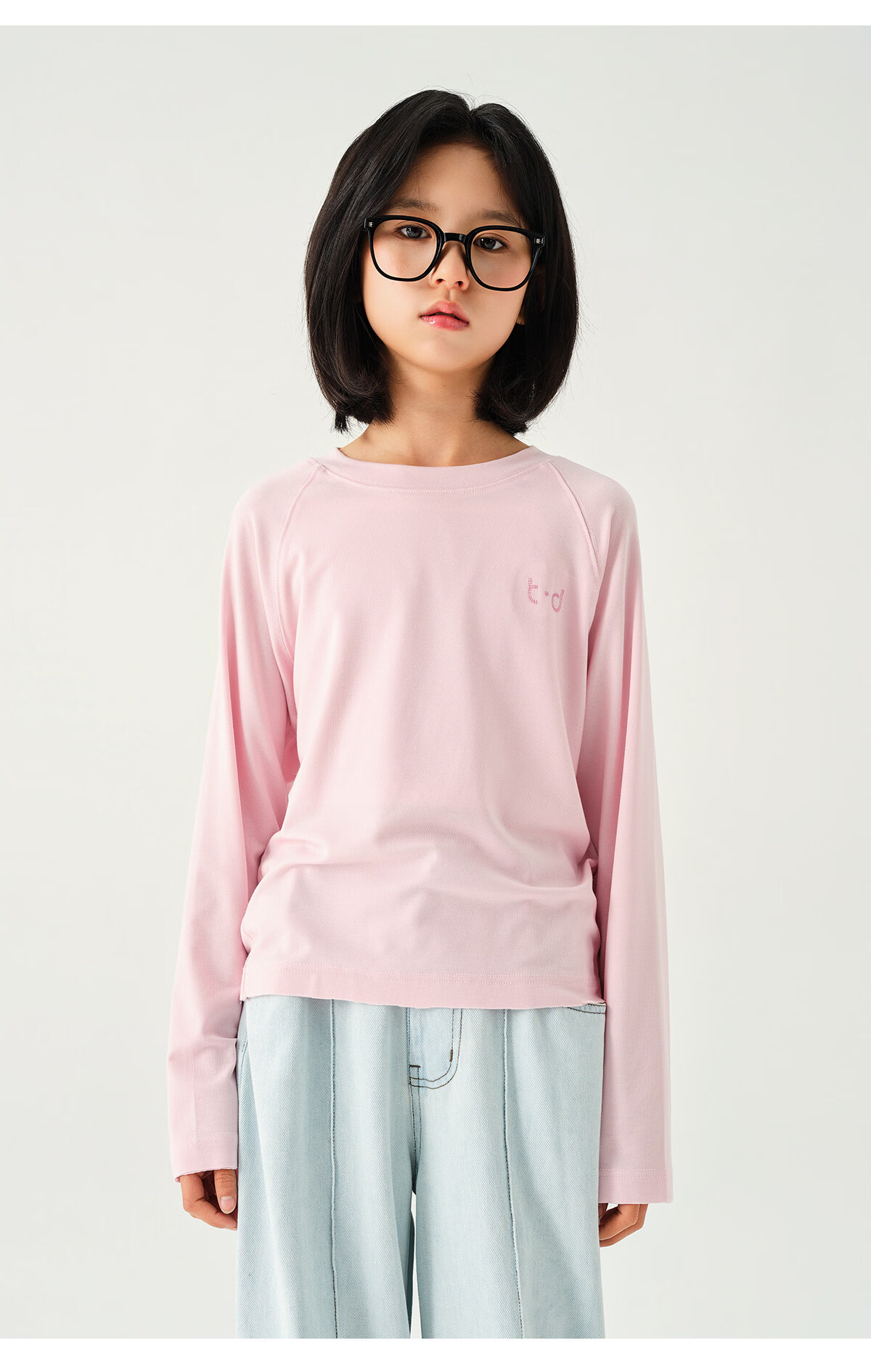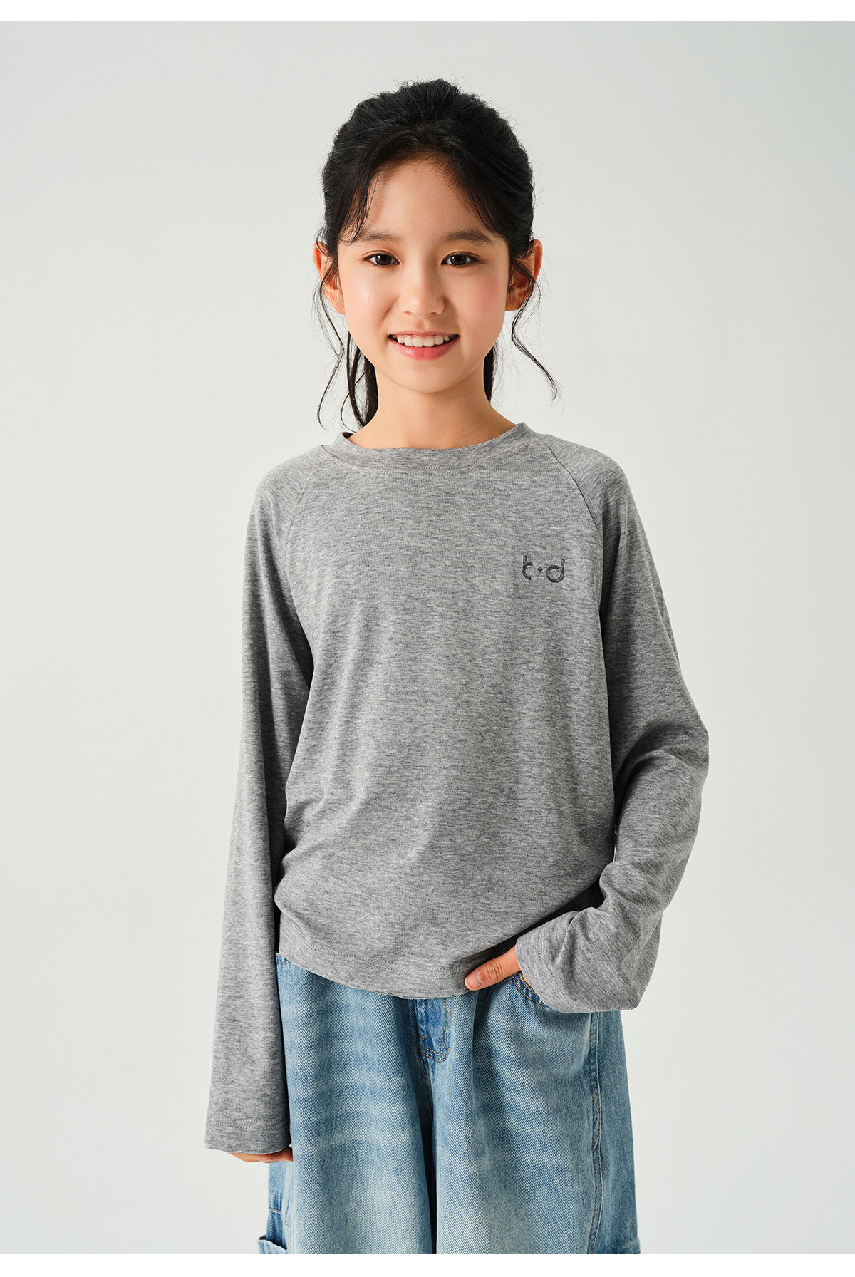 淘町女童T恤春季新款莱赛尔亲肤纯色打底长袖儿童休闲洋气上衣女 粉色 160 /M|80-105斤
