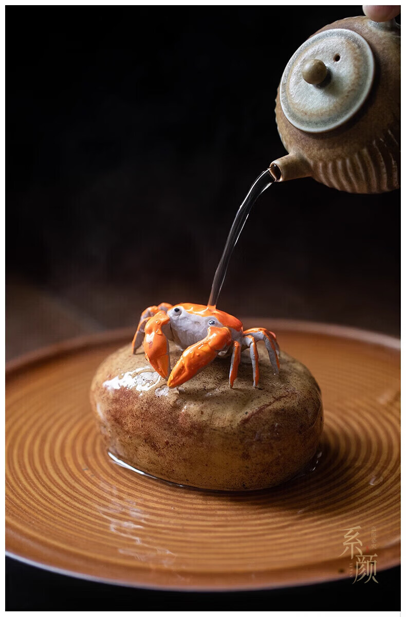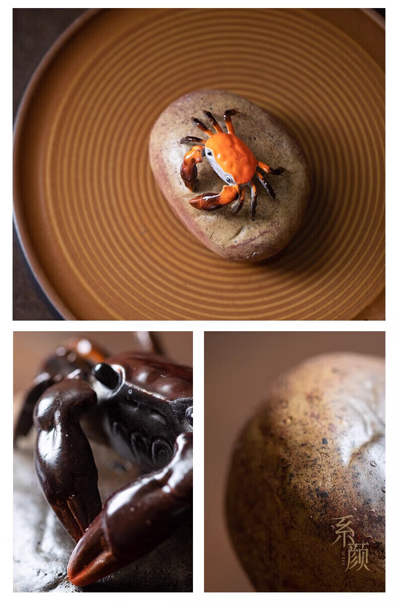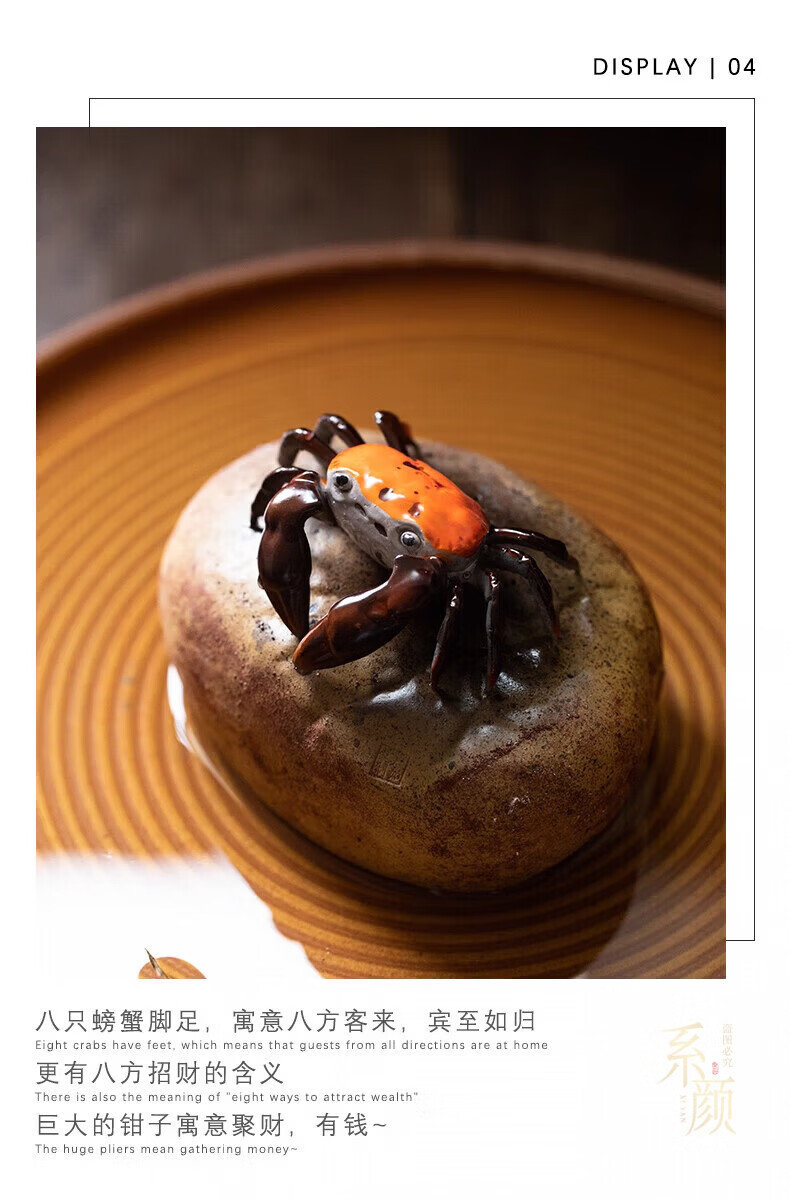 系颜陶瓷紫砂变色螃蟹茶宠摆件创意家用招财八方来财茶桌茶玩礼品茶具 [变色茶宠系列]八方来财变色螃蟹