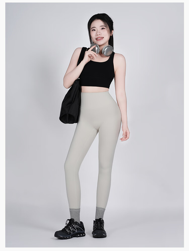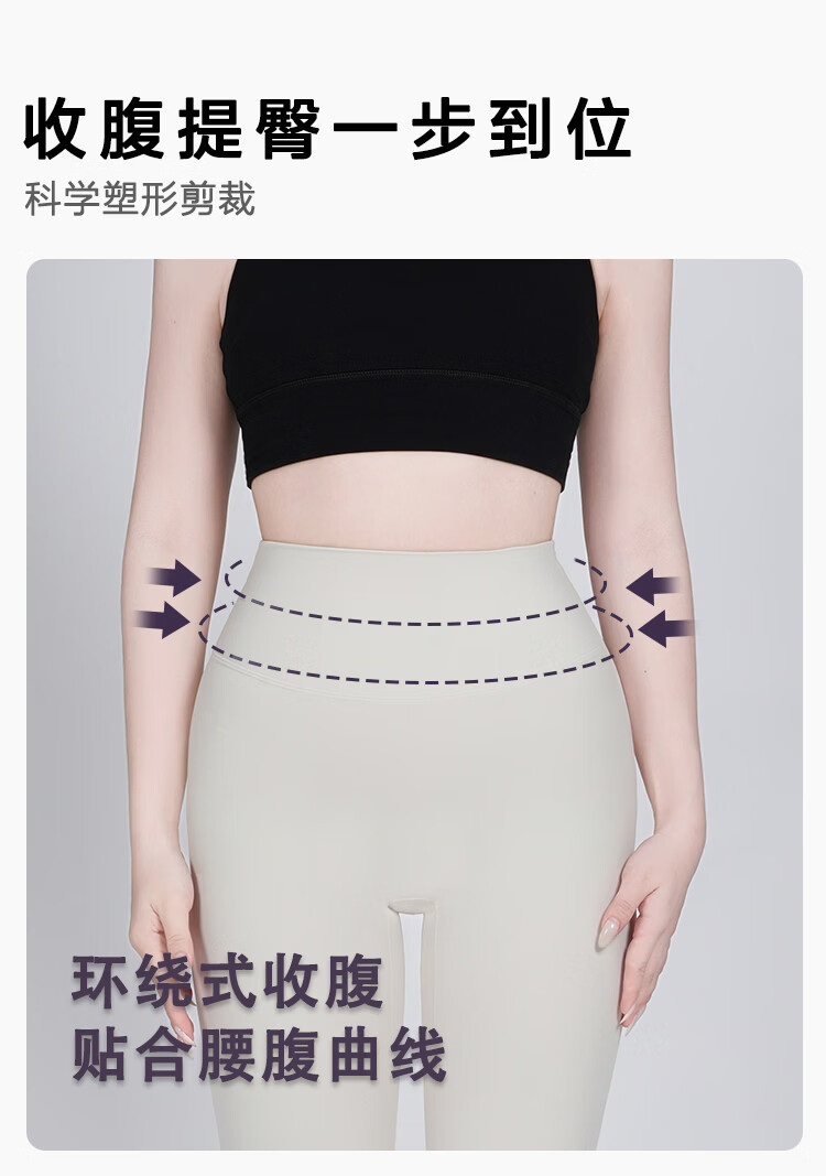 YOGAMIGAS2026新款裸感无痕瑜伽裤女均码高腰提臀九分裤收腹健身显瘦运动裤 白蛋白 均码