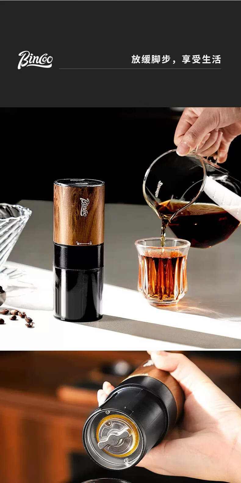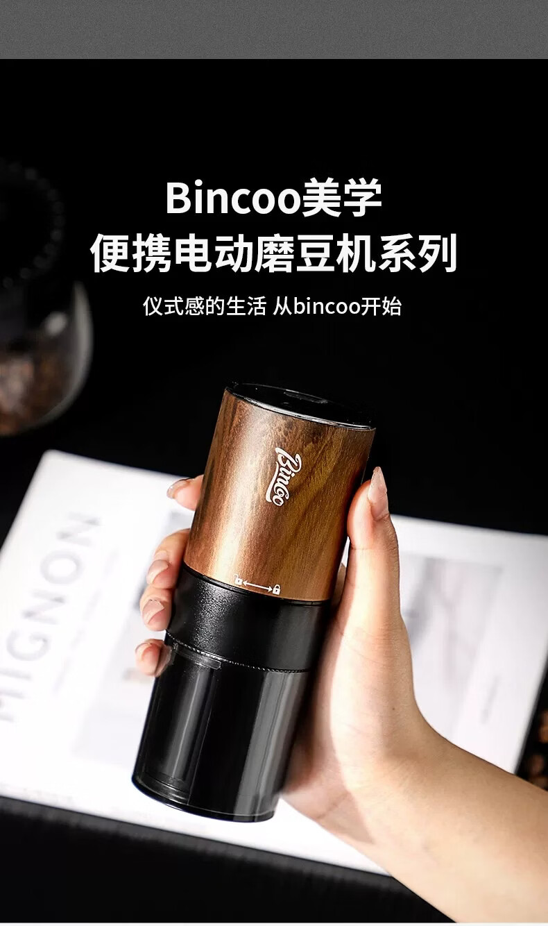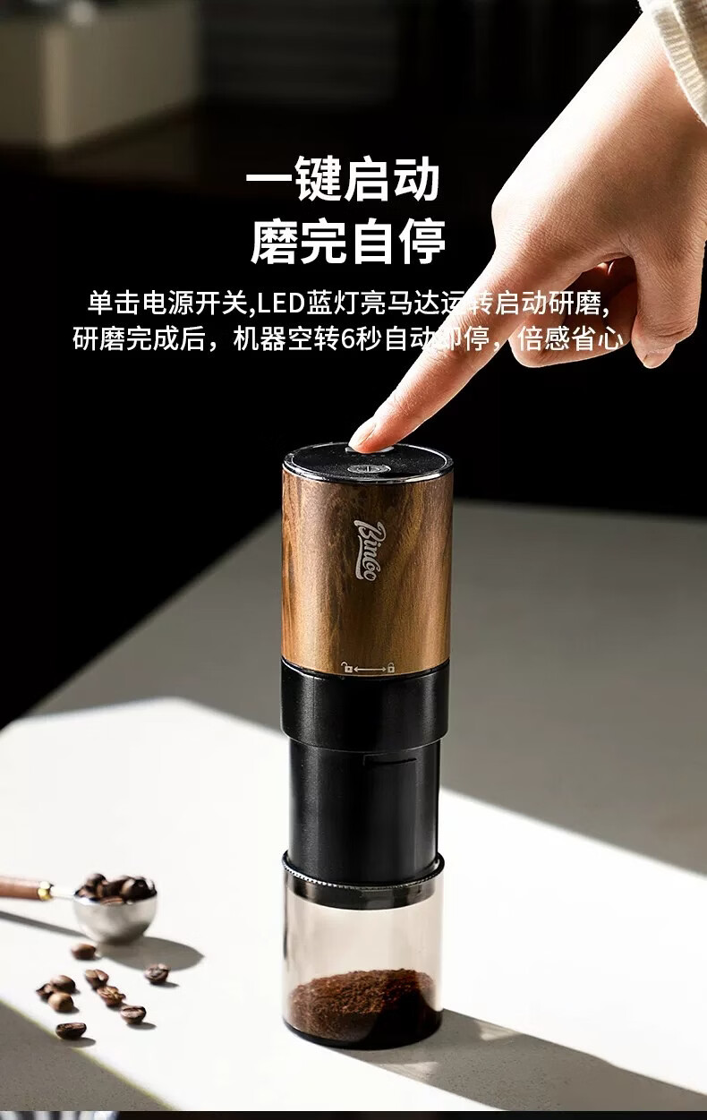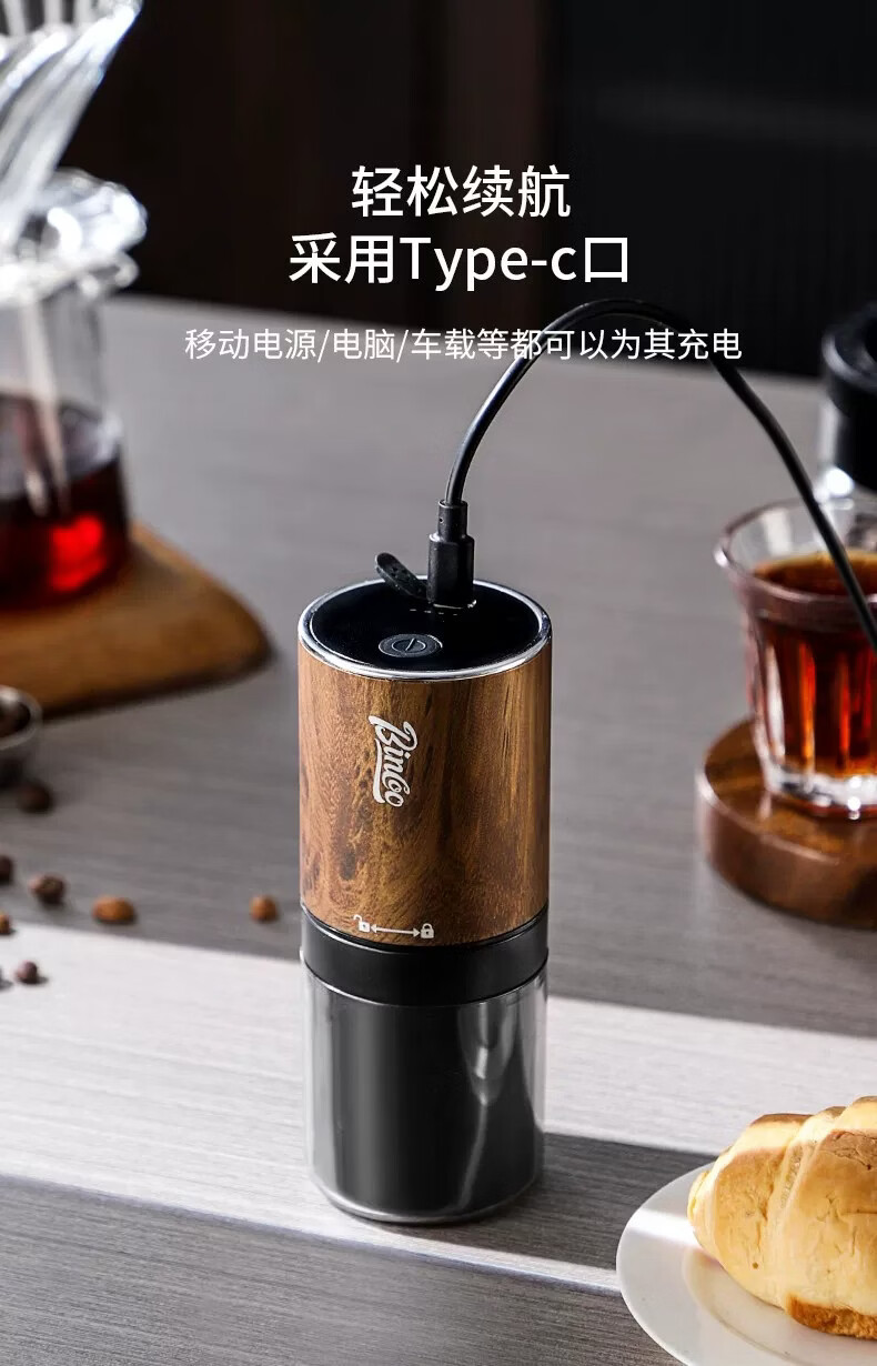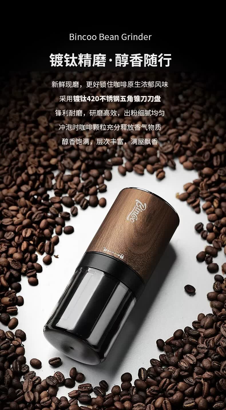 Bincoo电动磨豆机镀钛钢芯咖啡豆研磨器小型便携木纹磨粉咖啡器具 电动木纹磨豆机【镀钛五角磨芯】