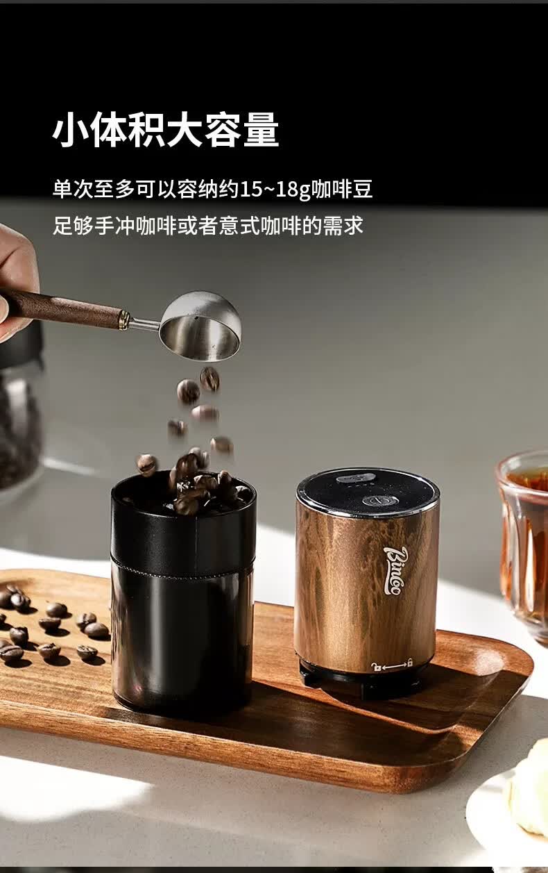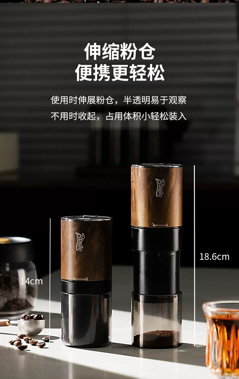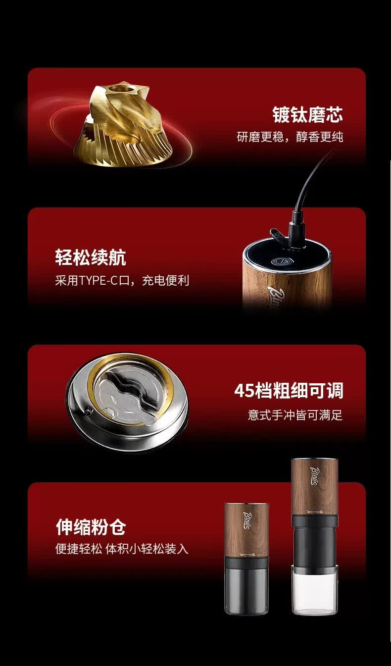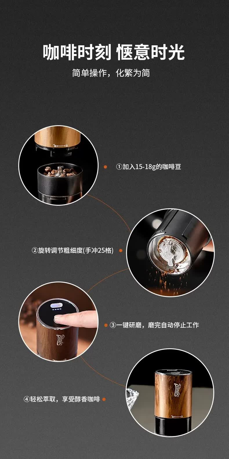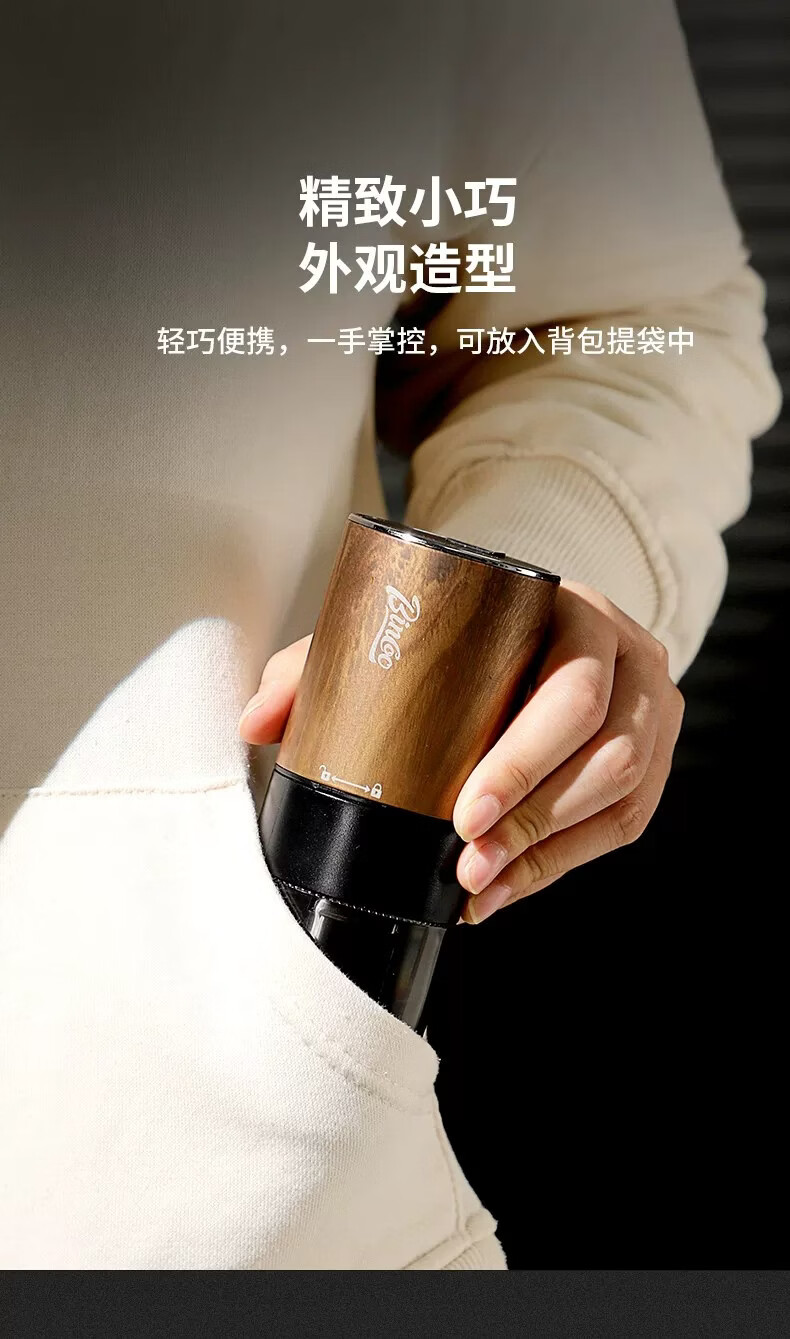 Bincoo电动磨豆机镀钛钢芯咖啡豆研磨器小型便携木纹磨粉咖啡器具 电动木纹磨豆机【镀钛五角磨芯】
