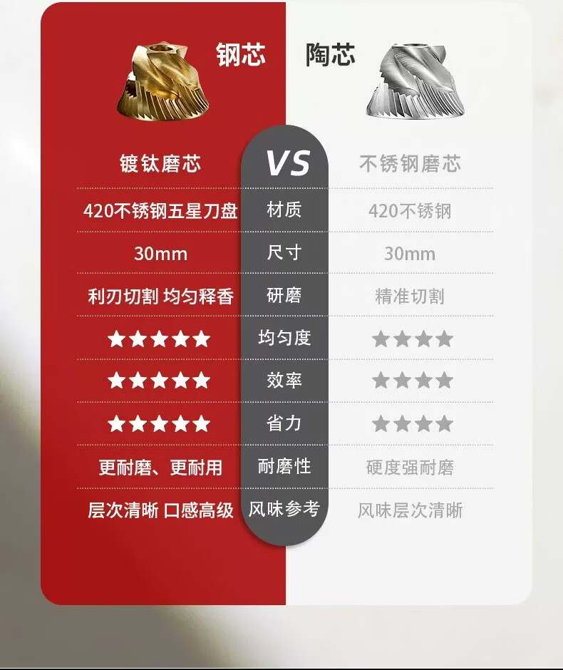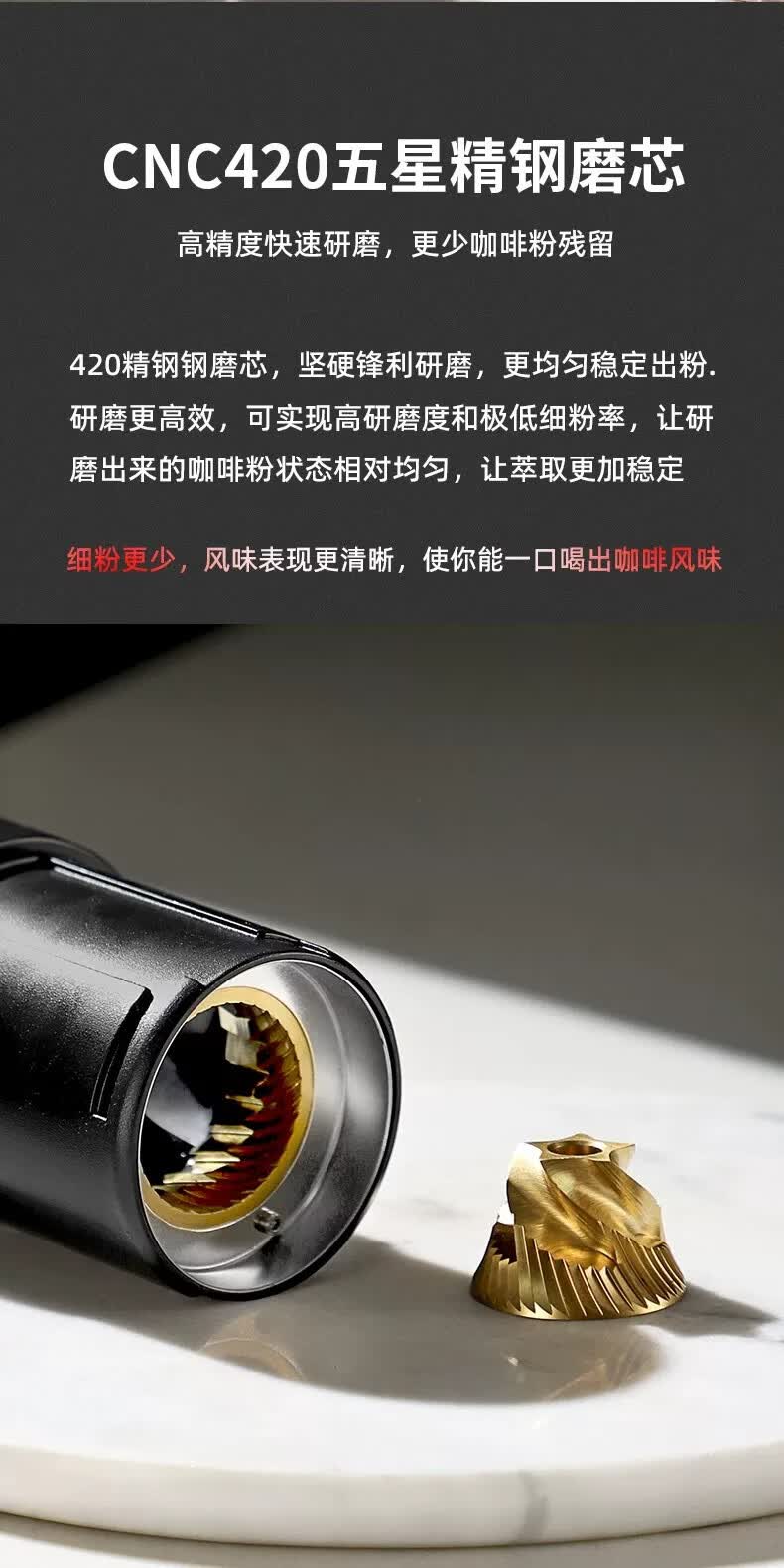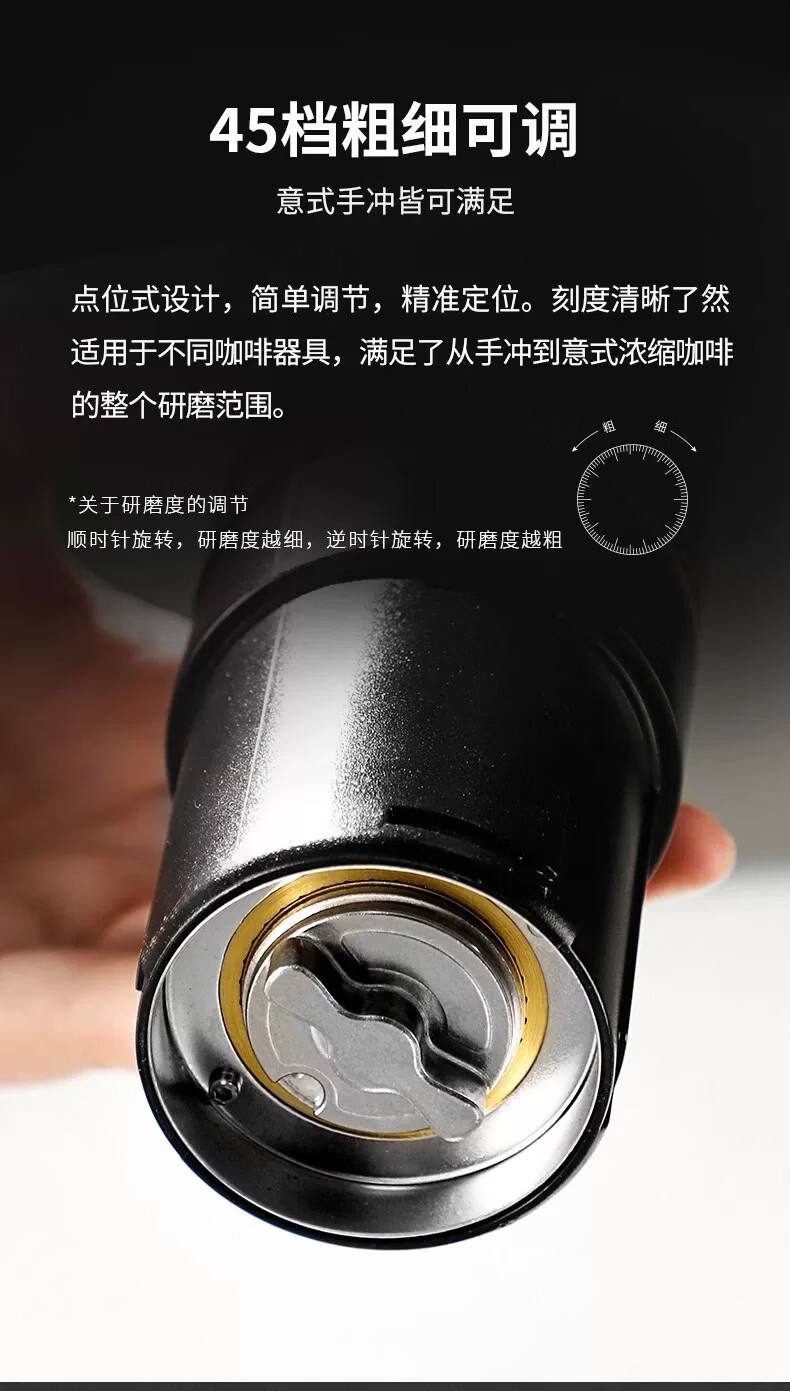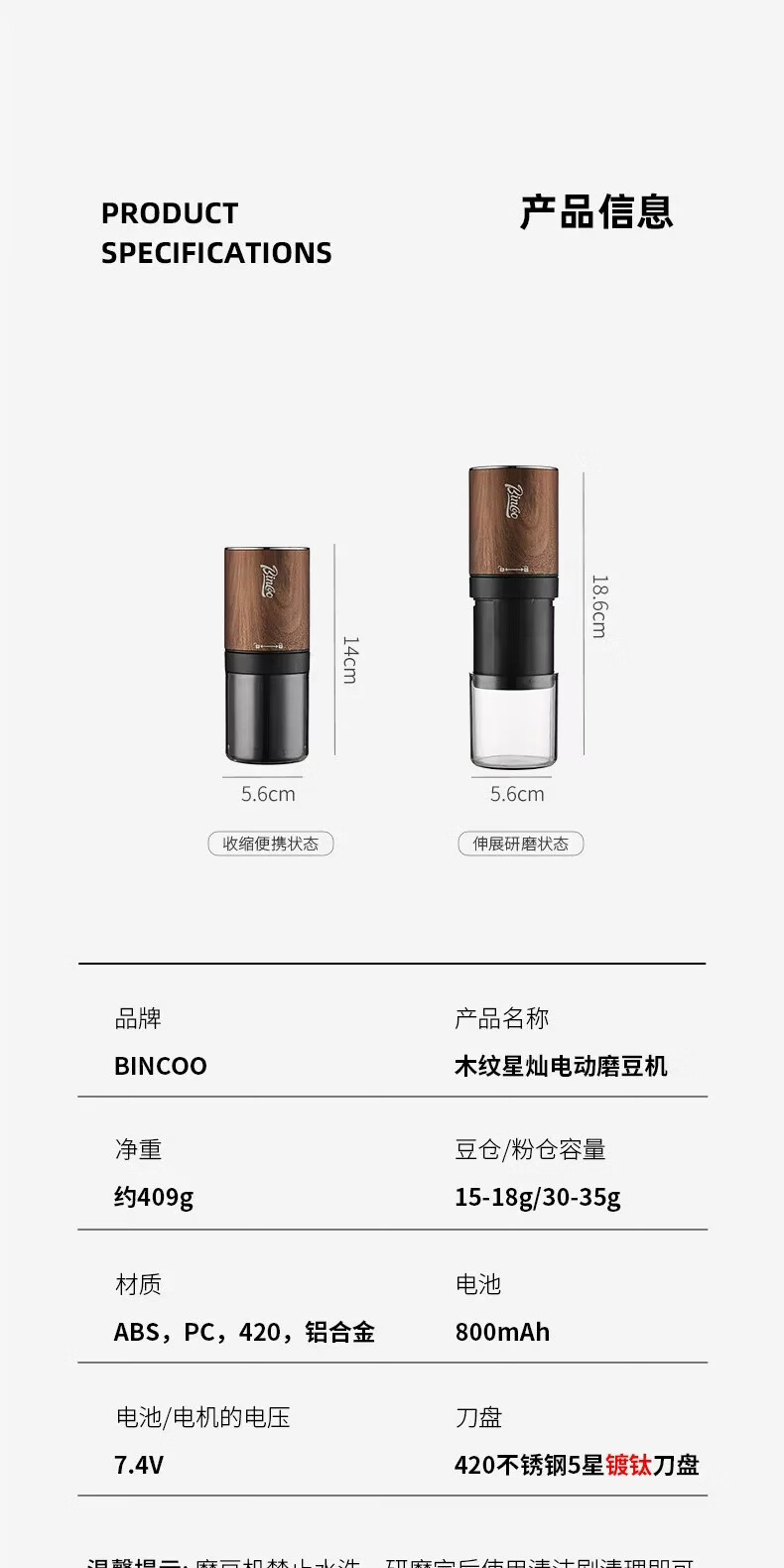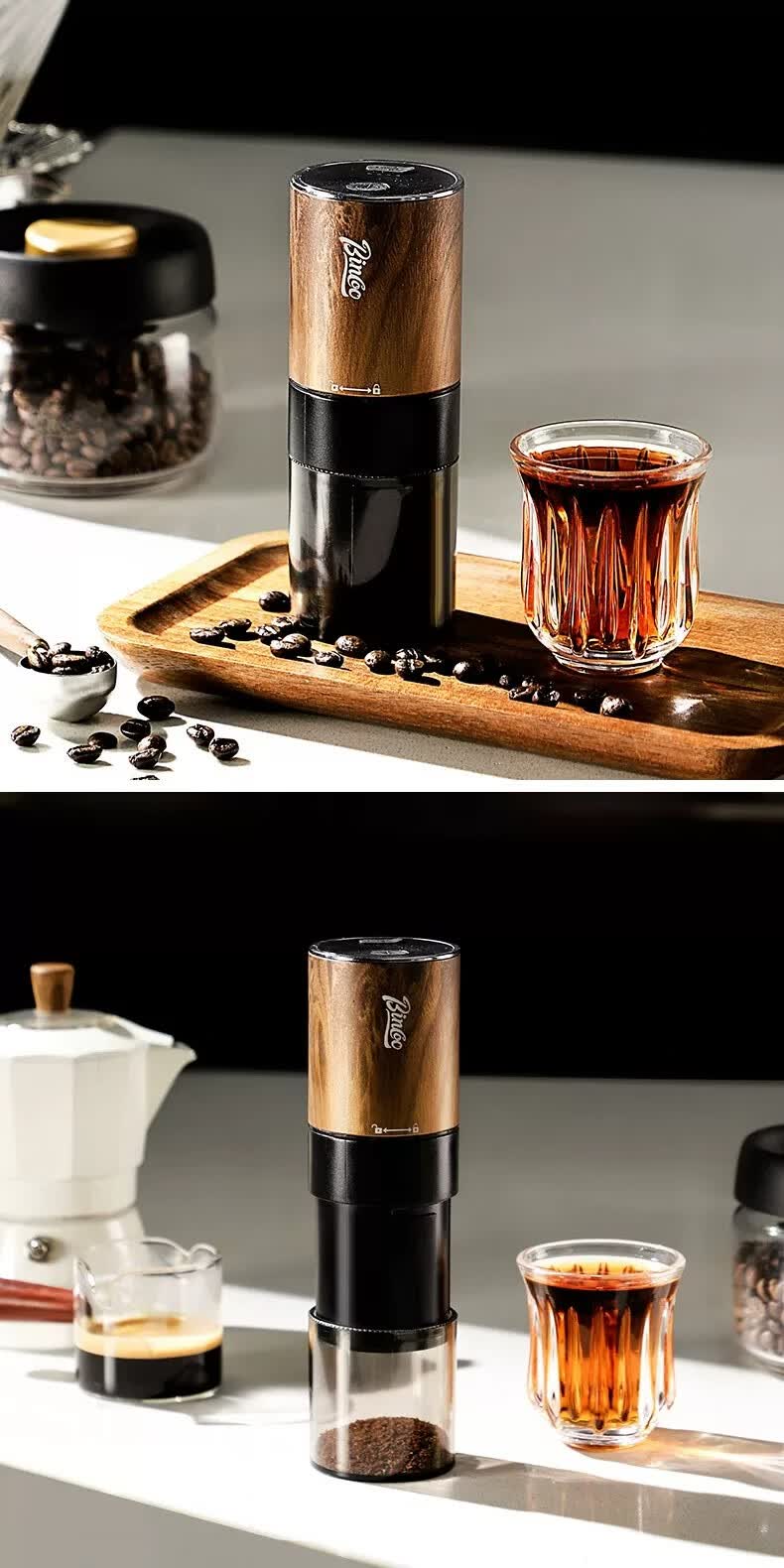 Bincoo电动磨豆机镀钛钢芯咖啡豆研磨器小型便携木纹磨粉咖啡器具 电动木纹磨豆机【镀钛五角磨芯】