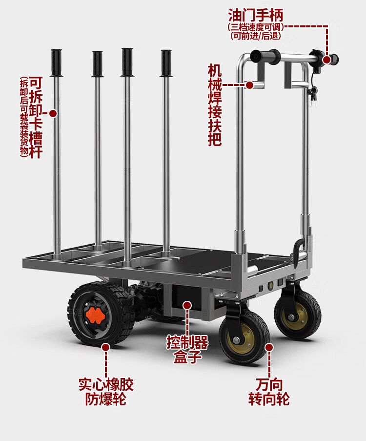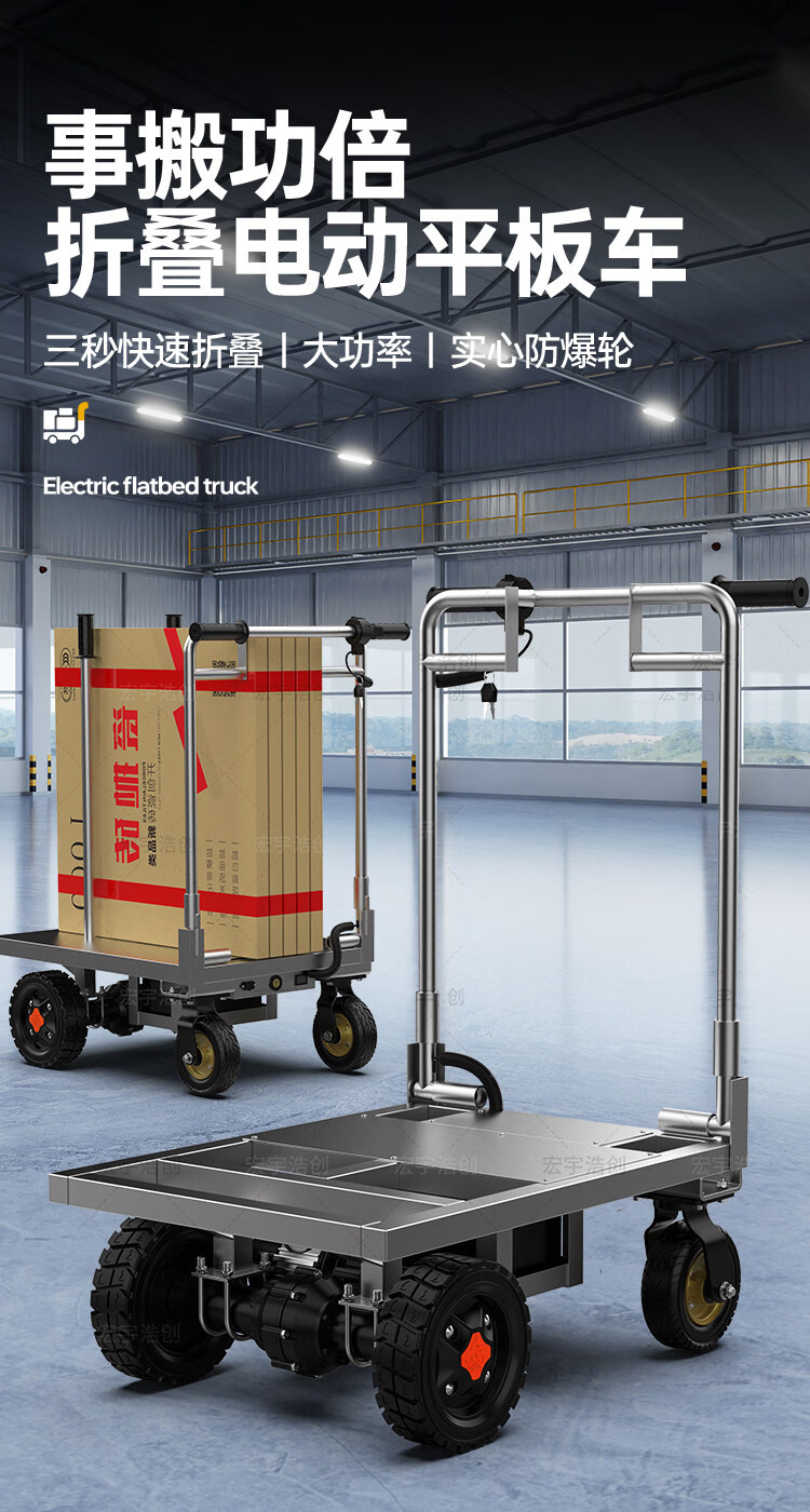 羽安电动平板手推车 便携折叠平板车 拉瓷砖水泥搬运车入户拉货小推车 风机赠品【任何不满联系】