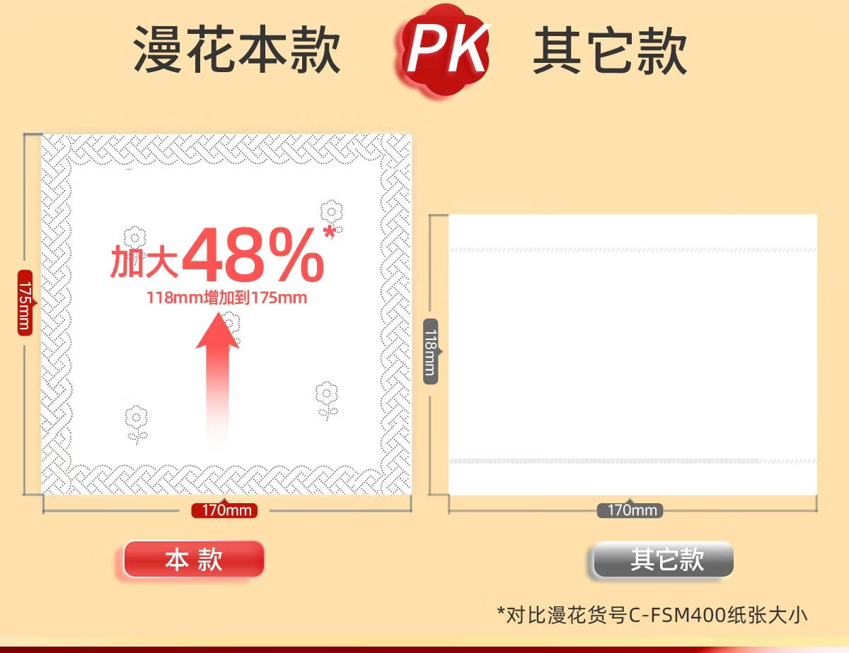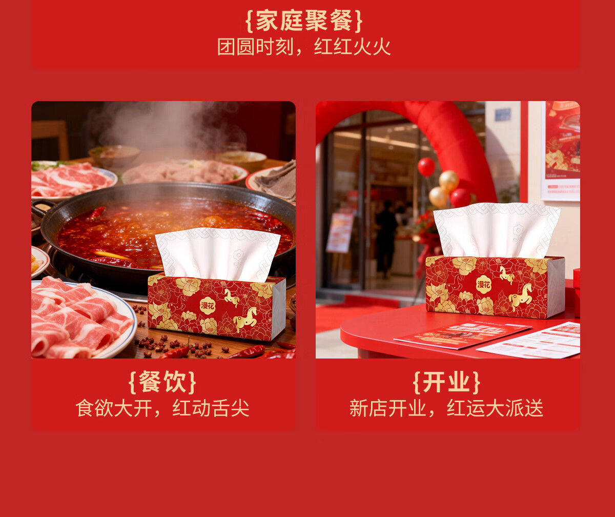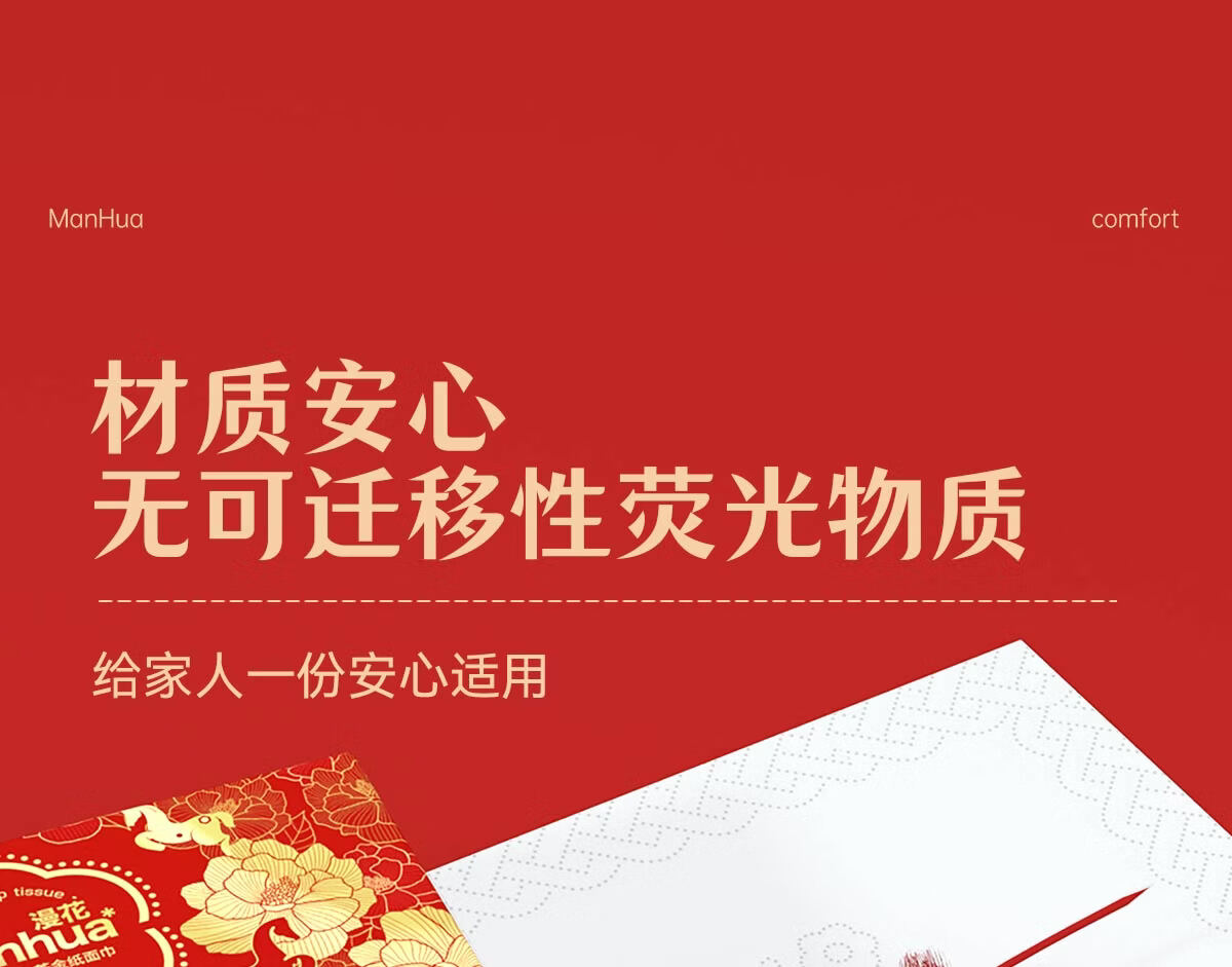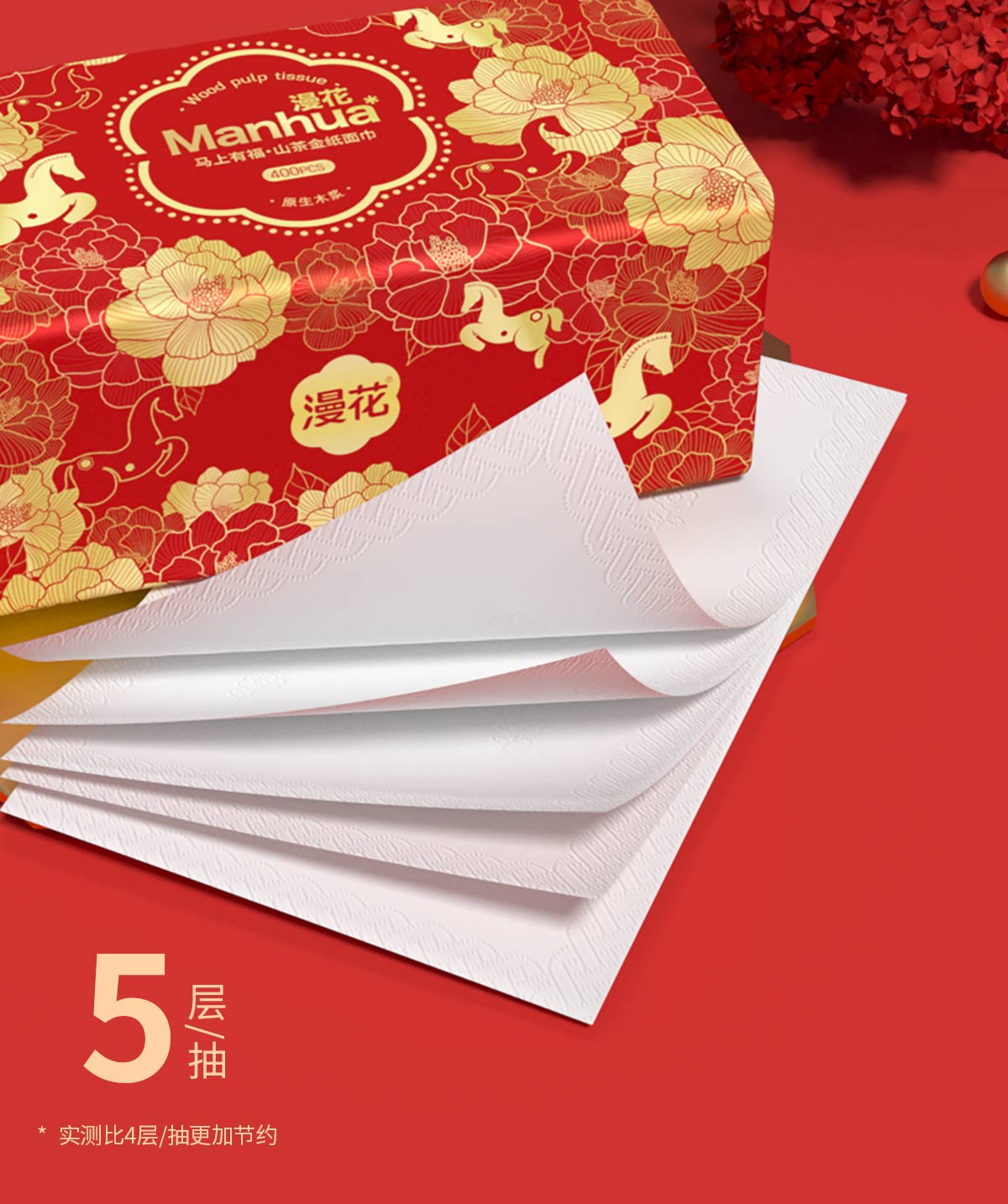 漫花新年款大包纸巾抽纸400张家用面巾纸加厚加大餐巾纸实惠装 【山茶金系列】 5层 400张*18包