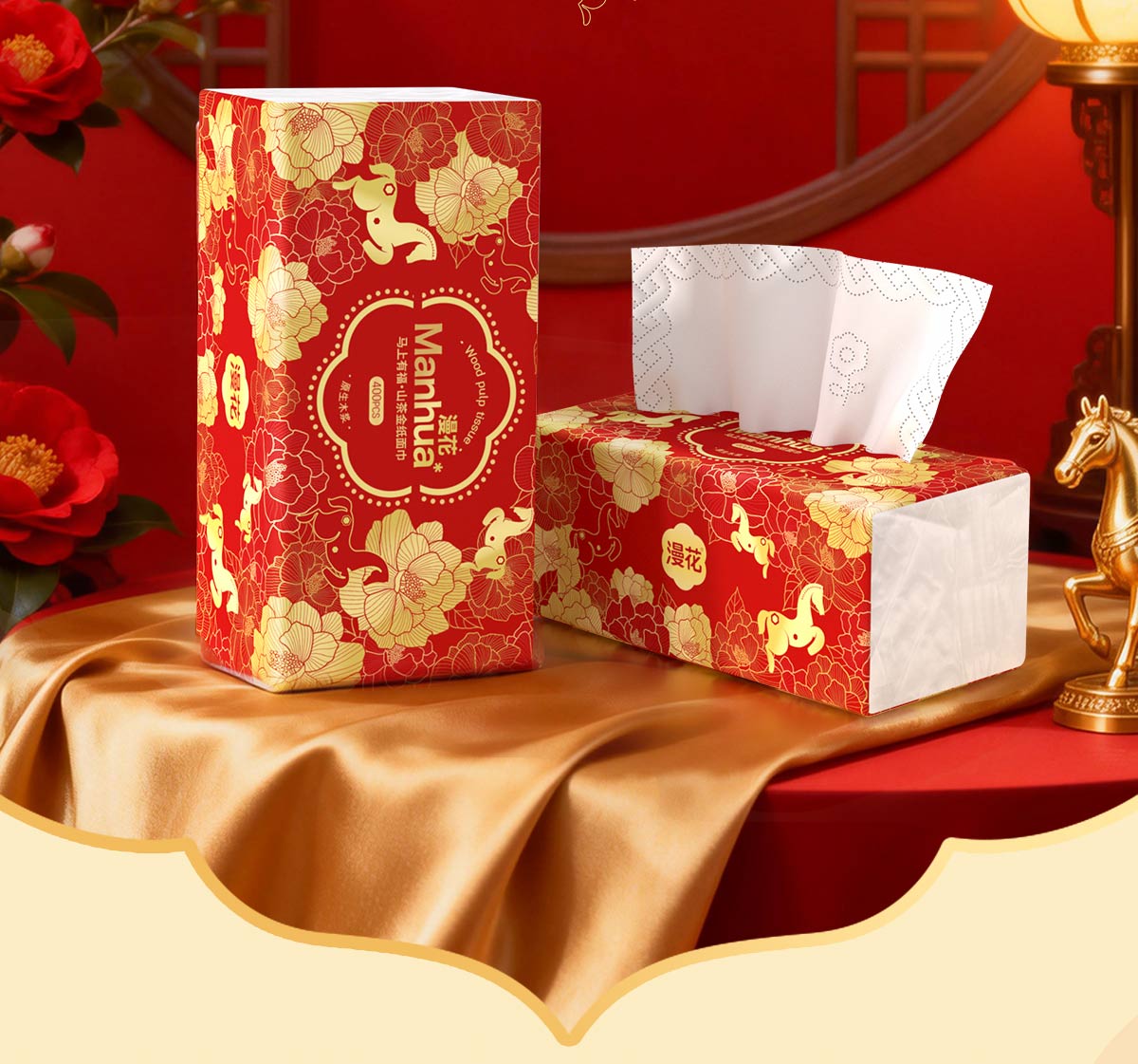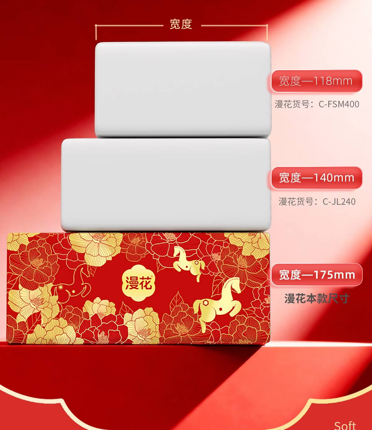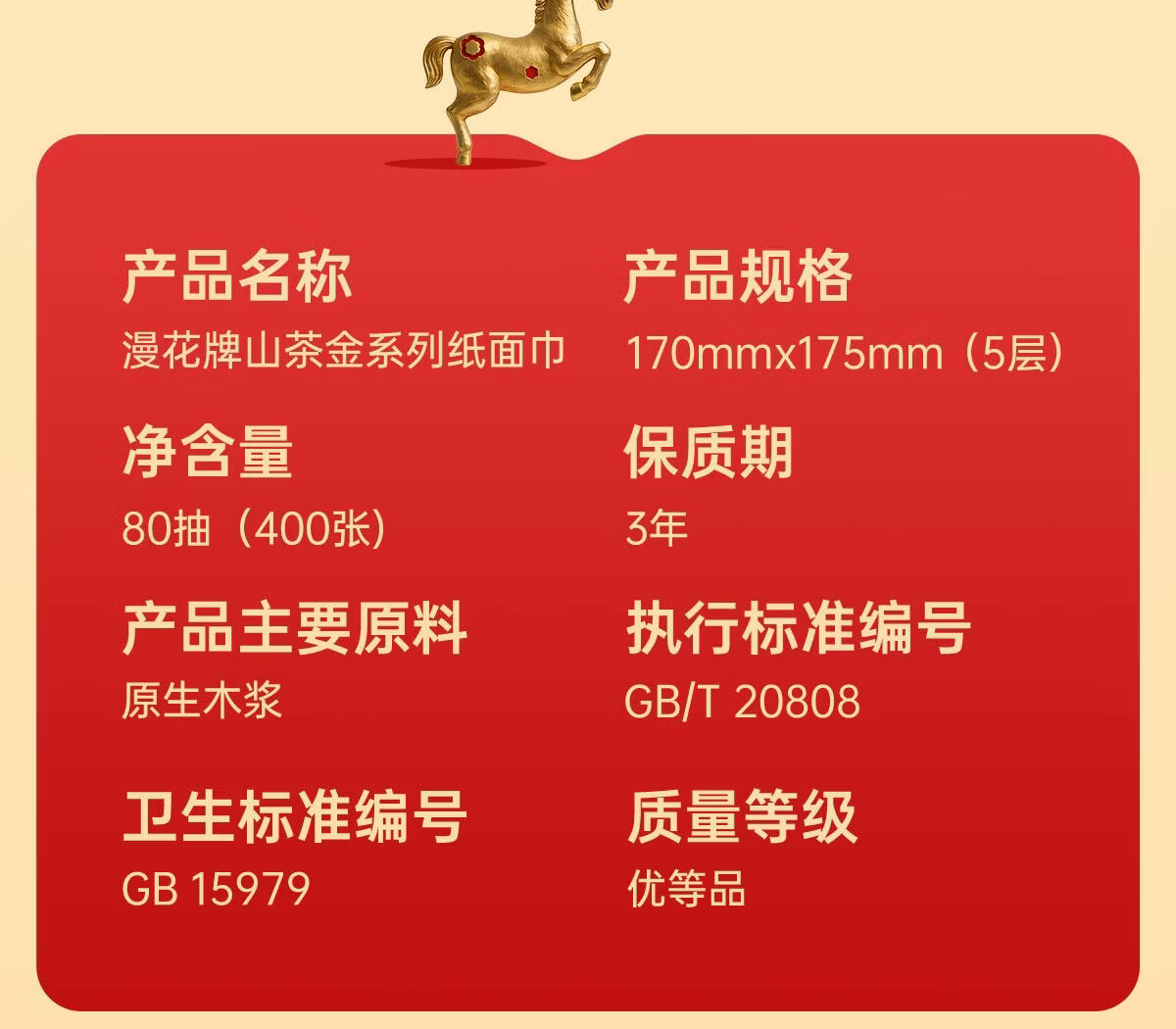 漫花新年款大包纸巾抽纸400张家用面巾纸加厚加大餐巾纸实惠装 【山茶金系列】 5层 400张*18包