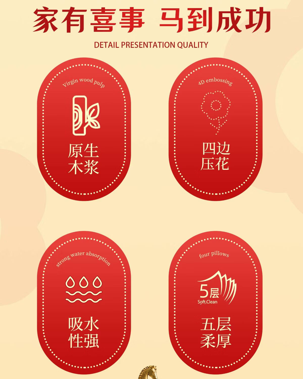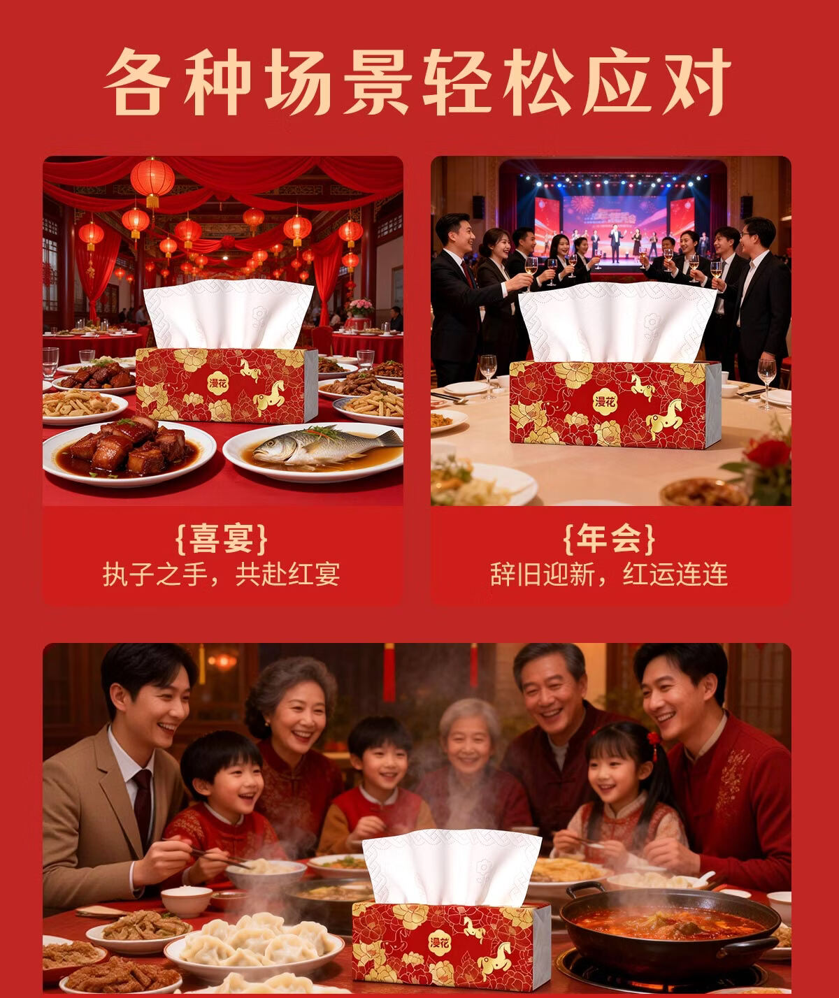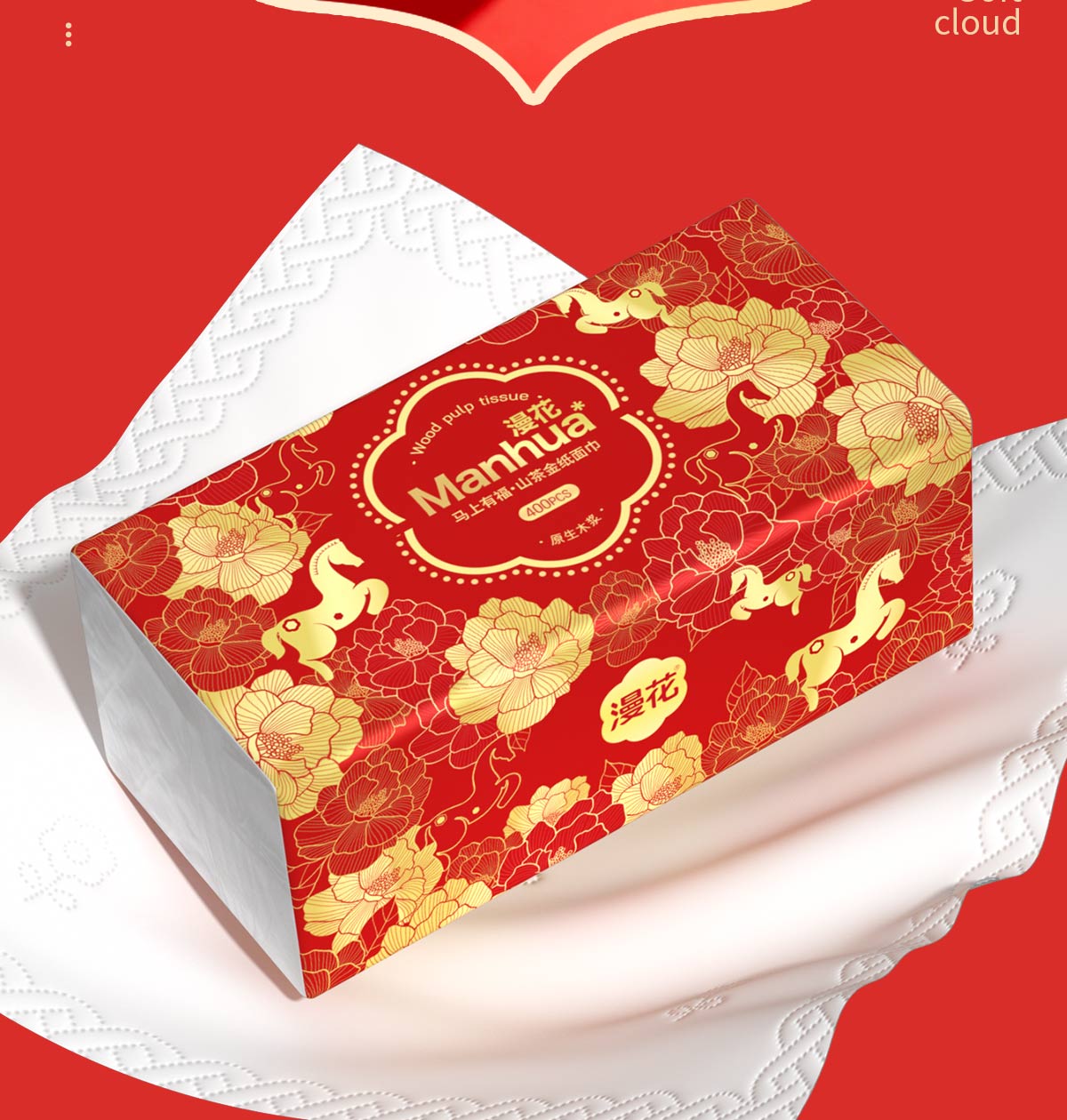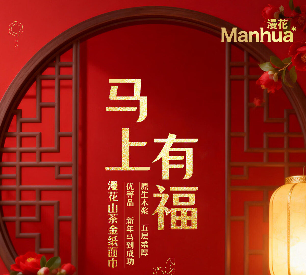漫花新年款大包纸巾抽纸400张家用面巾纸加厚加大餐巾纸实惠装 【山茶金系列】 5层 400张*18包