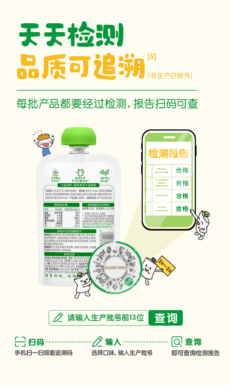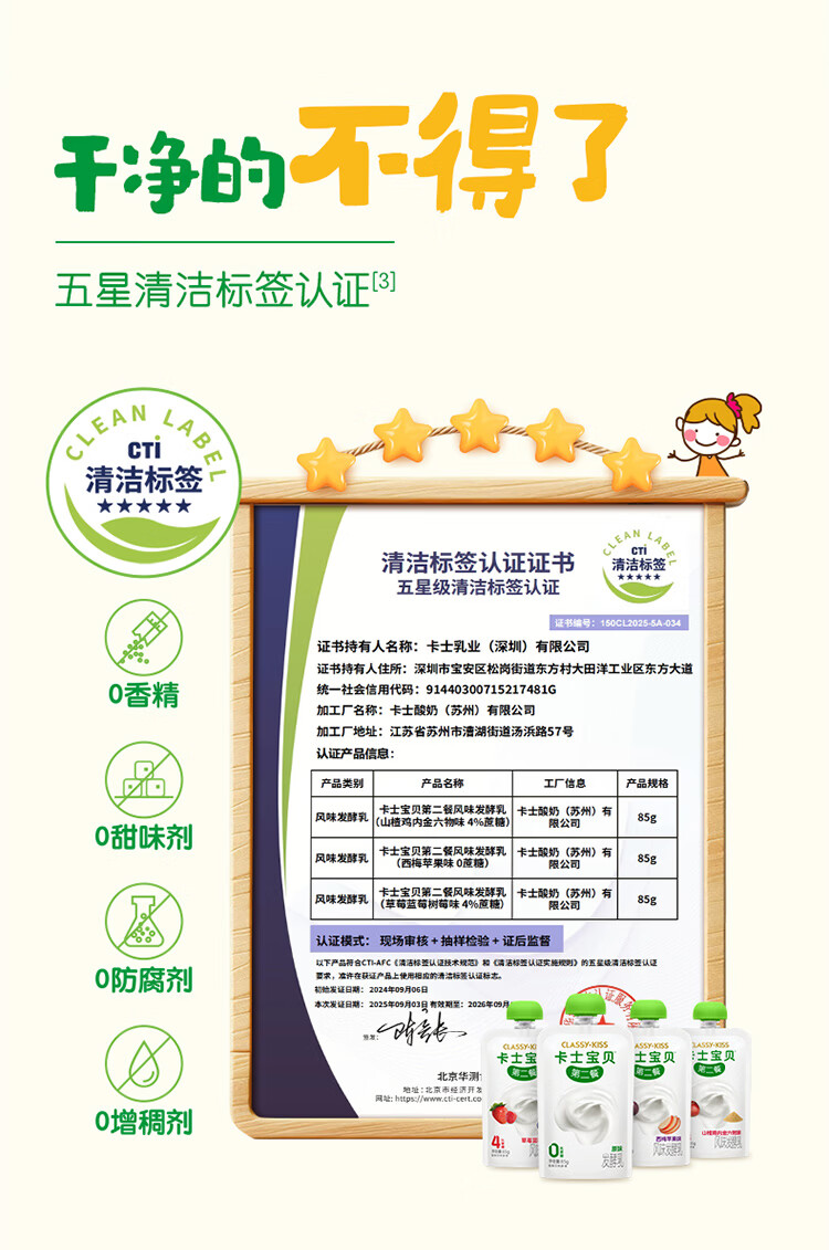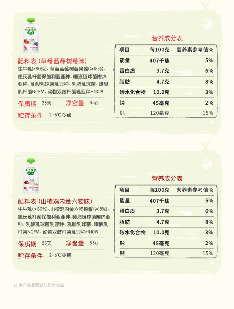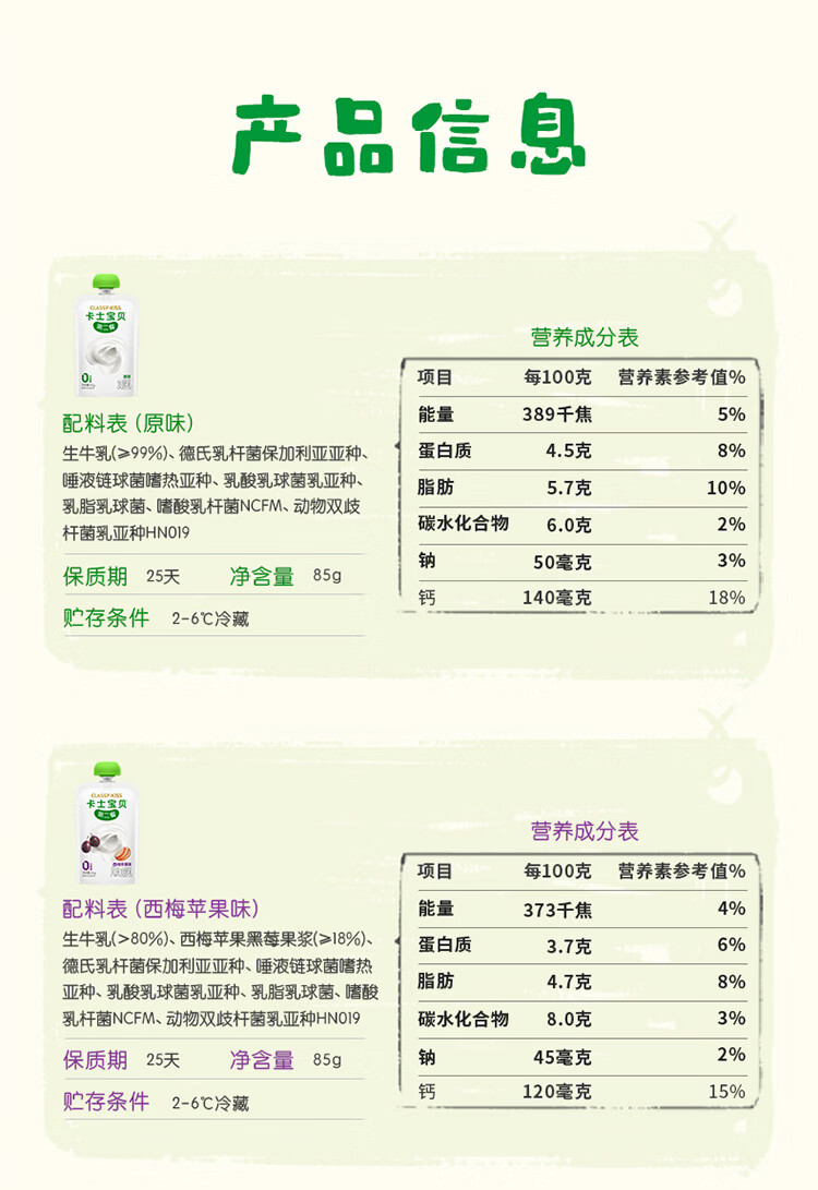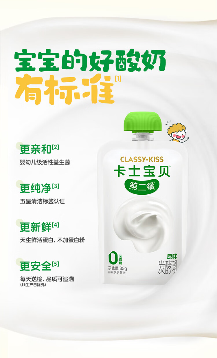 卡士宝贝第二餐酸奶(单袋85g)风味发酵乳 宝宝酸奶 原味无蔗糖*11袋