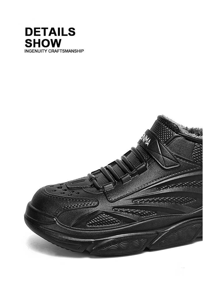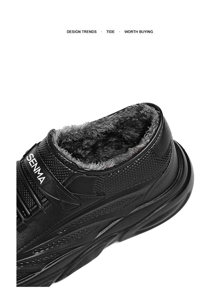森馬雪地靴男鞋冬季加绒加厚保暖棉鞋男士户外软底耐磨东北防滑大棉靴 黑色【基础款】 39-40 【现货秒发】