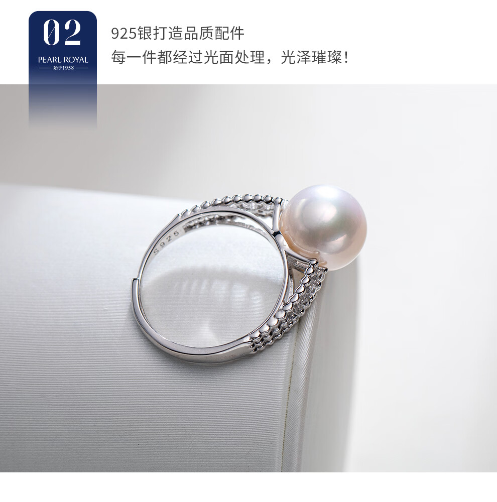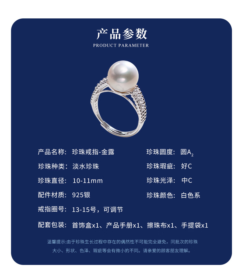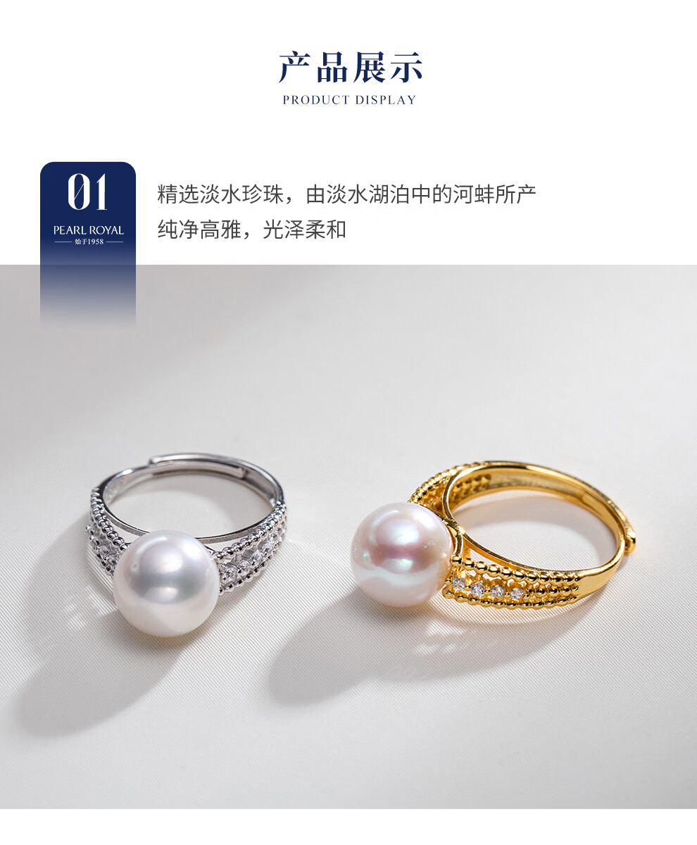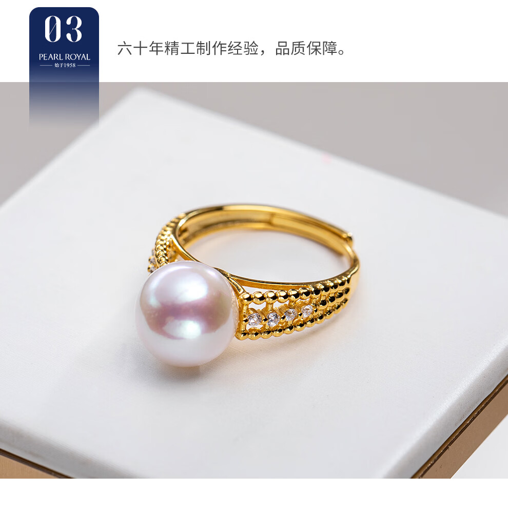 南珠宫金露925银淡水珍珠戒指强光圆形情人节礼物送老婆C-CYAJ011SD-JB 金色款 10.0-11.0mm