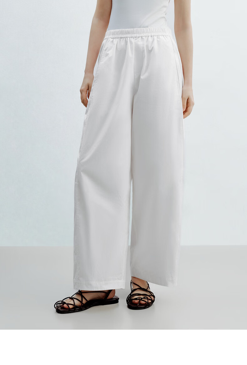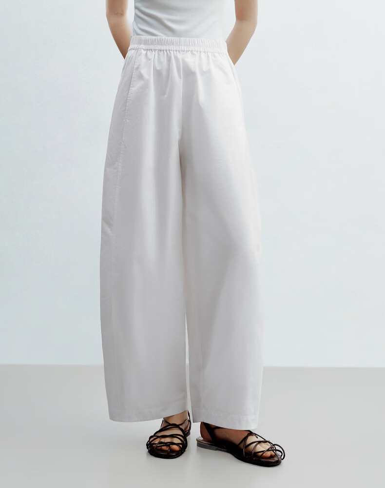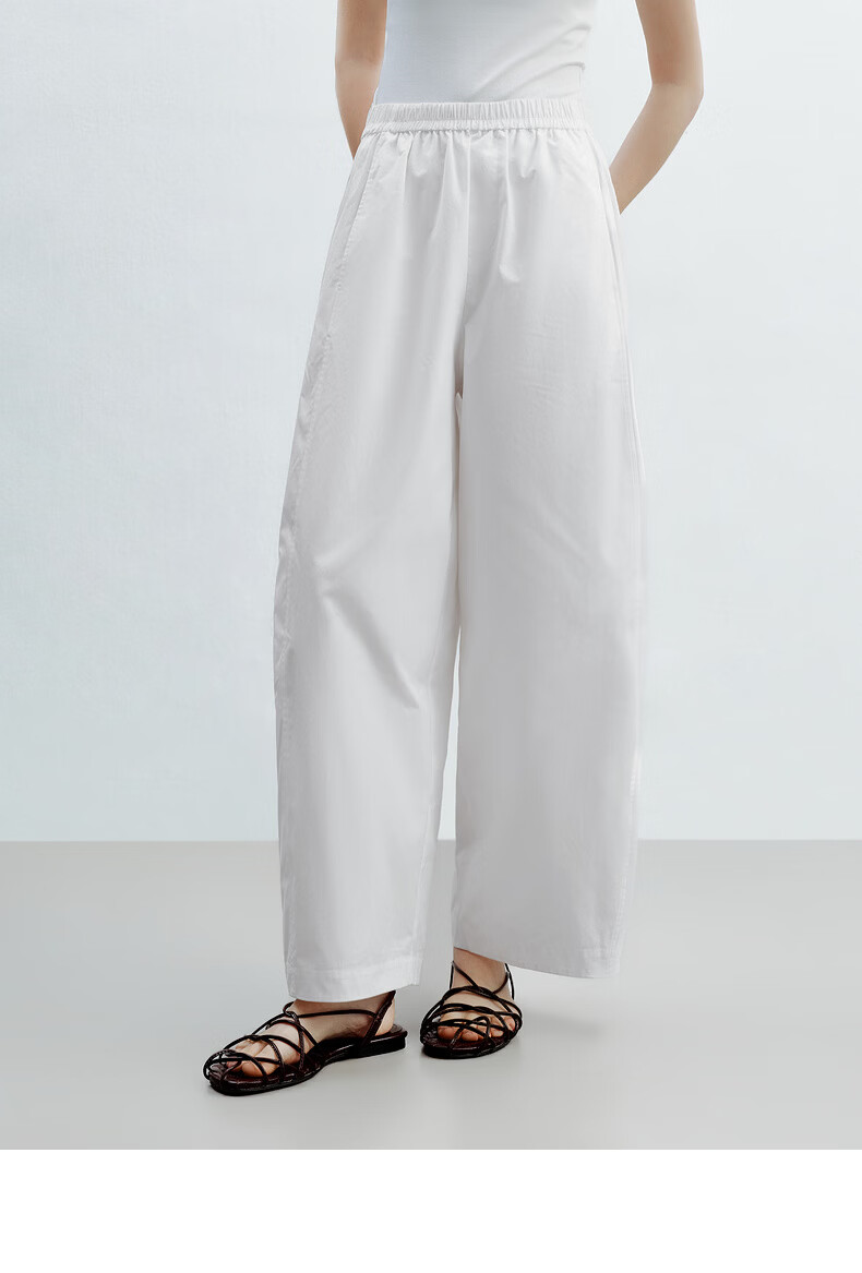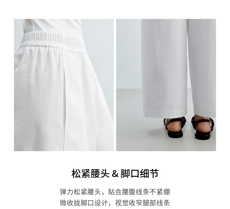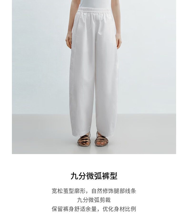 H's白色九分气球裤女26年夏季新款高级设计感全棉宽松阔腿直筒裤子 本白 S