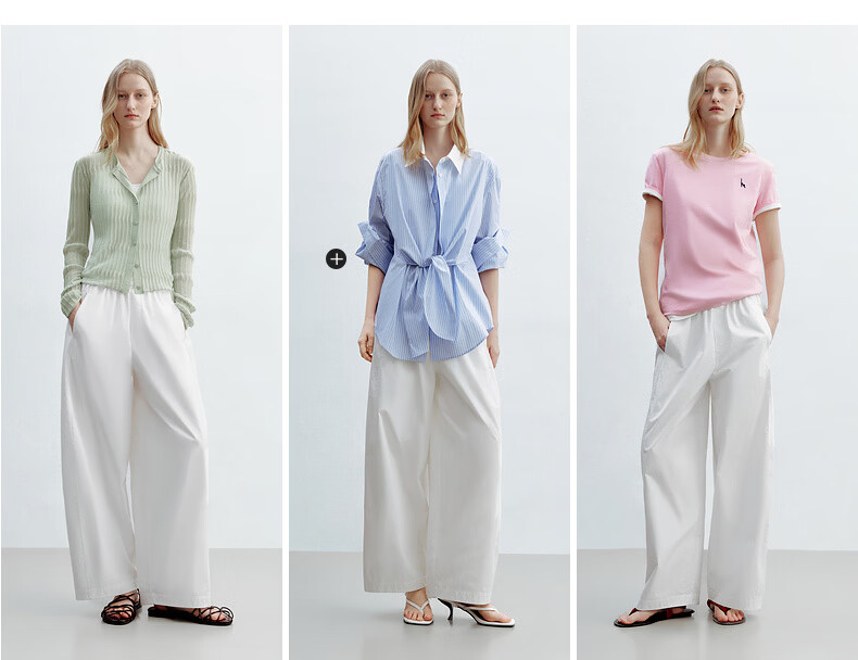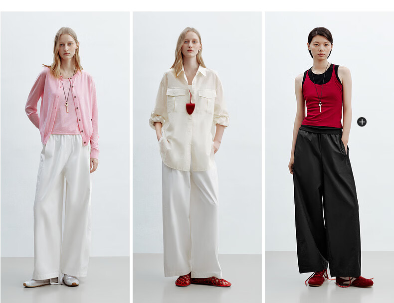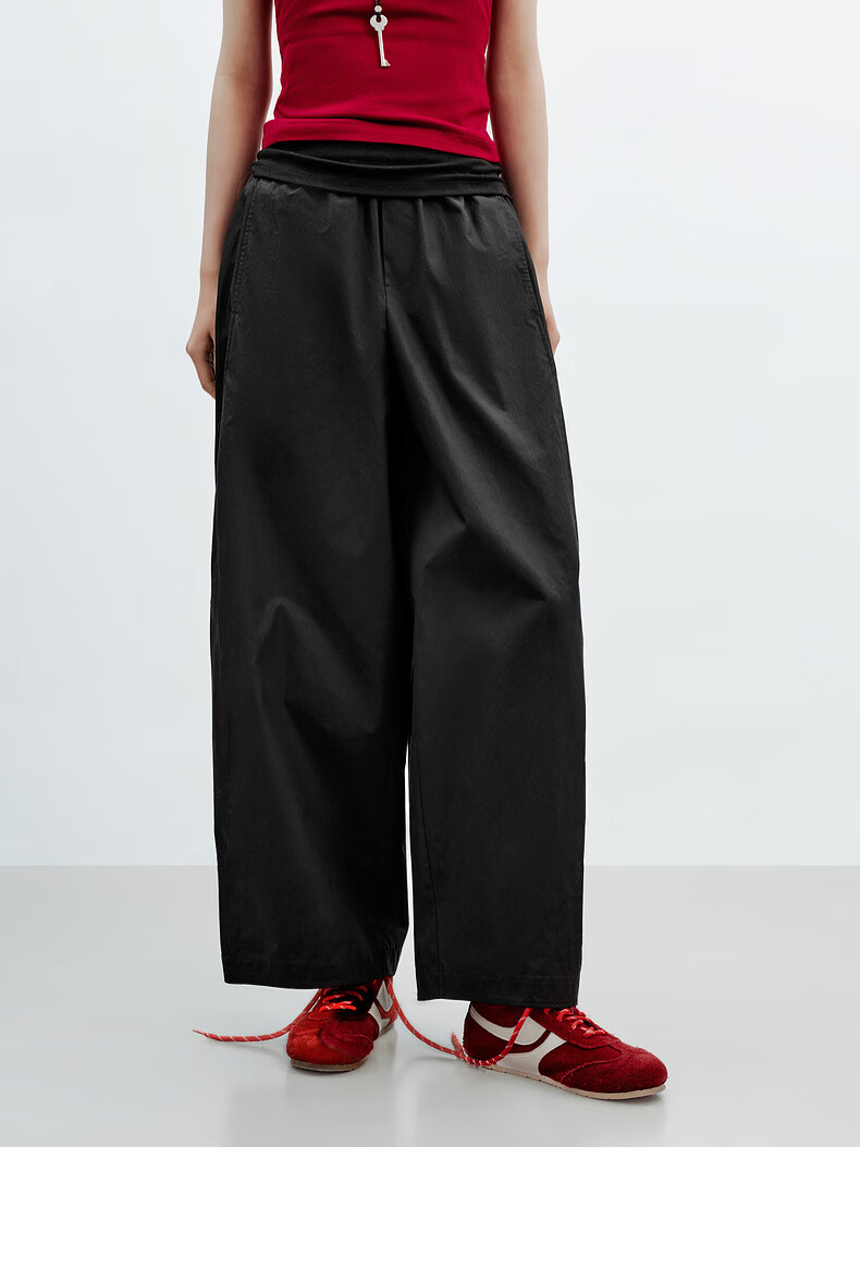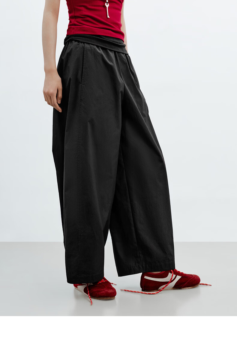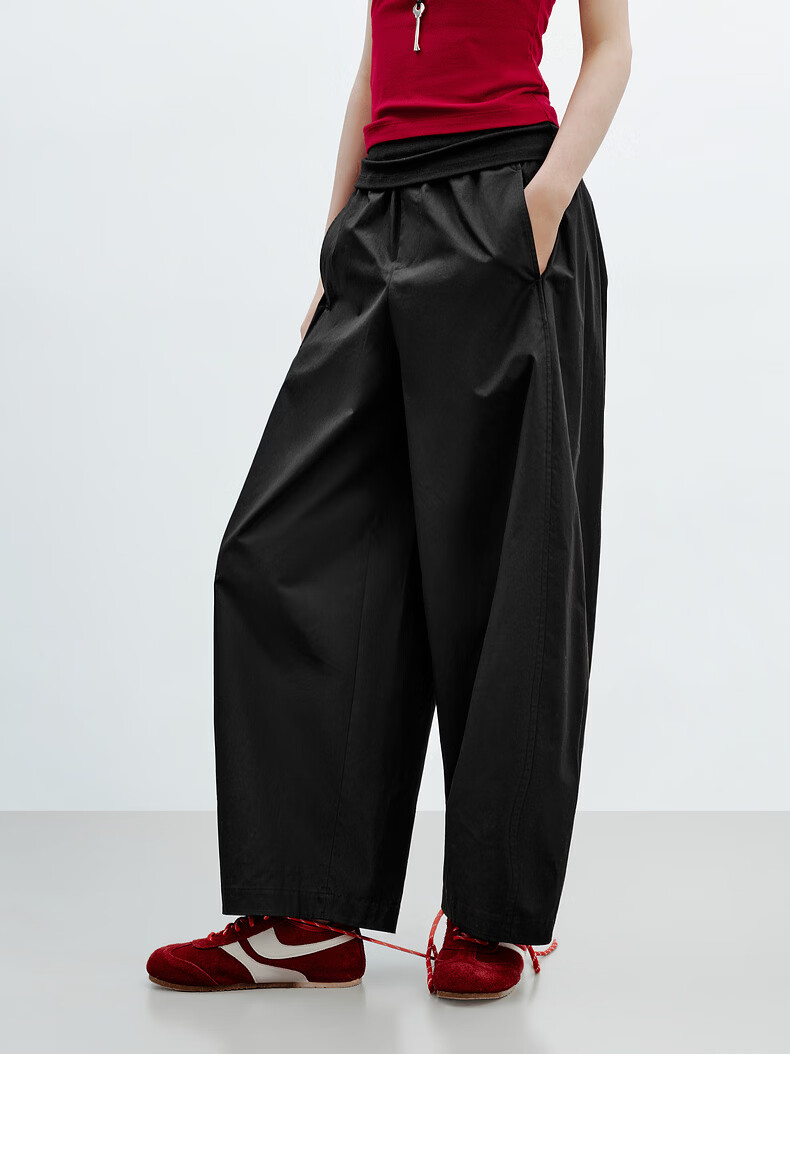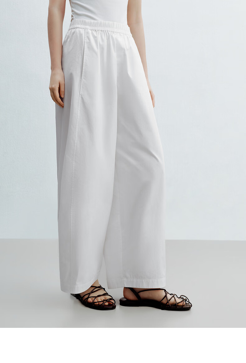 H's白色九分气球裤女26年夏季新款高级设计感全棉宽松阔腿直筒裤子 本白 S