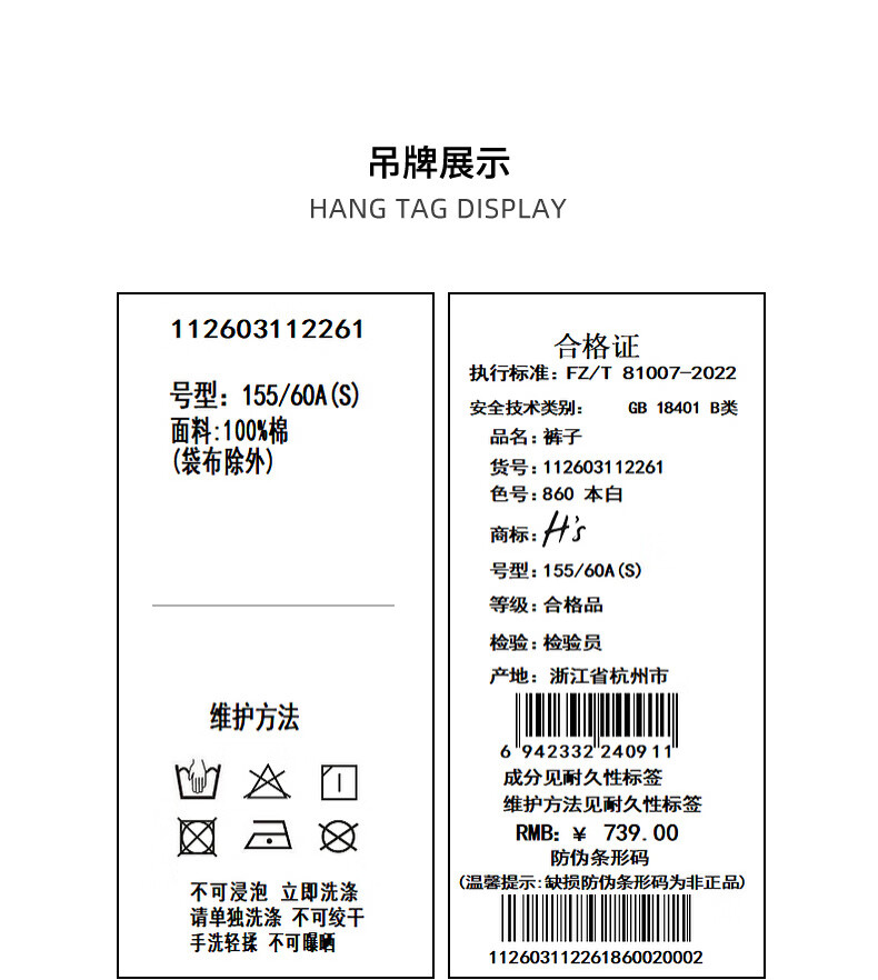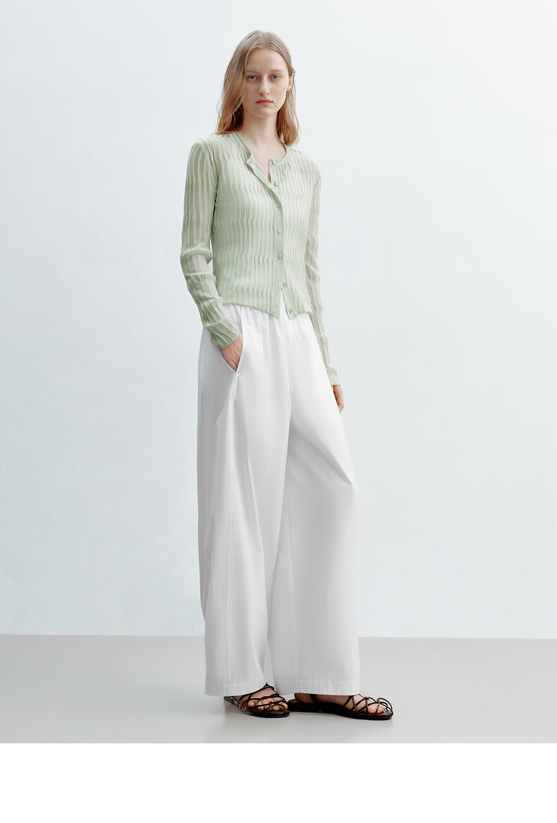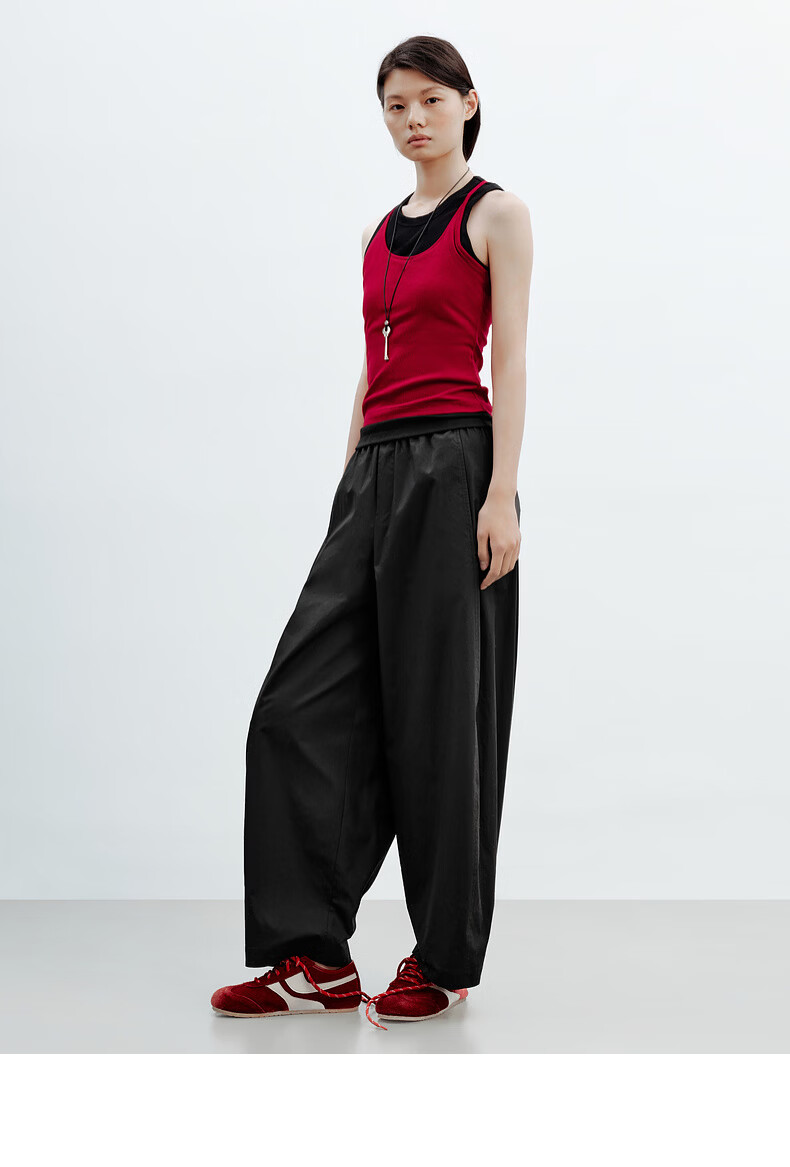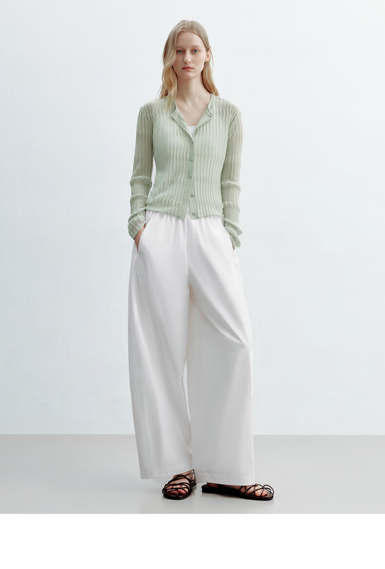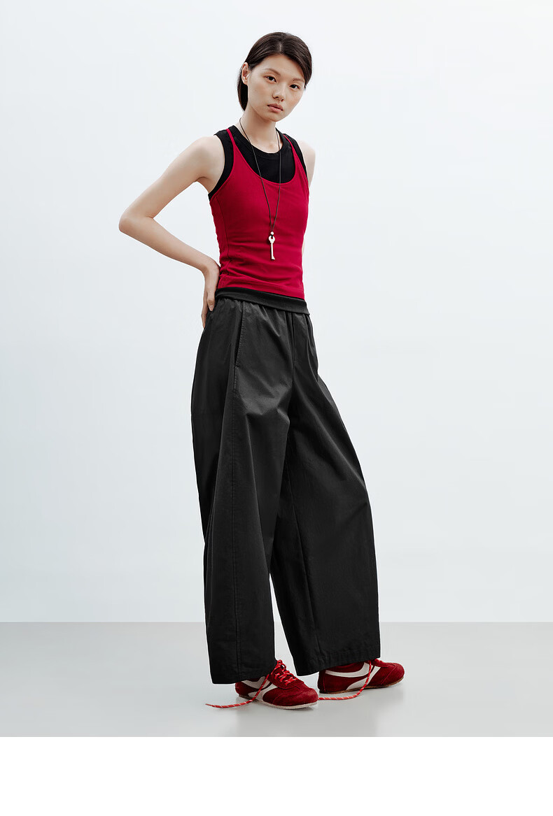 H's白色九分气球裤女26年夏季新款高级设计感全棉宽松阔腿直筒裤子 本白 S