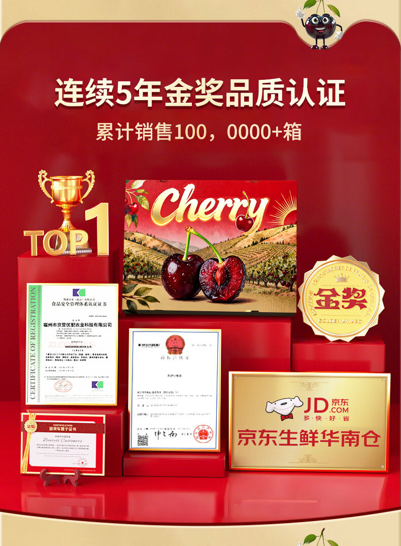 四叔公果蔬金冠车厘子5kg原箱【JD多地次日达】智利樱桃4j3j年货节水果礼盒 2.5kg(净重) 【超值原箱-80%选*】礼盒 【巨满足|爽吃爆汁】3J 巨无霸 30-32mm