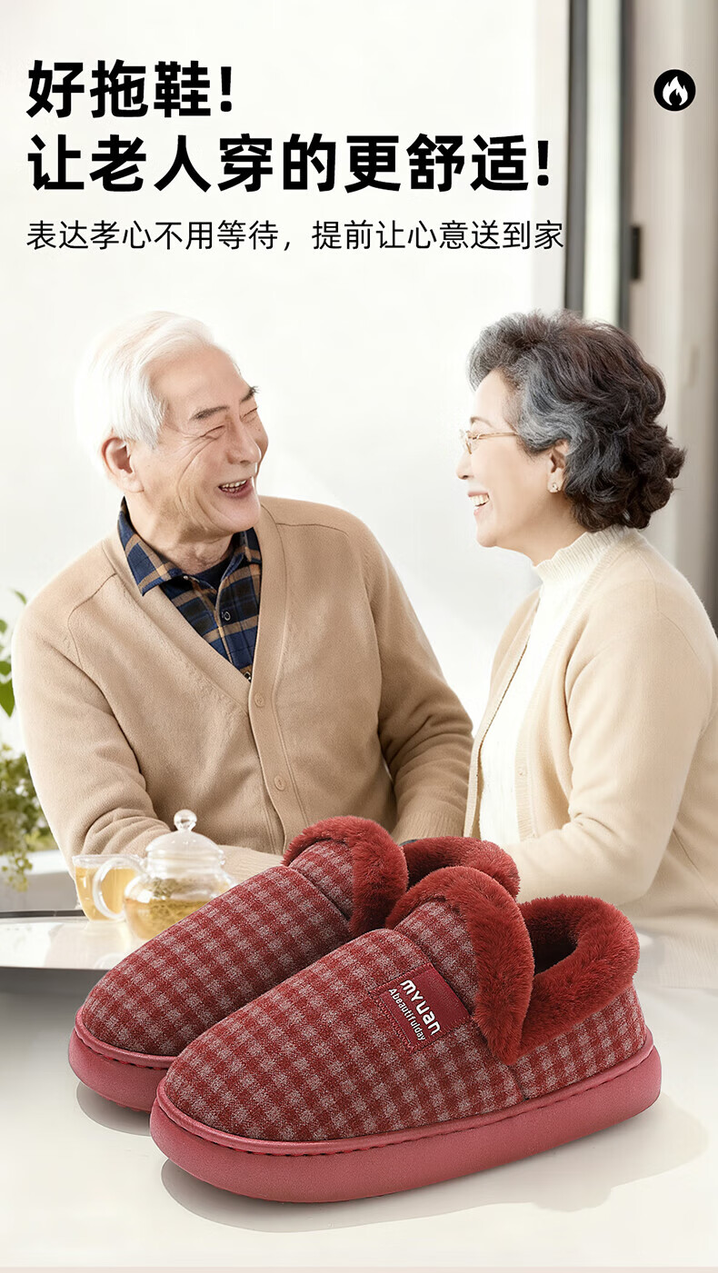 FZT老年人包跟棉拖鞋女士冬季2025新款室内家居毛绒保暖外穿大码棉鞋 灰色【包跟保暖】 送长辈要被夸 46-47 【标准码】内长27.5cm