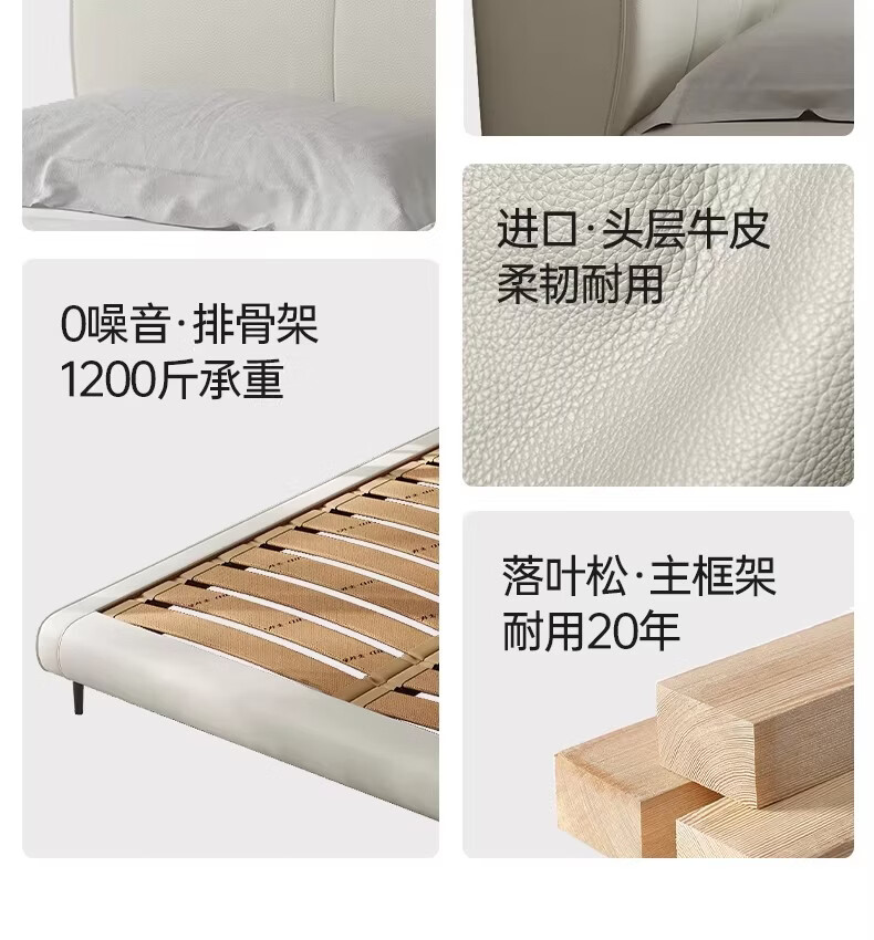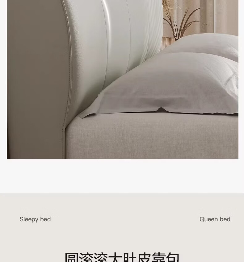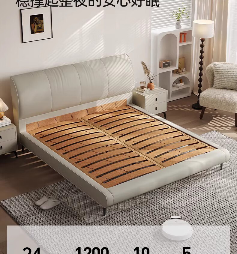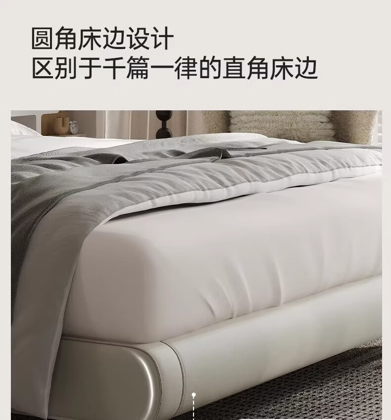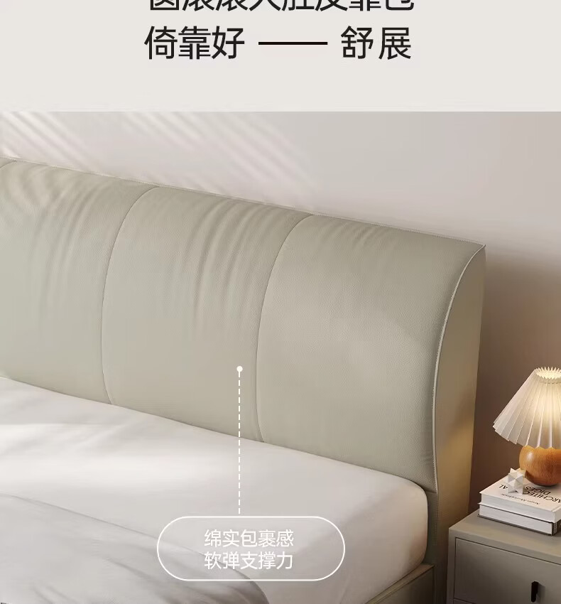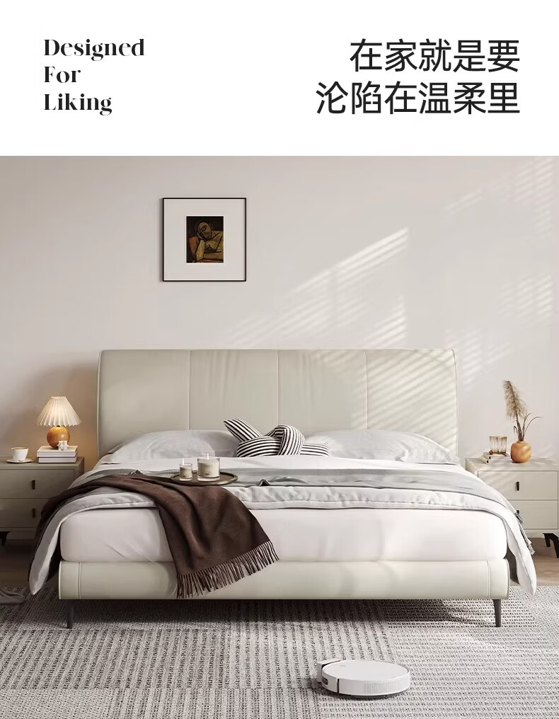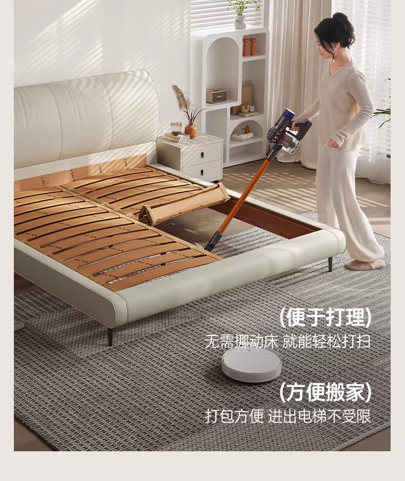 CBD家居现代简约真皮软包床双人主卧大床奶油风婚床头层牛皮甜心悬浮 甜心悬浮-奶油白单床 卷帘排骨架 1500*2000