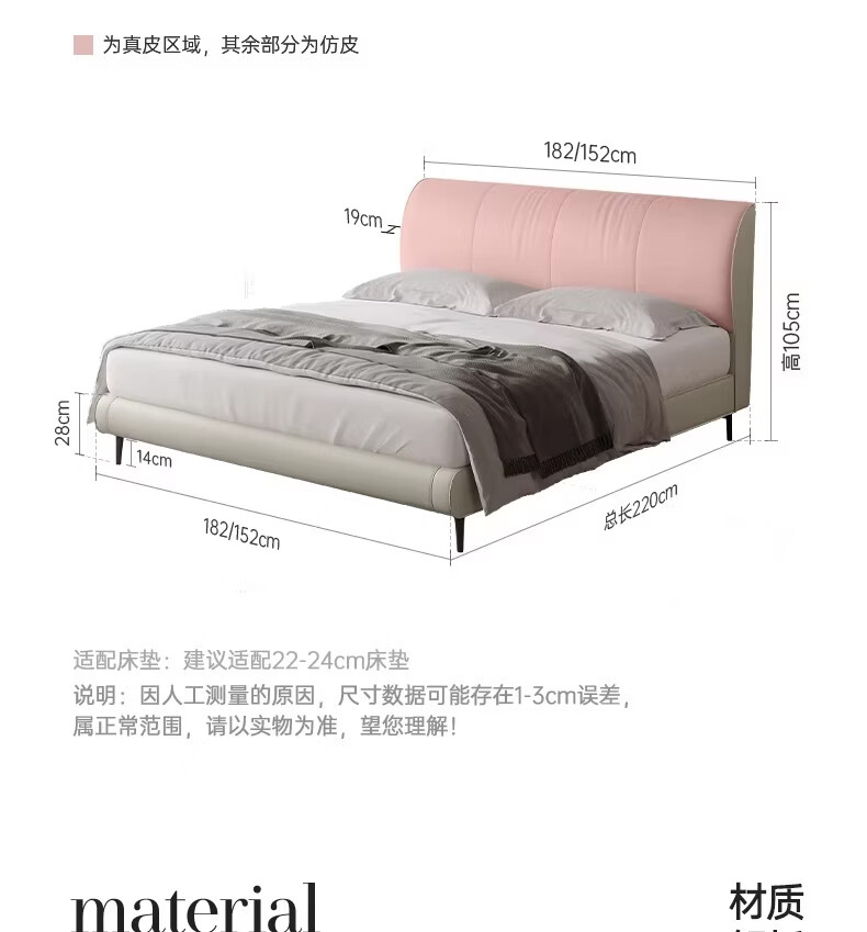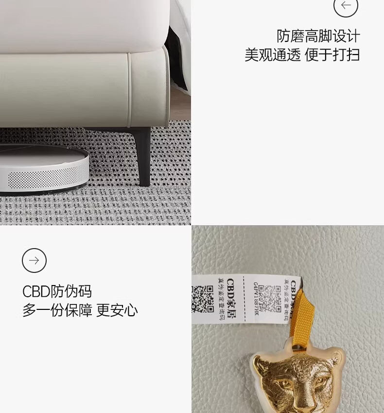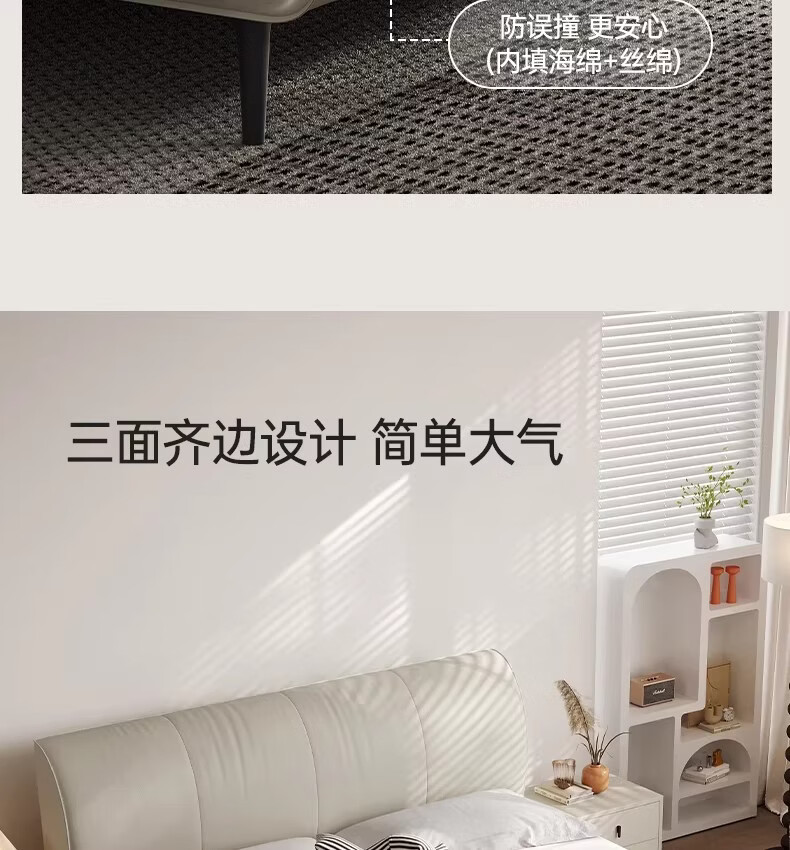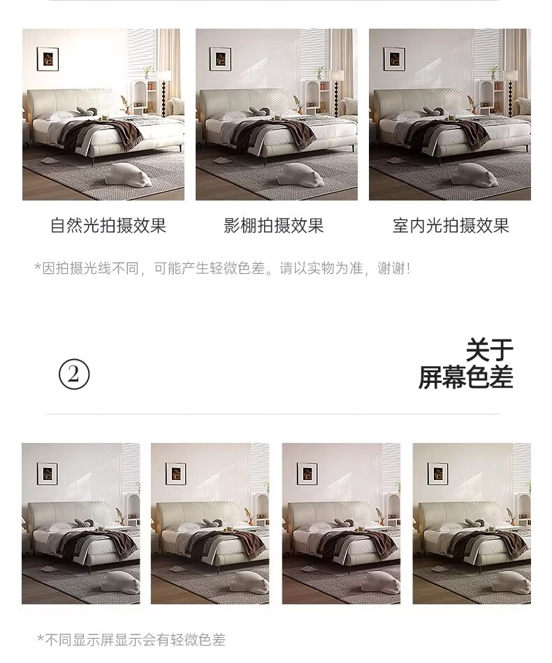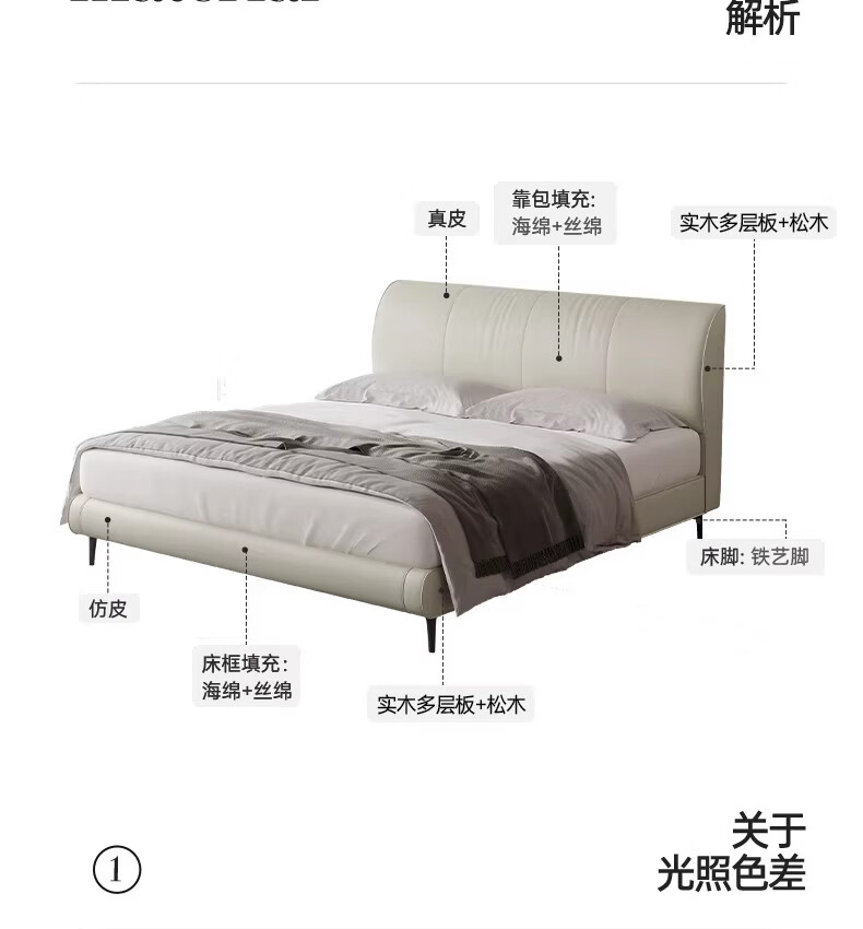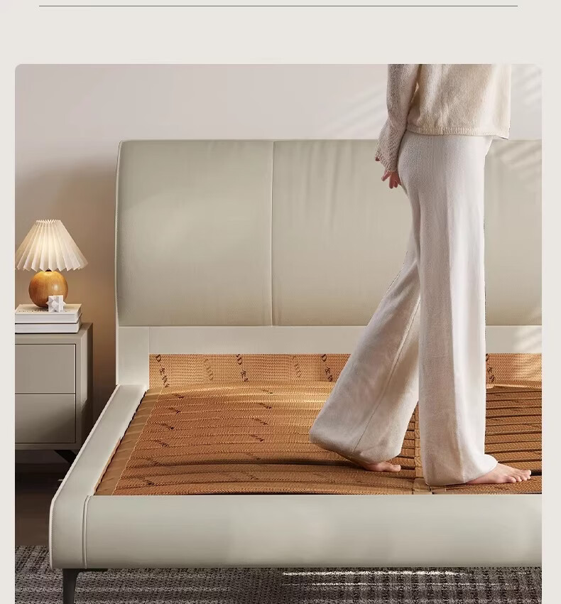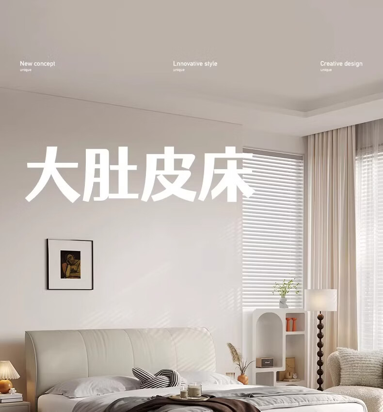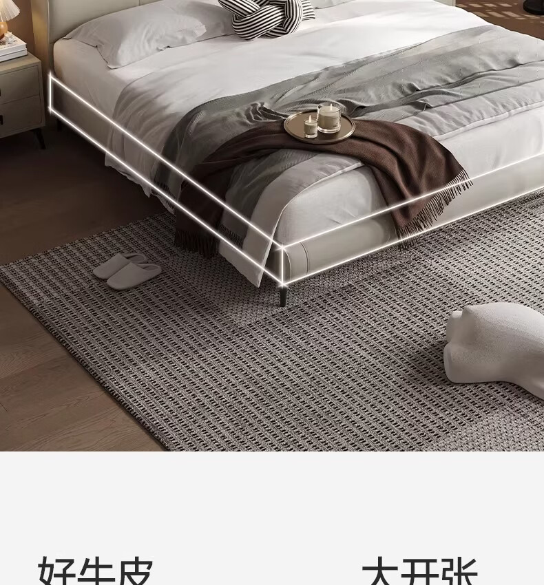 CBD家居现代简约真皮软包床双人主卧大床奶油风婚床头层牛皮甜心悬浮 甜心悬浮-奶油白单床 卷帘排骨架 1500*2000