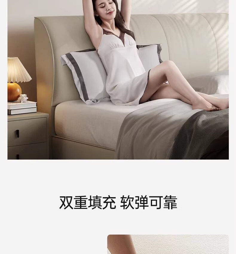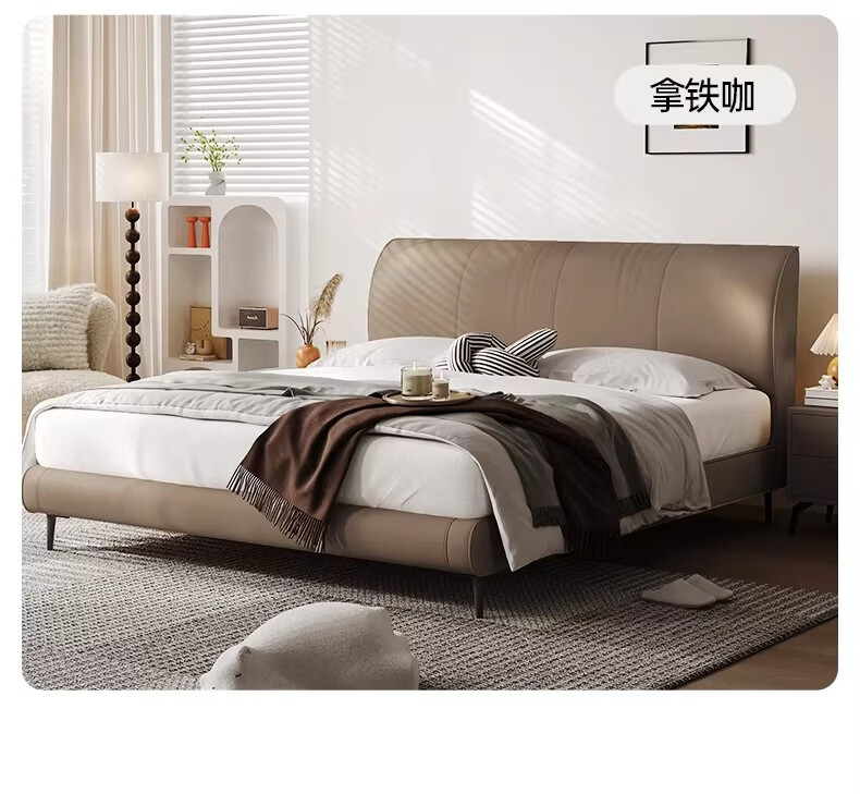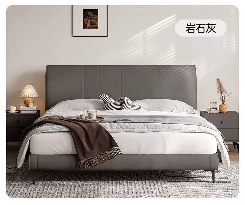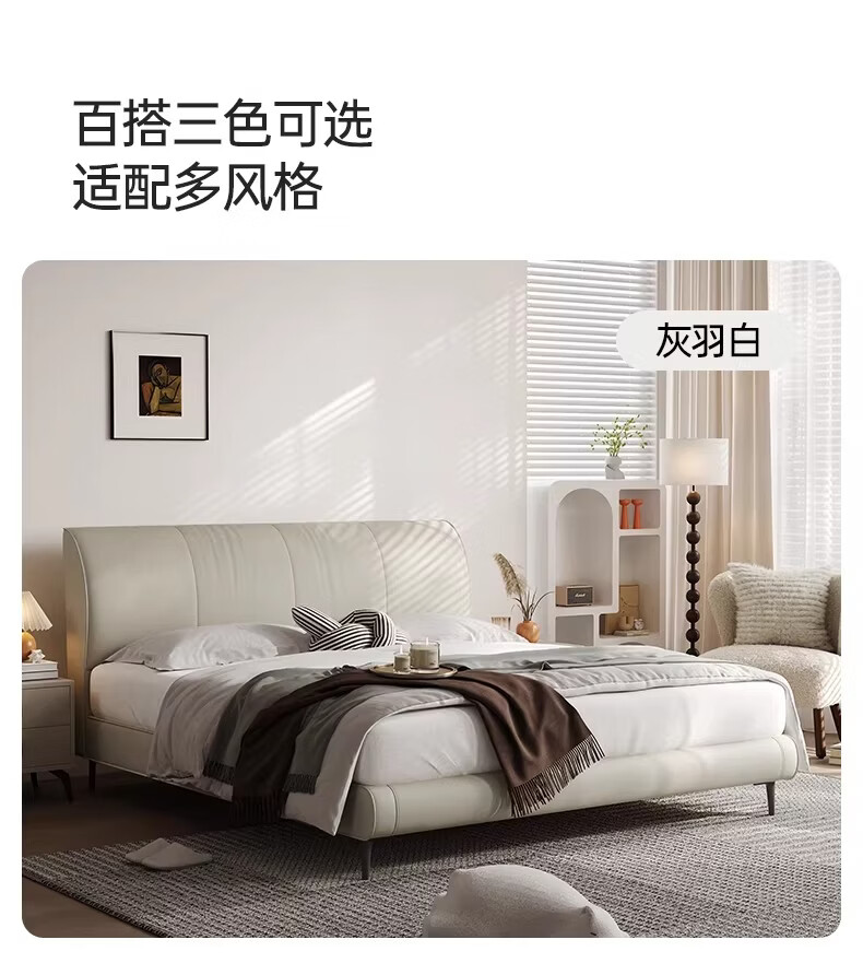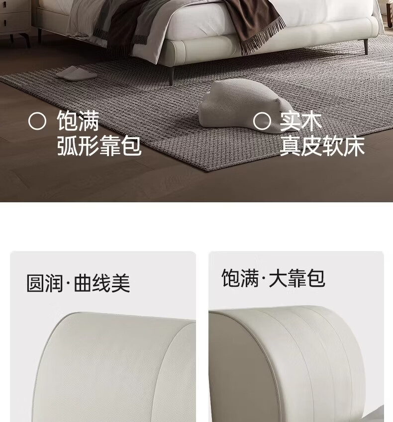 CBD家居现代简约真皮床主卧皮床婚床软包轻奢床 大肚皮 (灰羽白)皮床+乳胶床垫 1500*2000