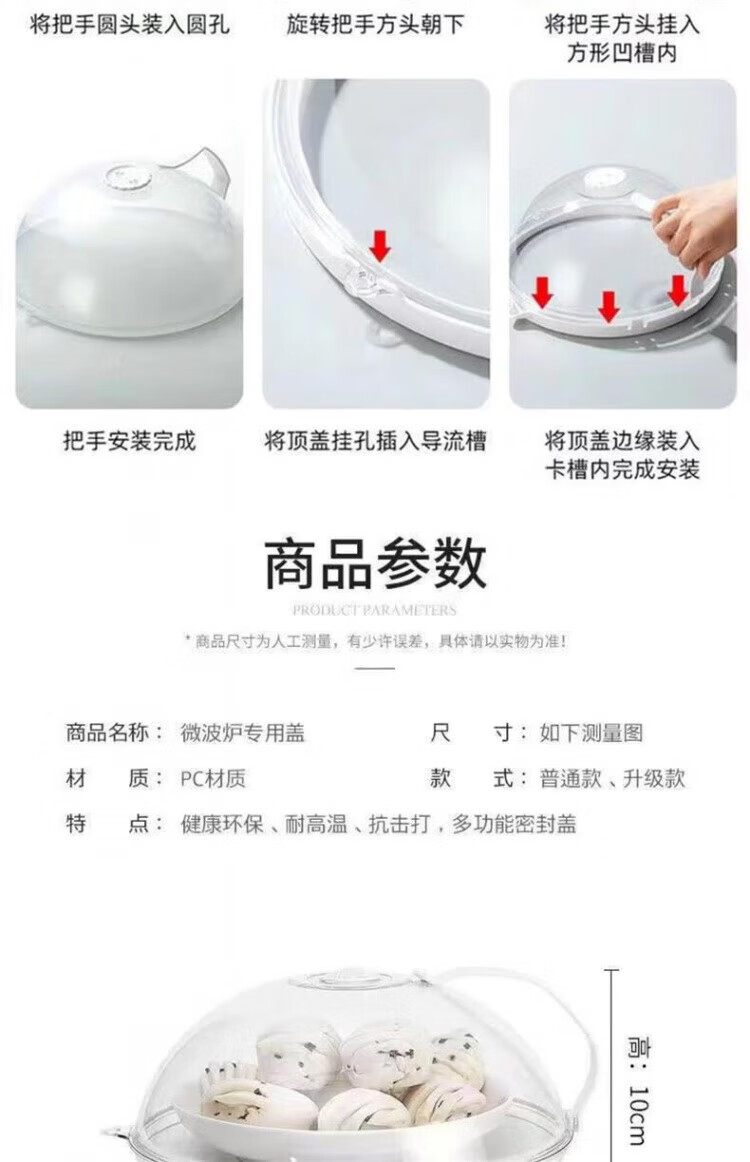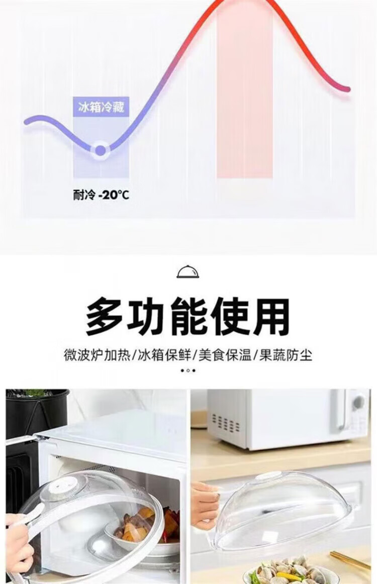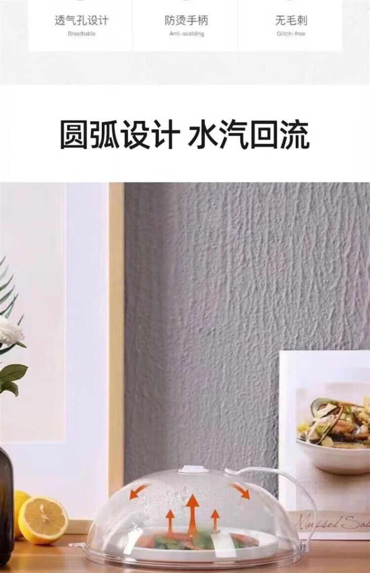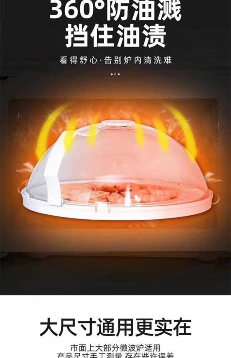 MIEHONE日本微波炉盖防溅耐高温防油罩热菜盖神器加热盖防飞溅厨房用品 升级加厚中号版【23*9.5】