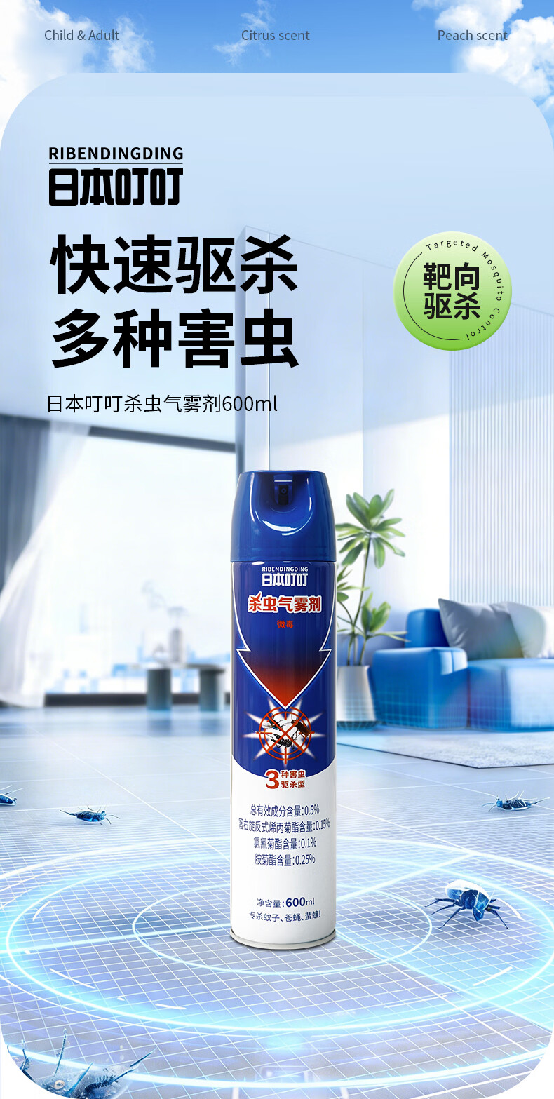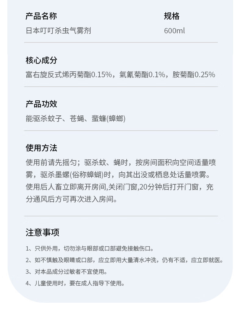 日本叮叮杀虫剂喷雾600ml*3 基孔肯雅热防蚊灭蚊喷雾灭蟑螂驱杀蚊虫气雾剂