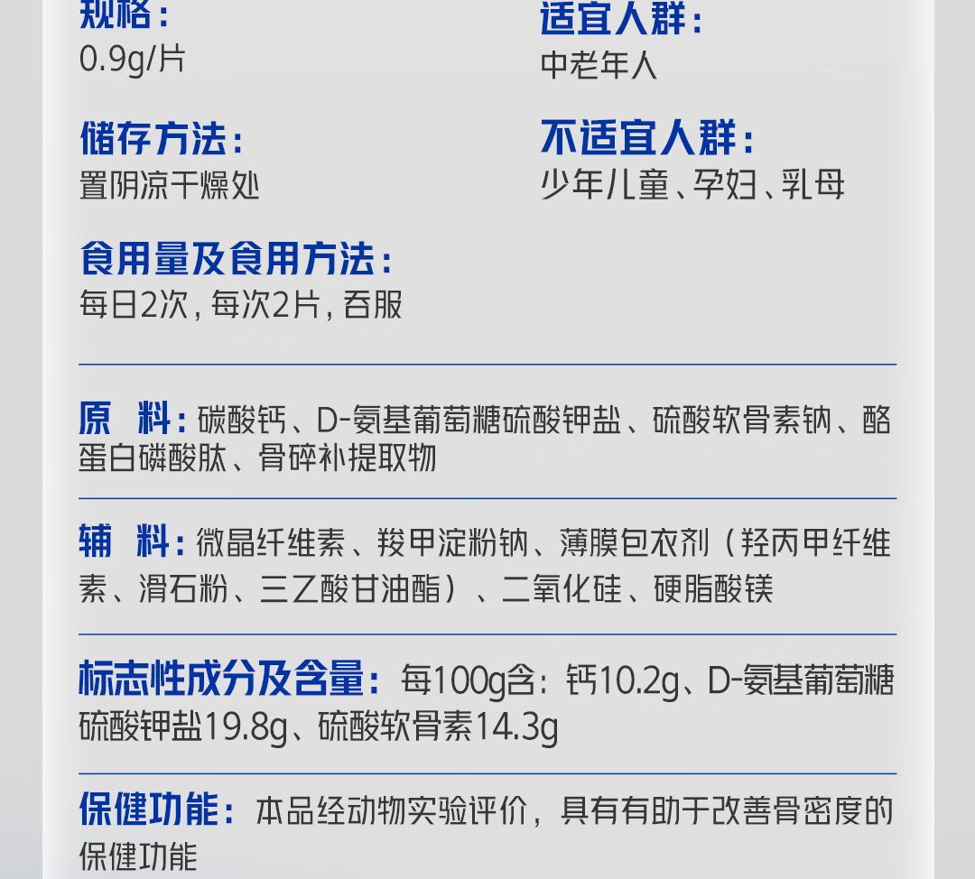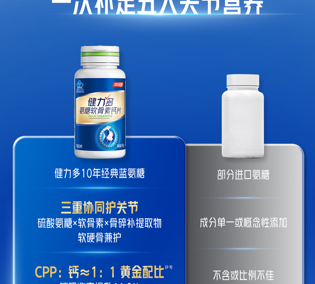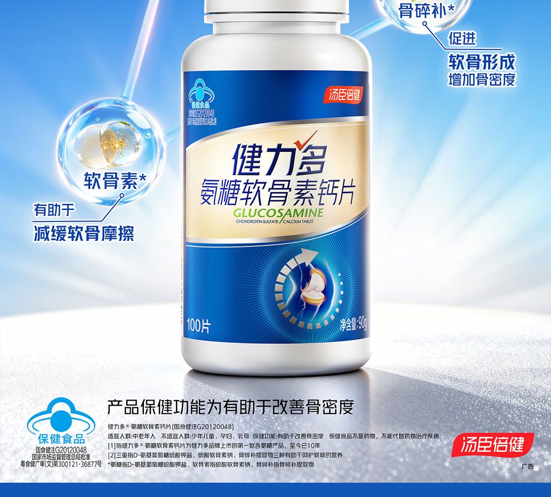 汤臣倍健(BYHEALTH)健力多氨糖软骨素钙片100片 中老年成人补钙 基础款