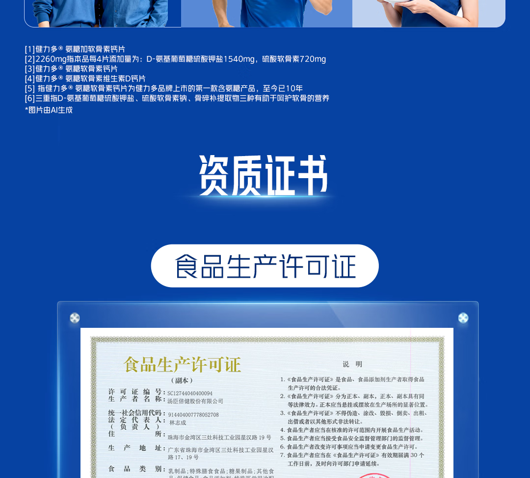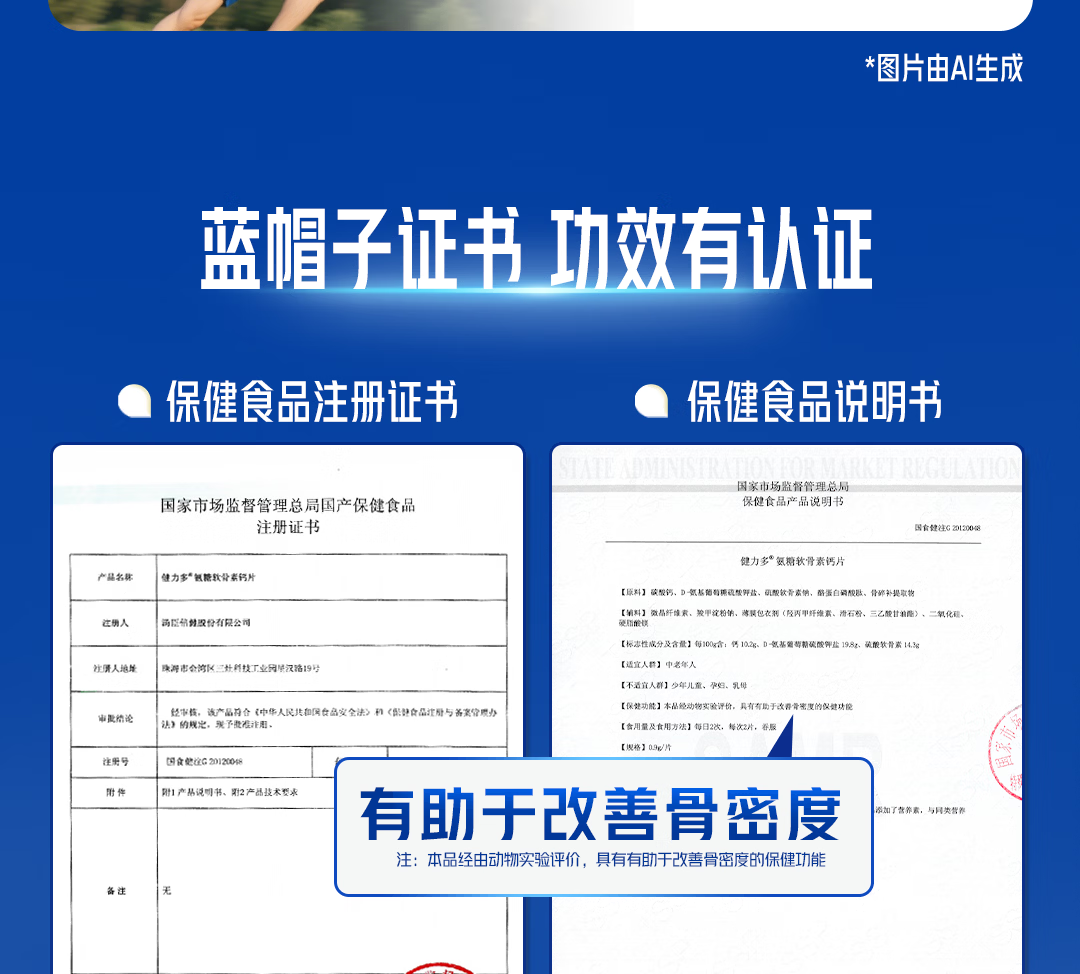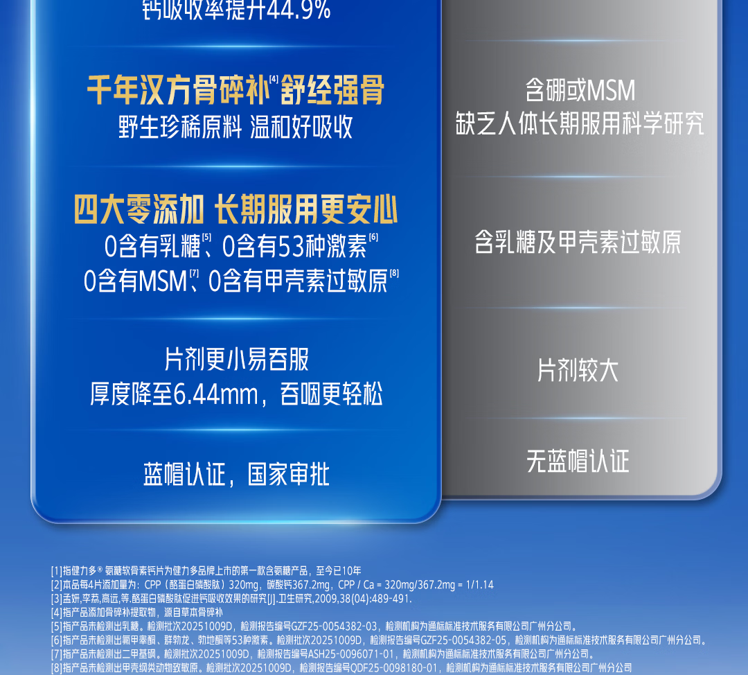 汤臣倍健(BYHEALTH)健力多氨糖软骨素钙片100片 中老年成人补钙 基础款