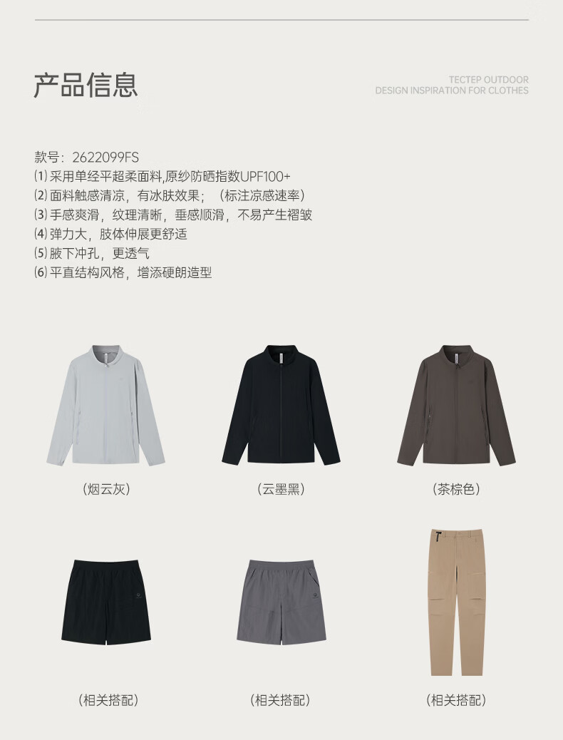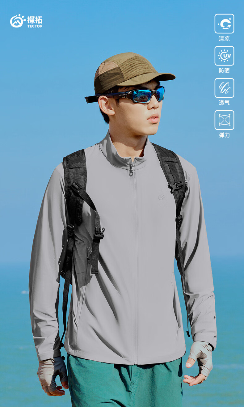 探拓(TECTOP)26新款防晒衣男夏季透气防紫外线立领外套 烟云灰 S
