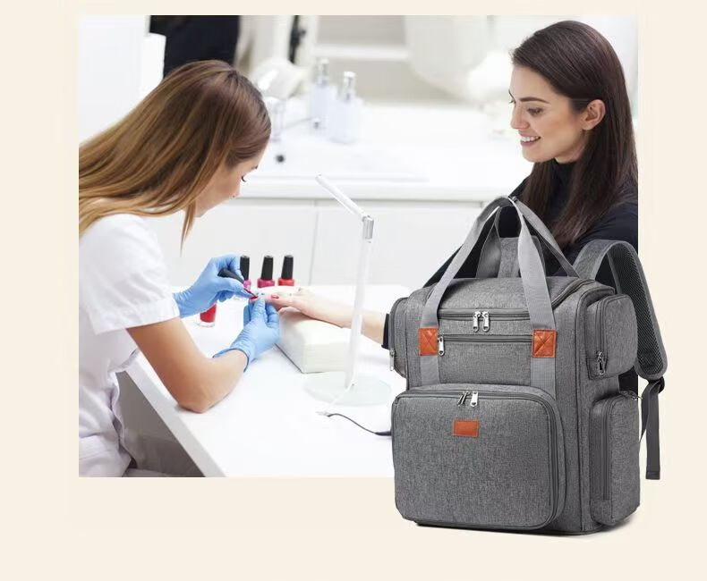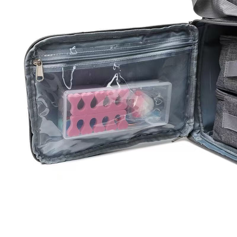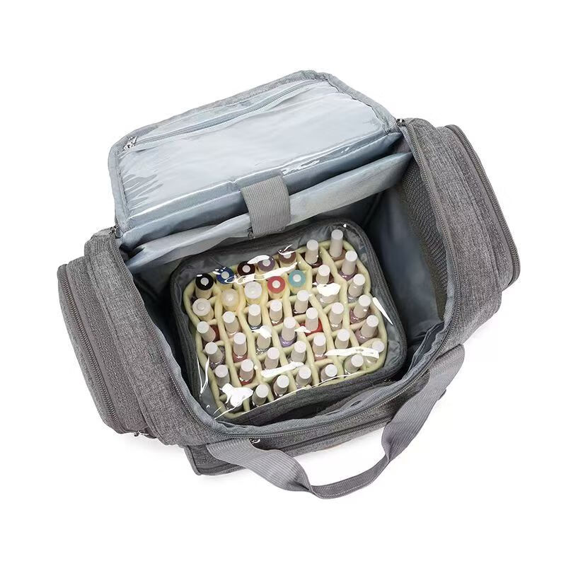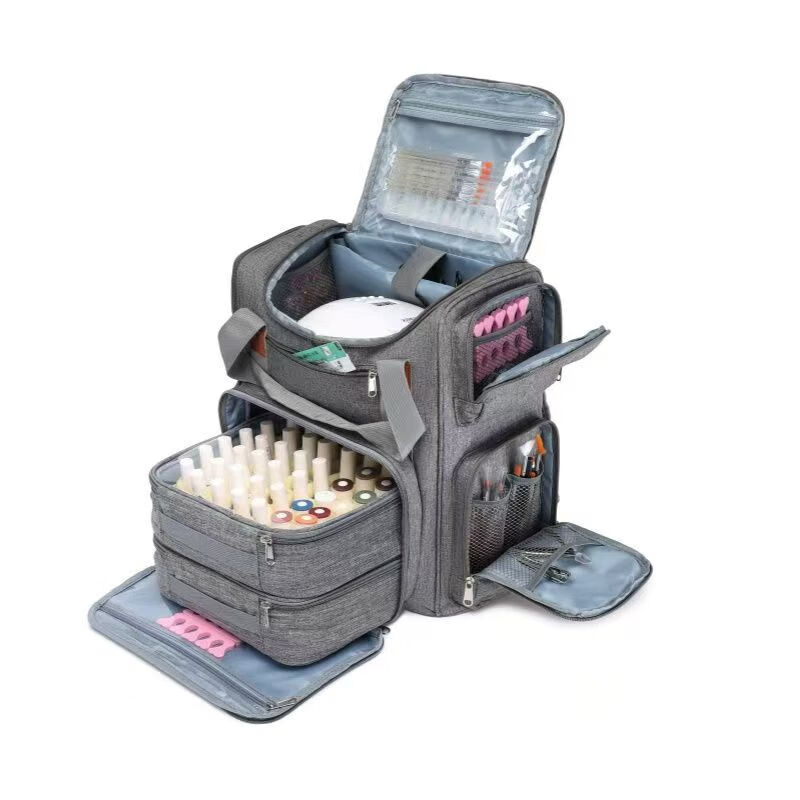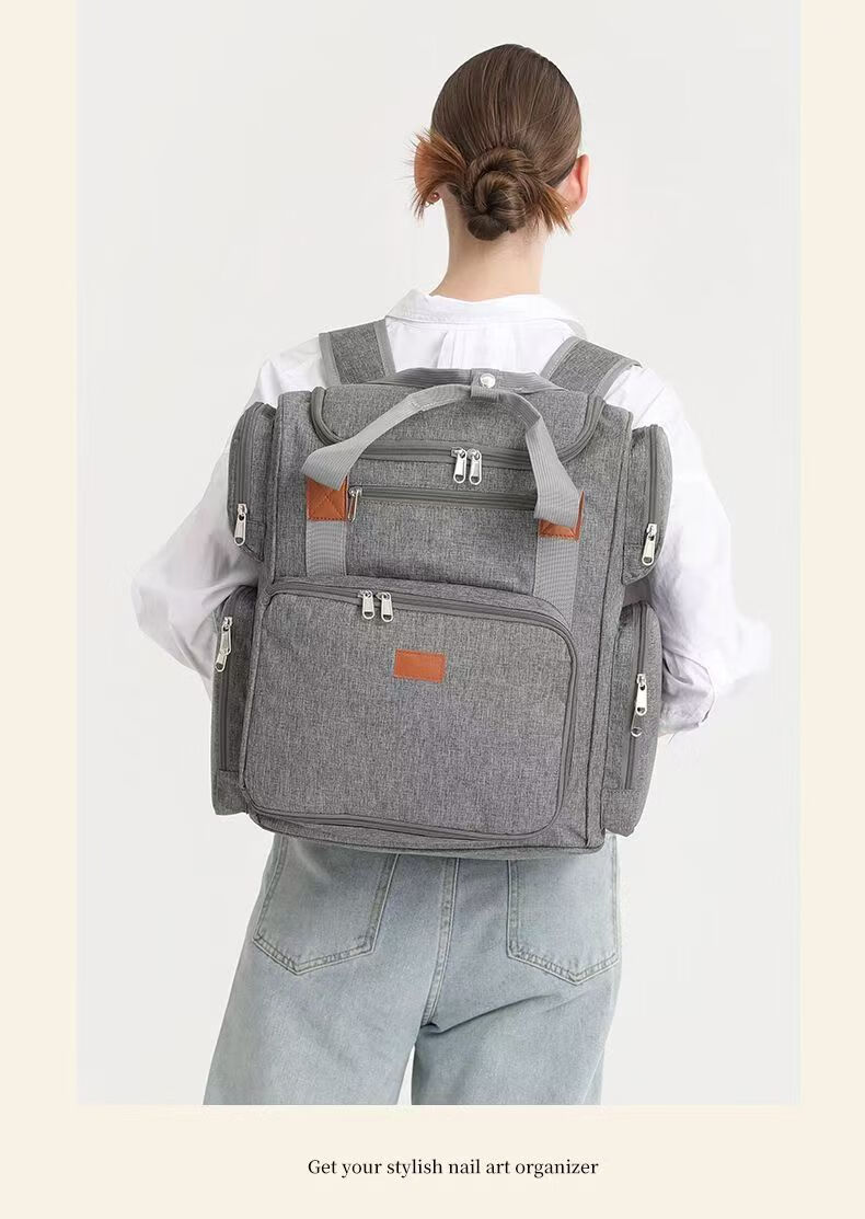 CHUMYUM新款84瓶大容量精油双肩化妆包上门美甲多功能便携指甲油手收纳包 灰色款