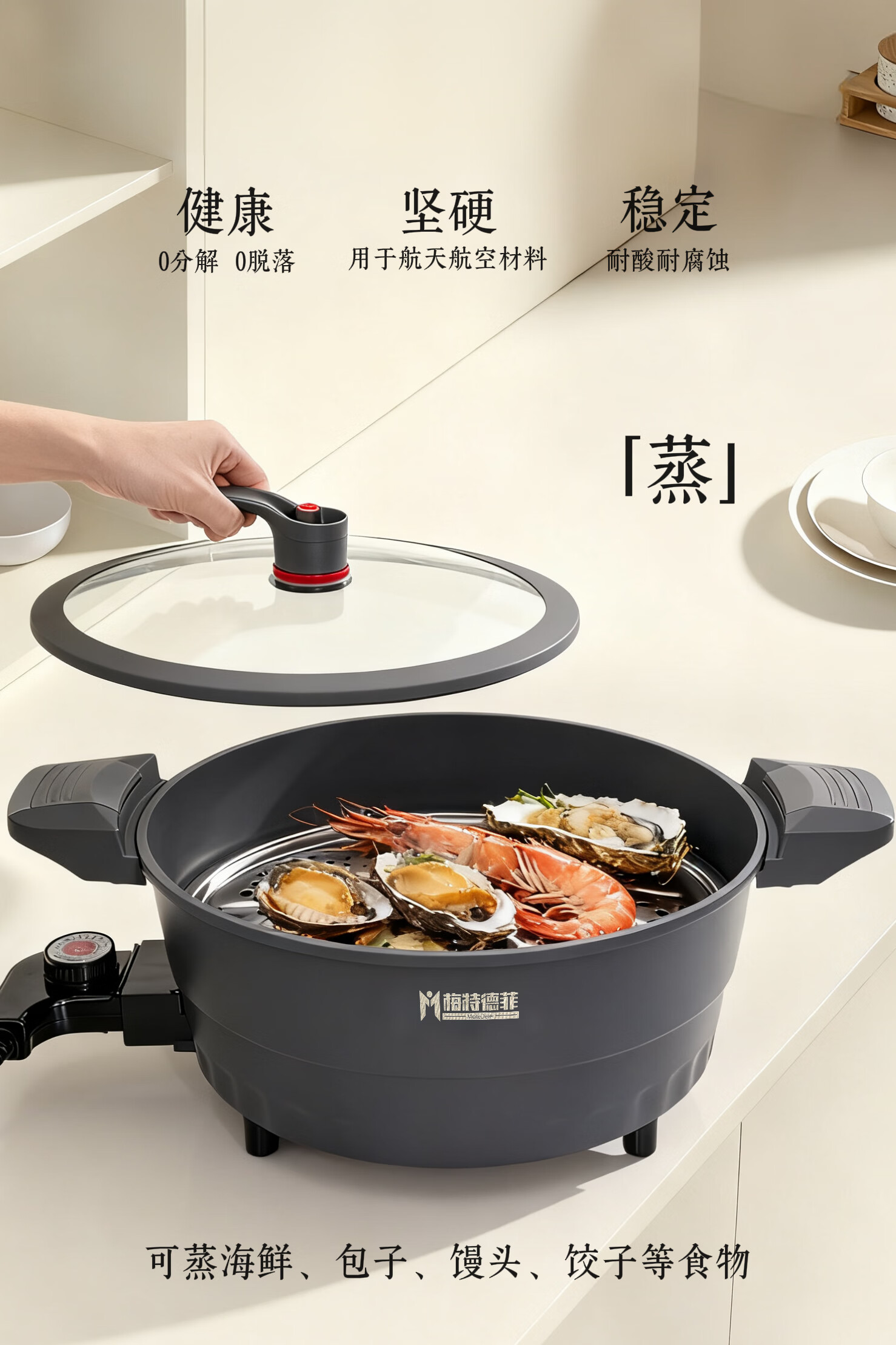 梅特德菲电子微压锅加厚不粘锅电火锅电煮锅家用电炒锅蒸锅多功能不粘锅(新疆西藏不发刀) 6L 口径30
