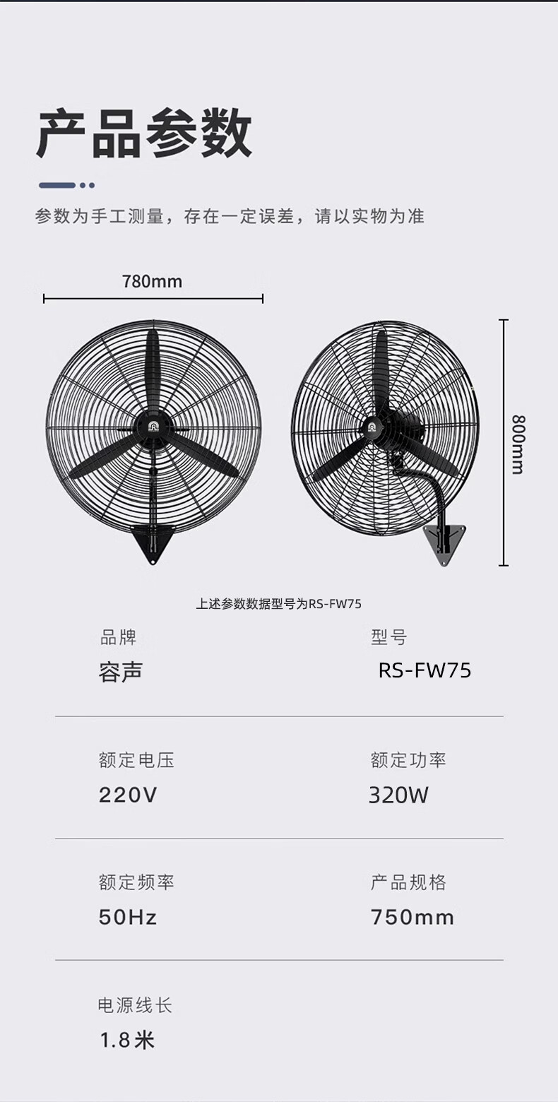 容声工业风扇钻大风力石电风扇牛角扇大功率风扇工厂车间商用立式落地大风扇工业壁扇吹除甲醛 750壁扇【30寸铝叶/铜芯电机//三档强风】