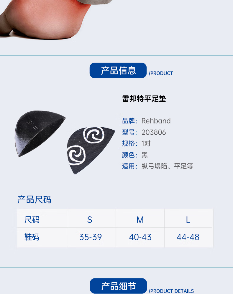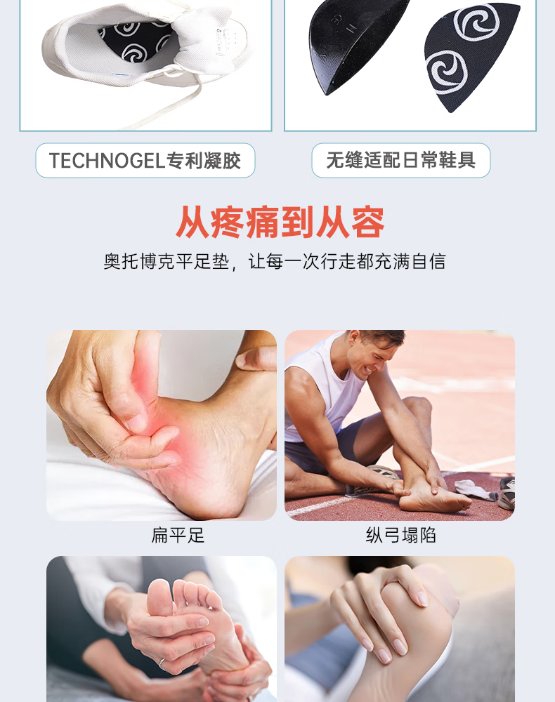 奥托博克 OTTO BOCK德国品牌专利凝胶改善扁平足缓解纵弓塌陷矫正器耐用平足垫支具 L(44-48)