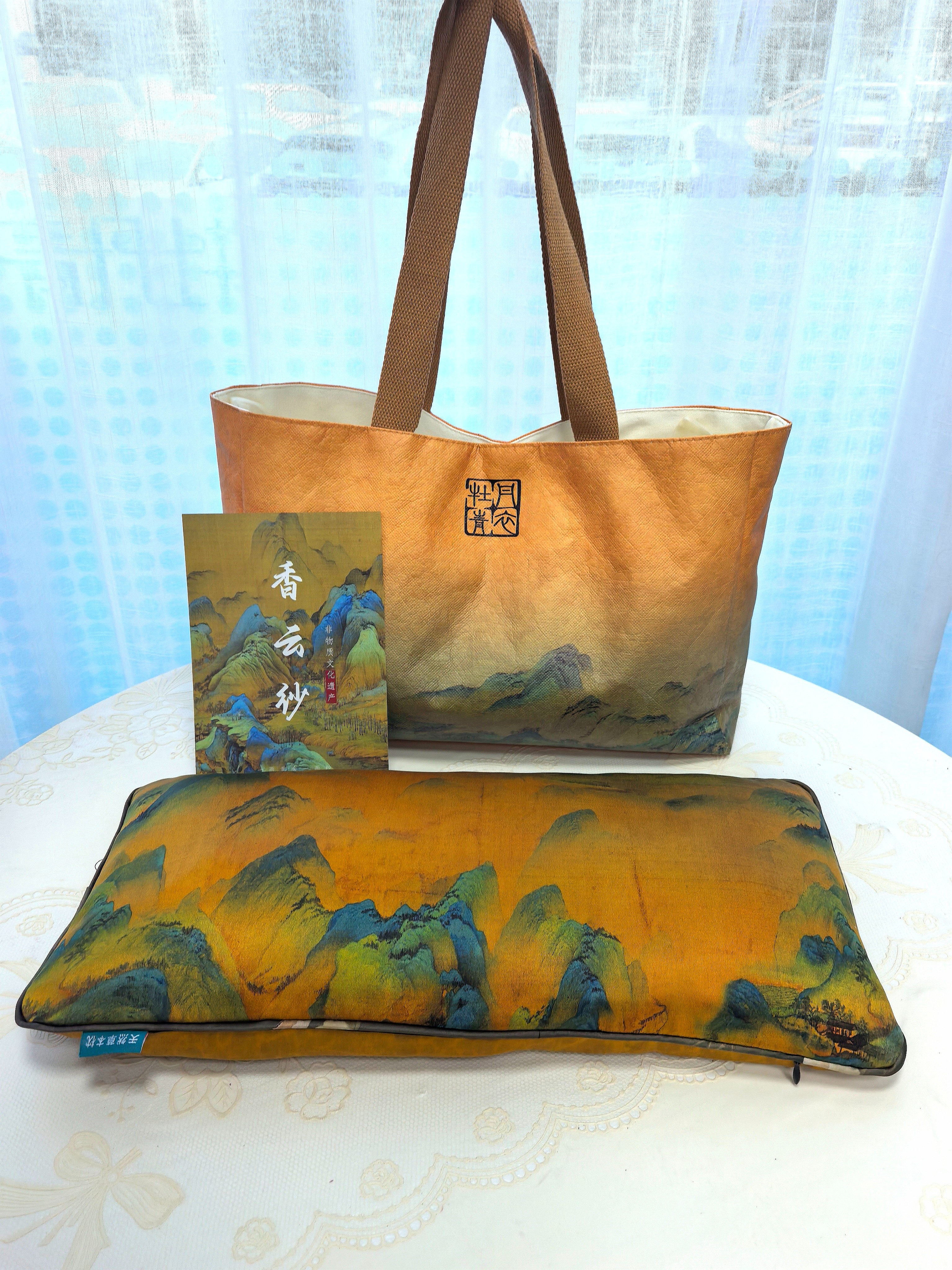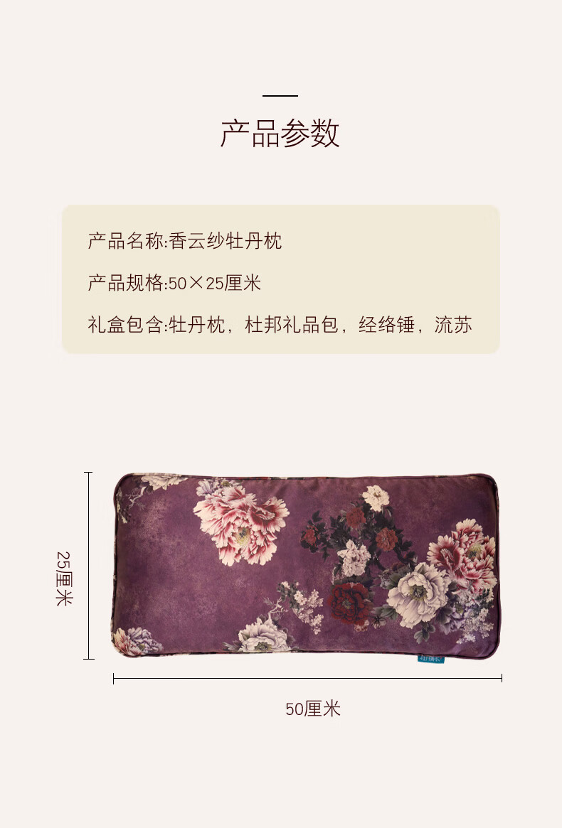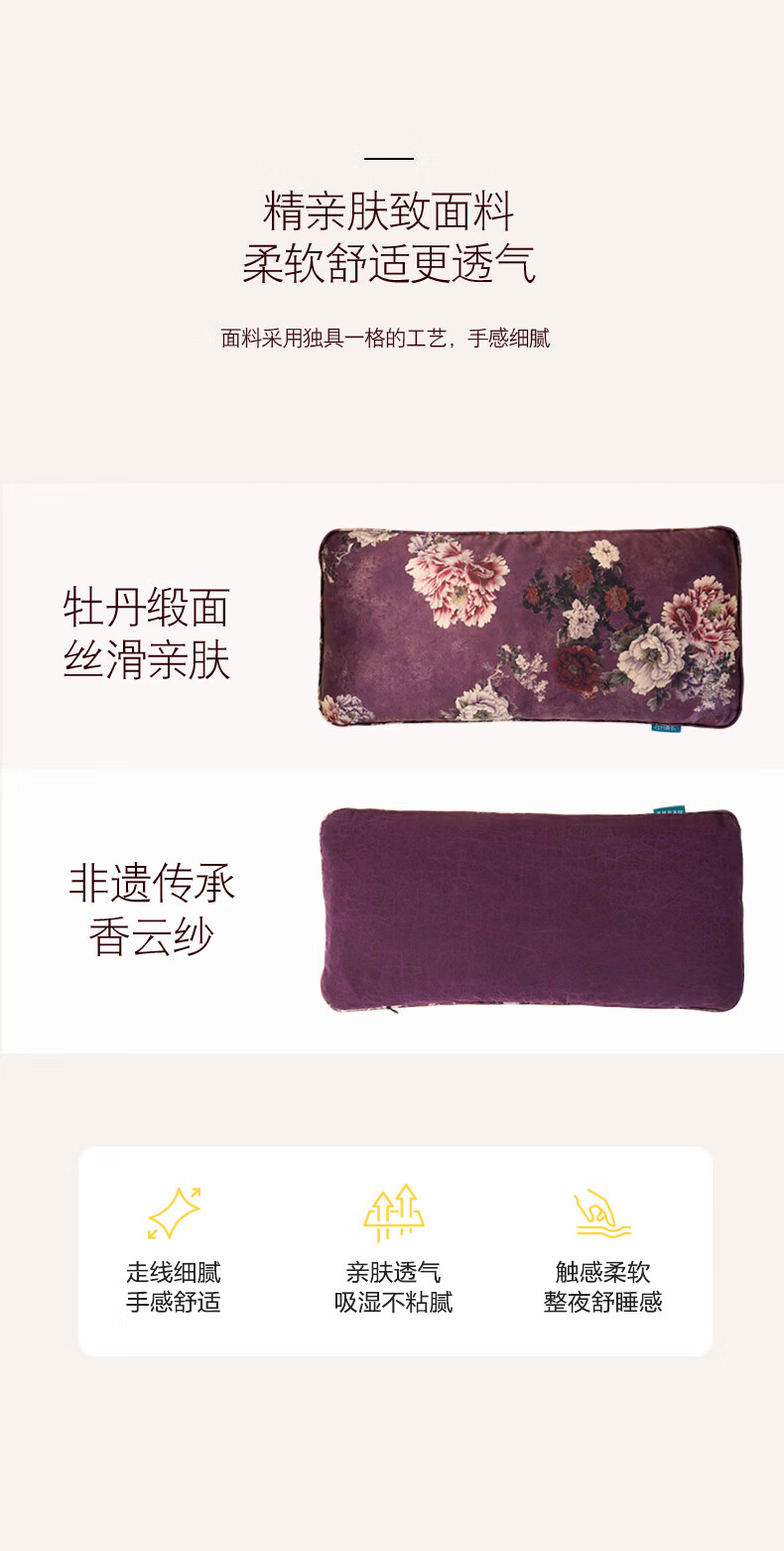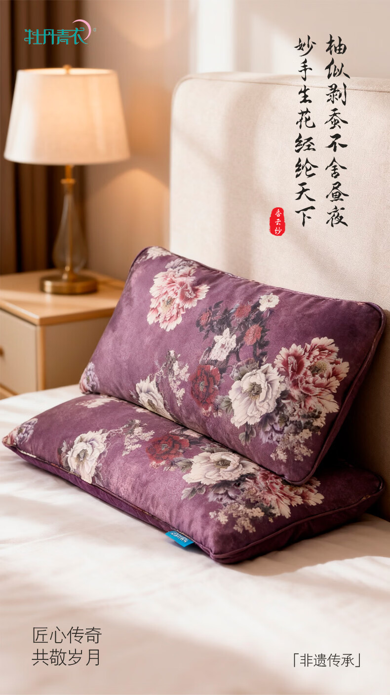 牡丹青衣助眠枕非遗香云纱安睡枕洛阳牡丹籽便携纯丝绸失眠枕头天然礼品 千里江山款香云纱安睡枕(赠礼品包) 单只 50cm*25cm