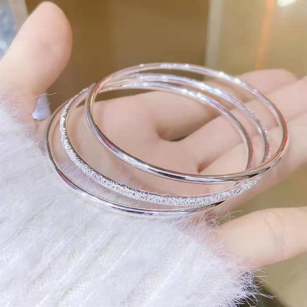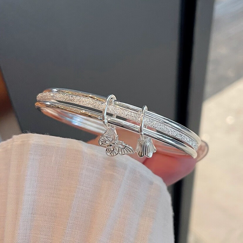 老银匠三生三世纯银手镯女s实心三圈手链送女朋友老婆情人节礼物 三生三世蝴蝶+风铃 30克 56mm 体